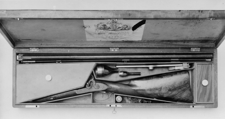 Etui till dubbelbössa nr 4140, Charles Lancaster, London, 1834 (?)