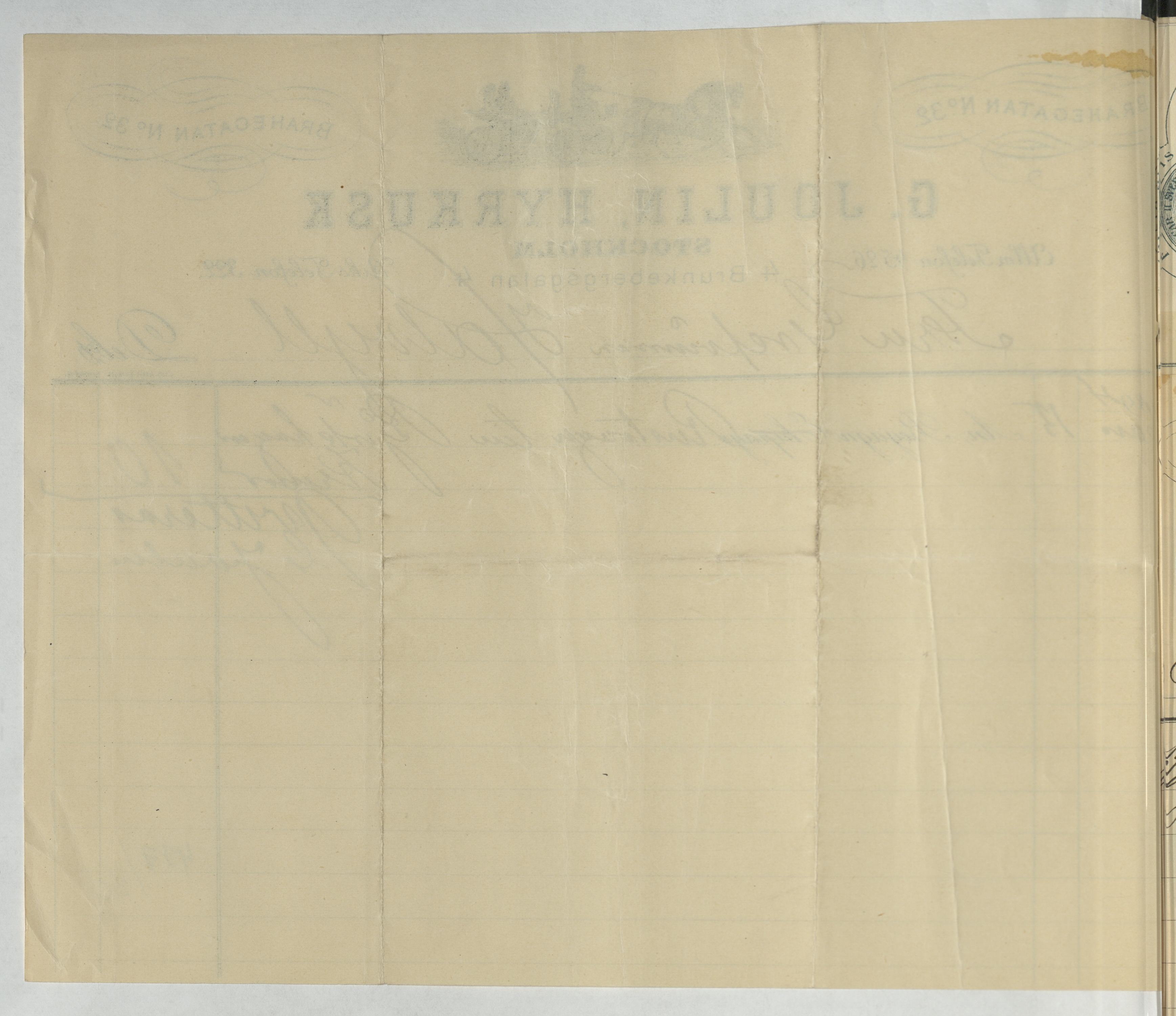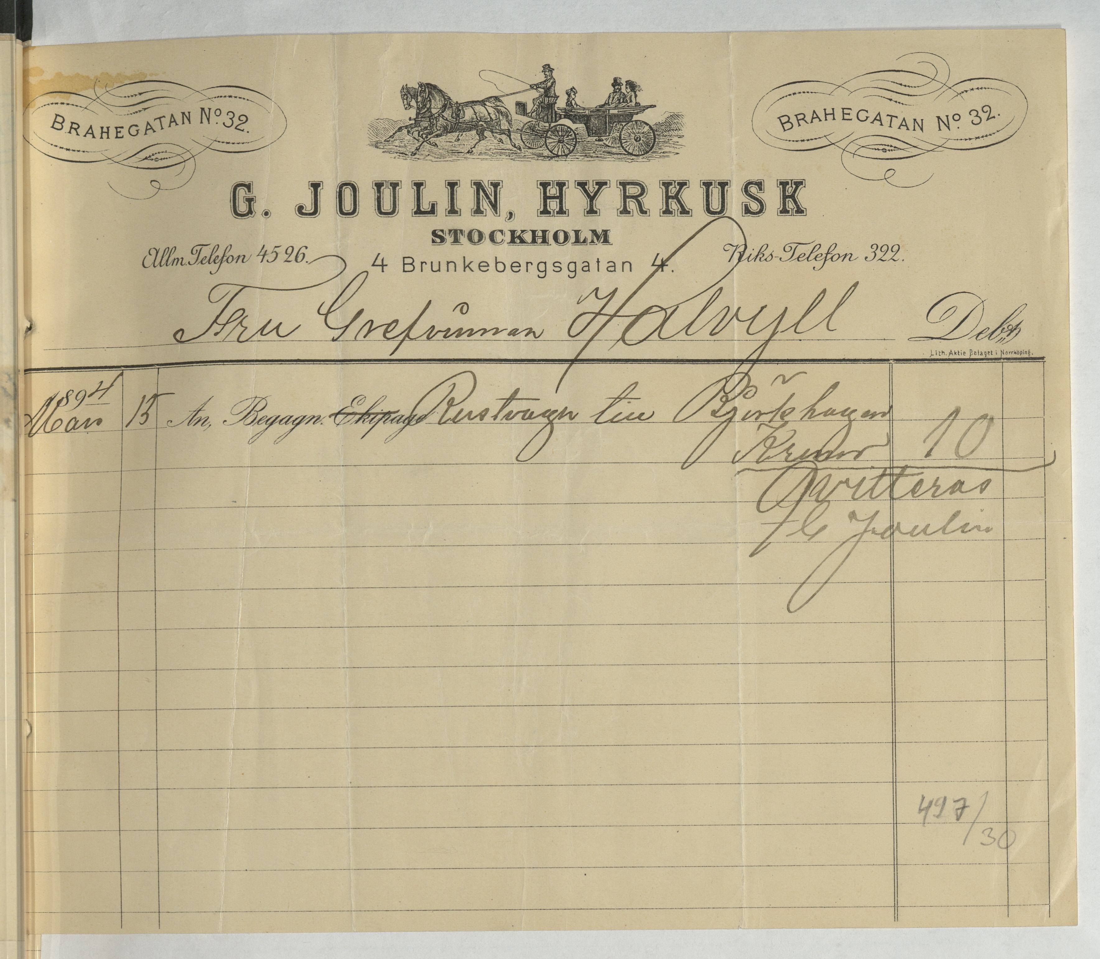 Kvitto från G. Joulin, Hyrkusk