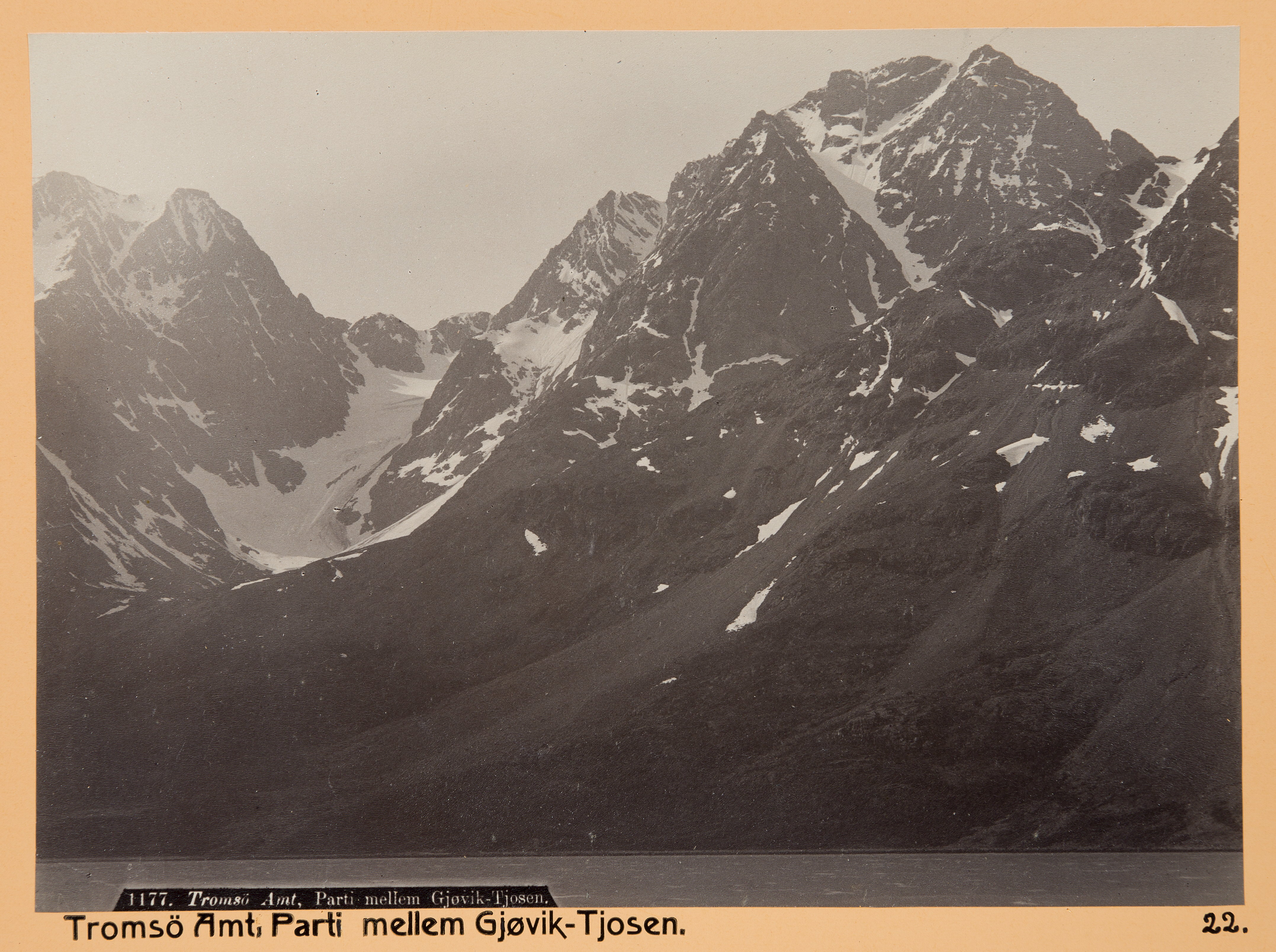 Plats mellan Gjövik och Tjosen i Tromsö amt. Fotografierna LXVI:C.01.-33. är inköpta av Wilhelmina von Hallwyl, f. Kempe, i Trondheim, Tromsö och Hammerfest under en resa till Norge tillsammans med maken Walther von Hallwyl, modern Johanna Kempe, döttrarna Ebba, Ellen och Irma, Walthers svägerska Ester von Hallwyl, f. von May, från Schweiz, med sina döttrar Hilda och Irma samt fröknarna Caroline Pflaum och Ida Uhse. Gruppen reste med ångbåten Capella från Trondheim till Nordkap och åter till Trondheim, 1-15 juli 1886. Uppgifterna kommer från Ida Uhses reseanteckningar.