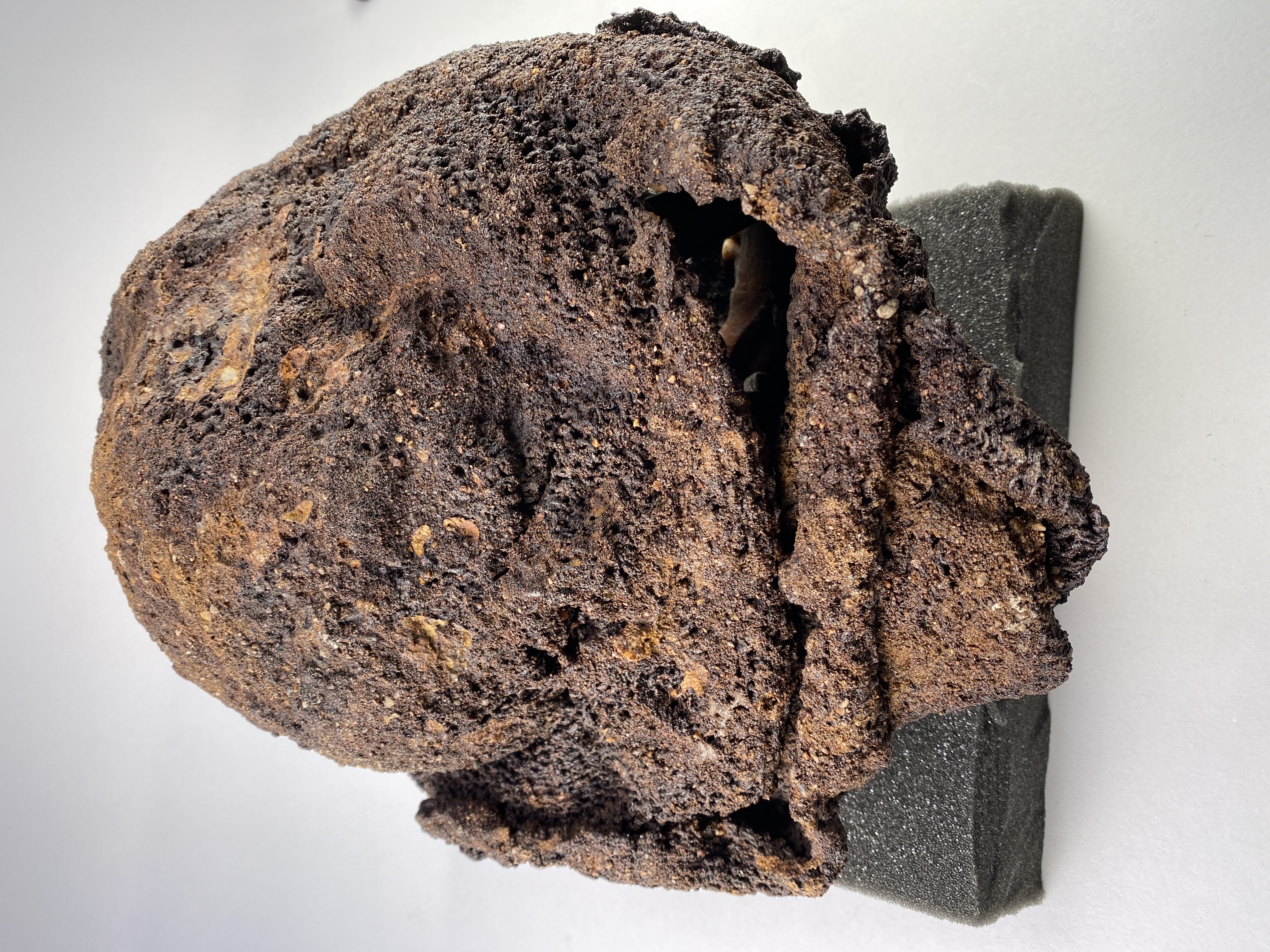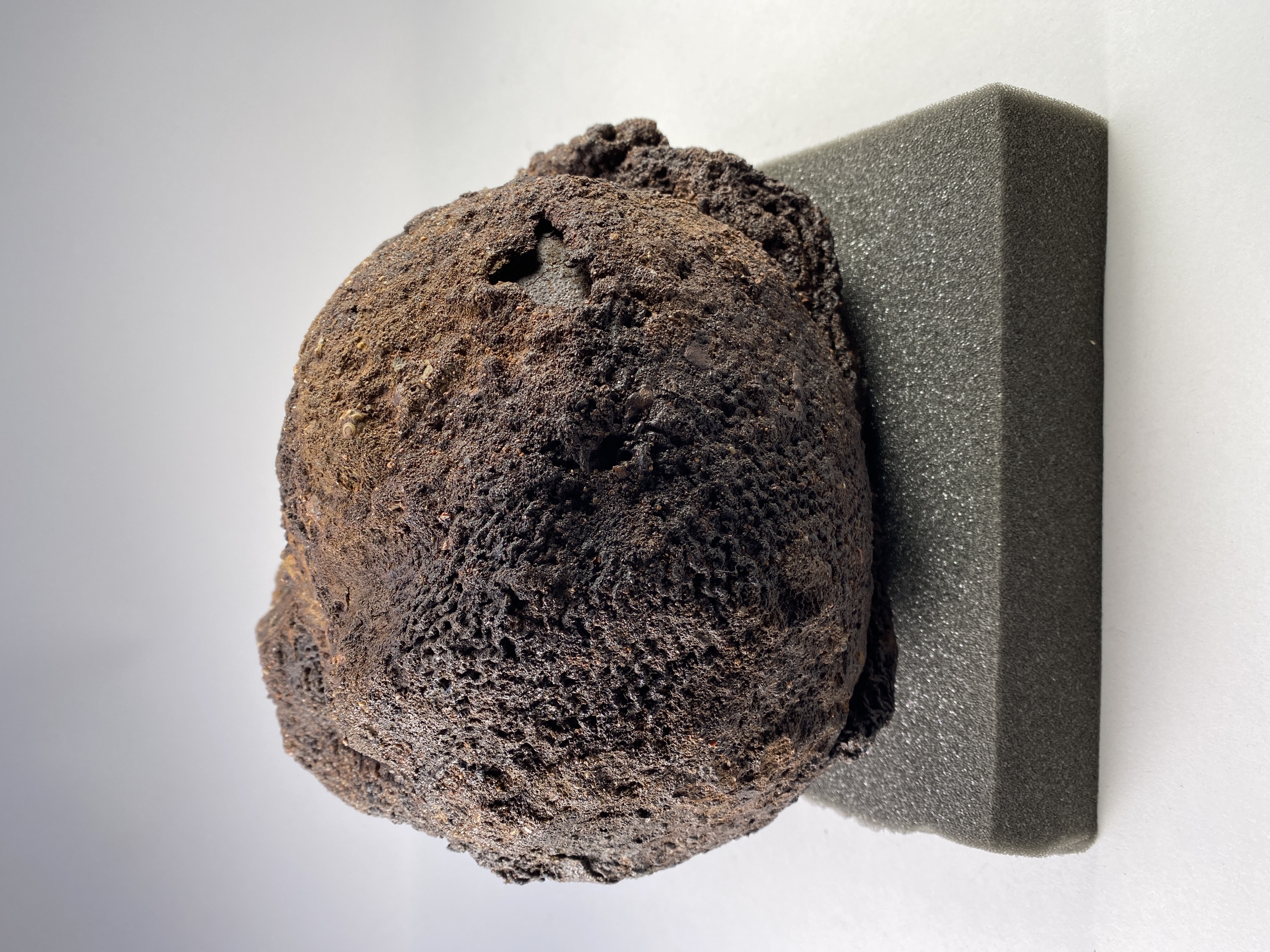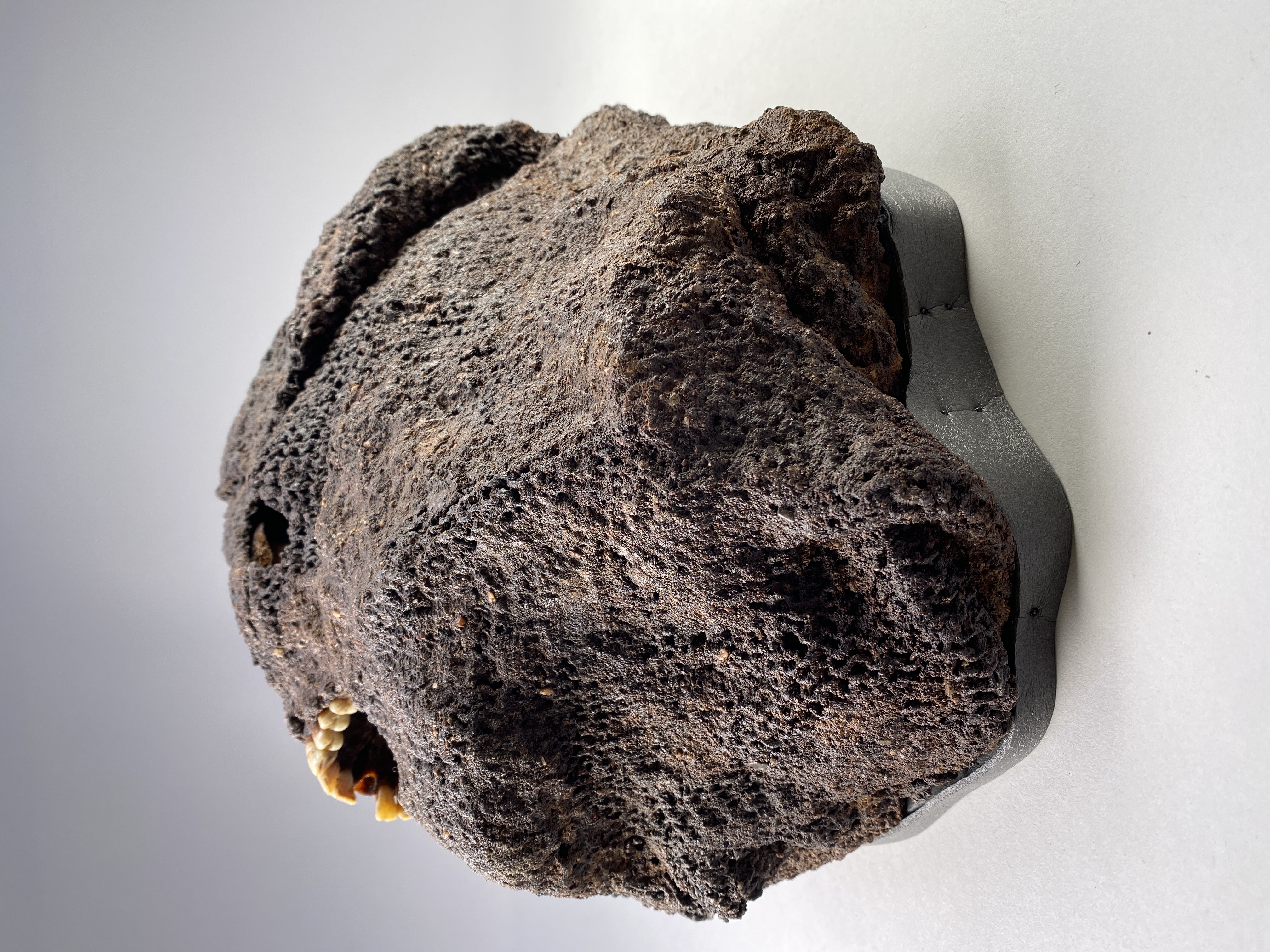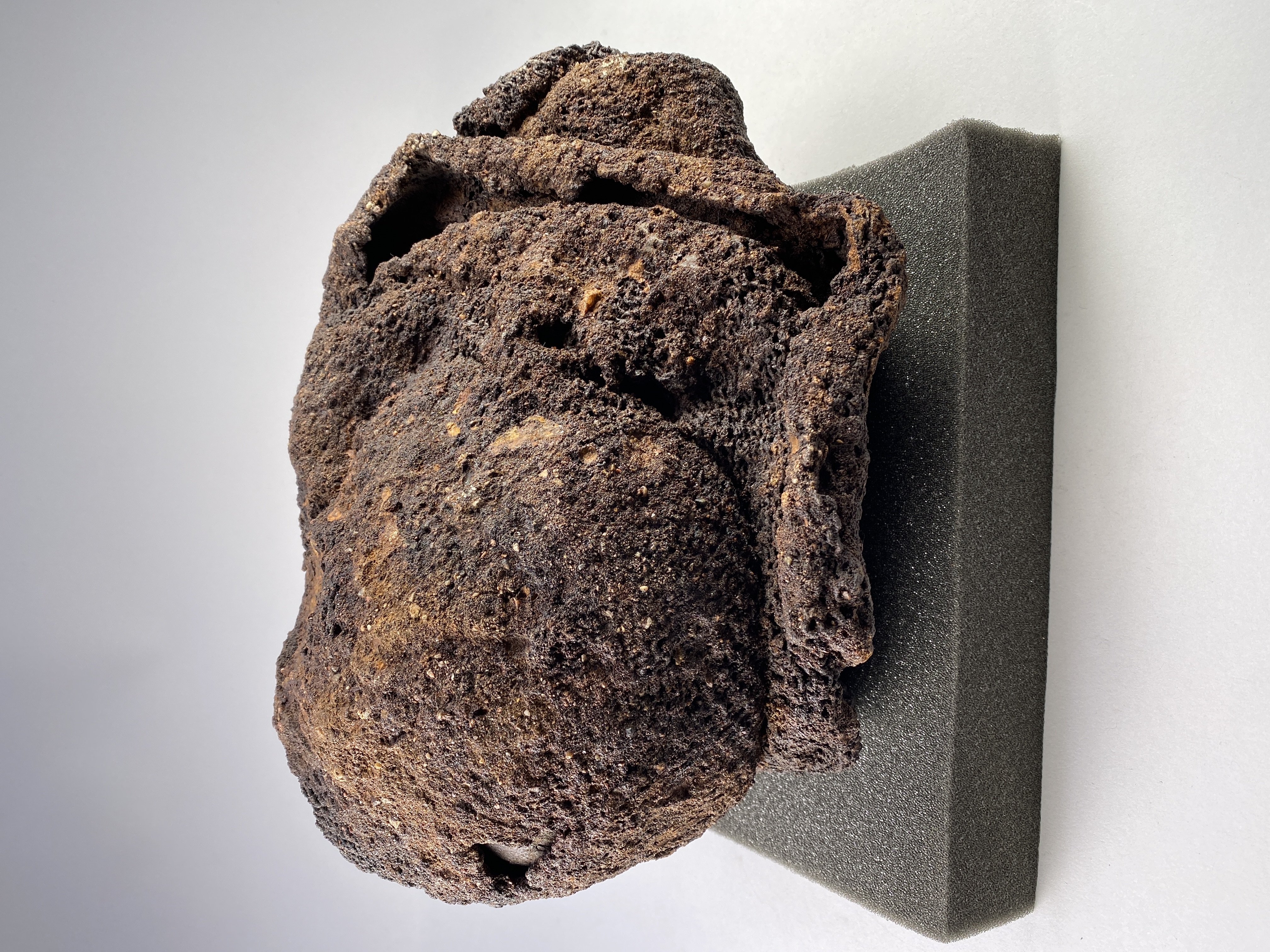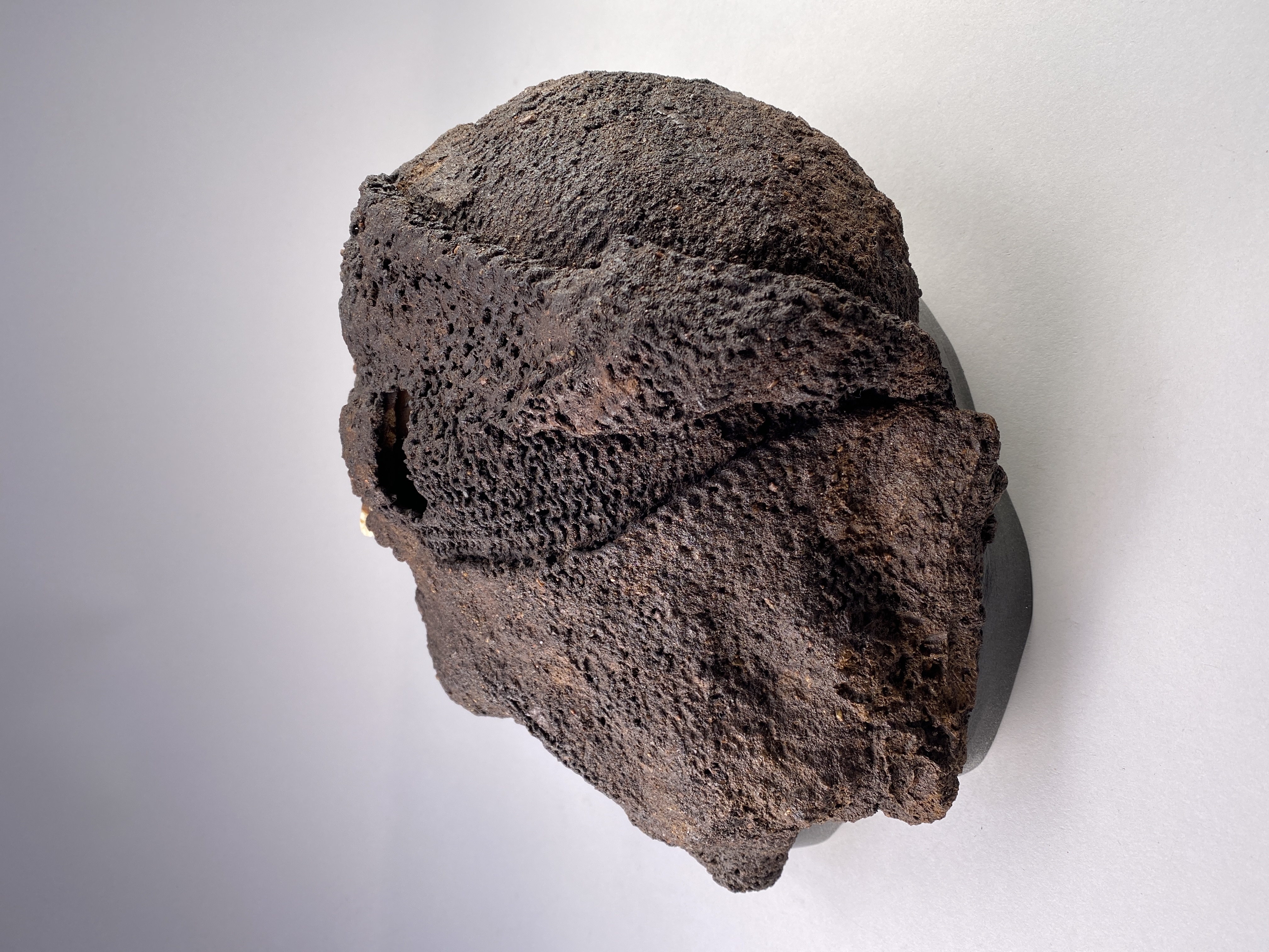 Huva som omsluter ett kranium. Strontiumanalyser tyder på att individen kommer från Danmark.