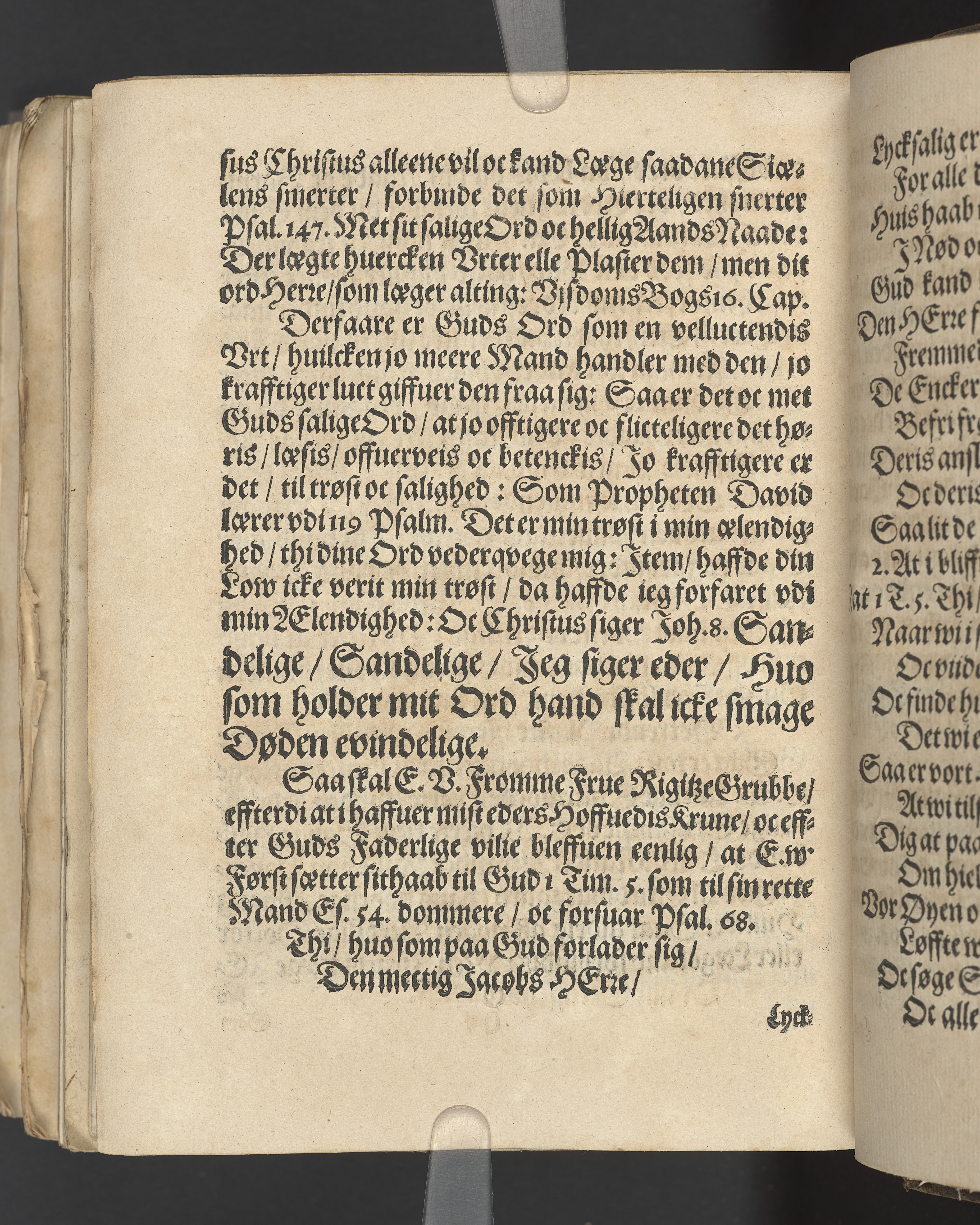 Ägaranteckning längst upp på titelsidan: "J[omfru] karen Lykke". Handskriven uppgift om födelse- och dödsdatum för den avlinda längst upp på titelsidan.