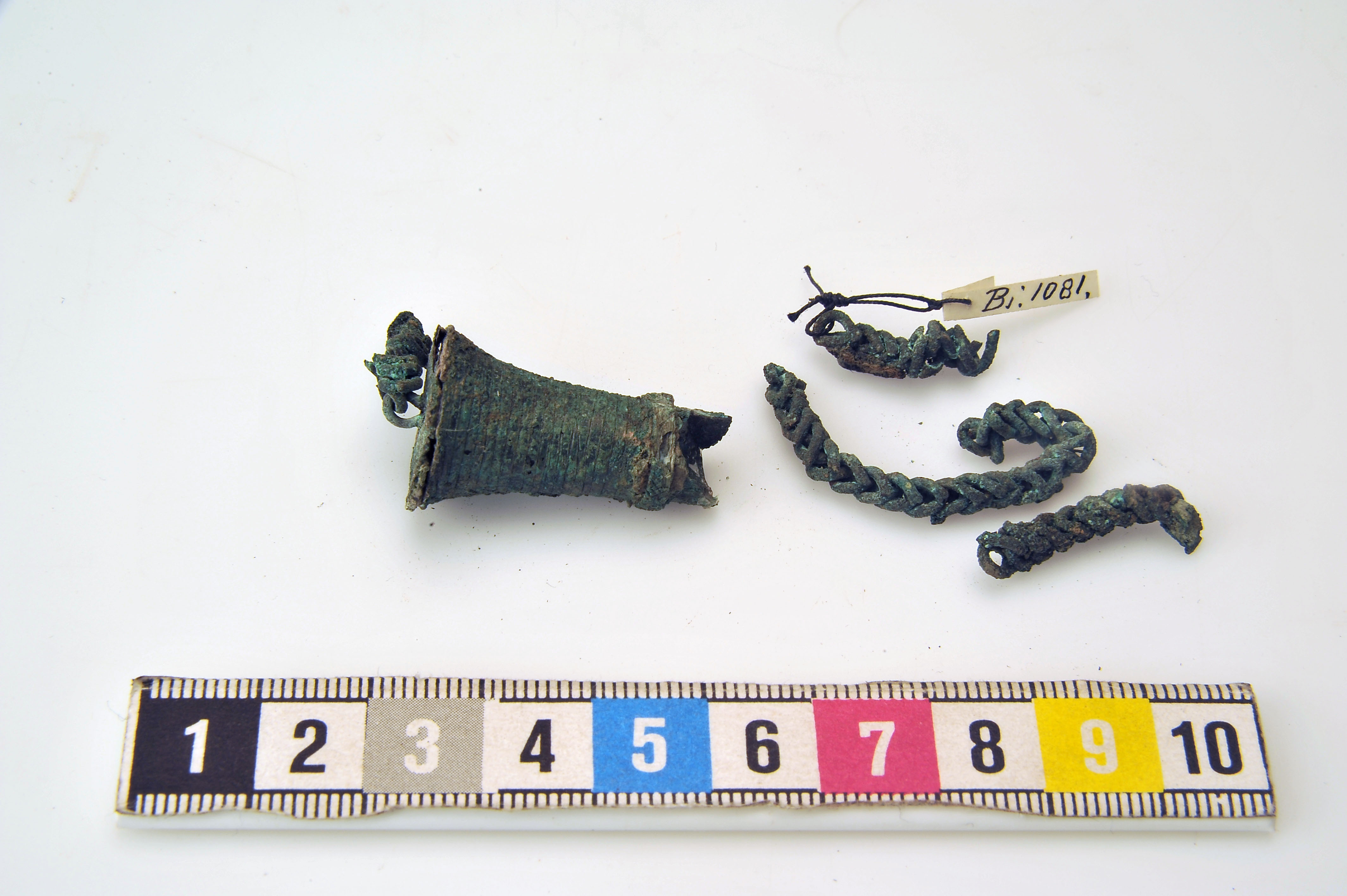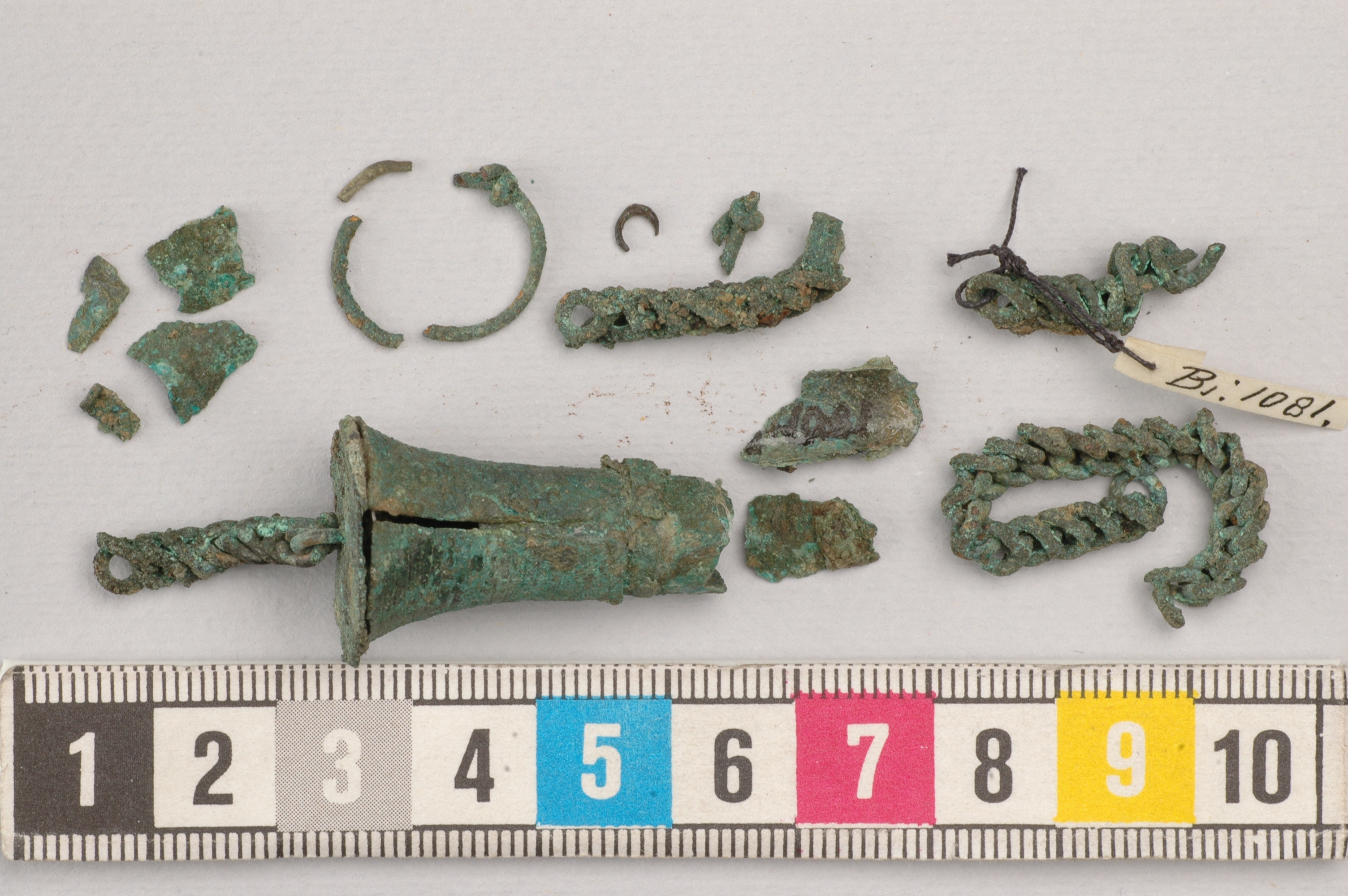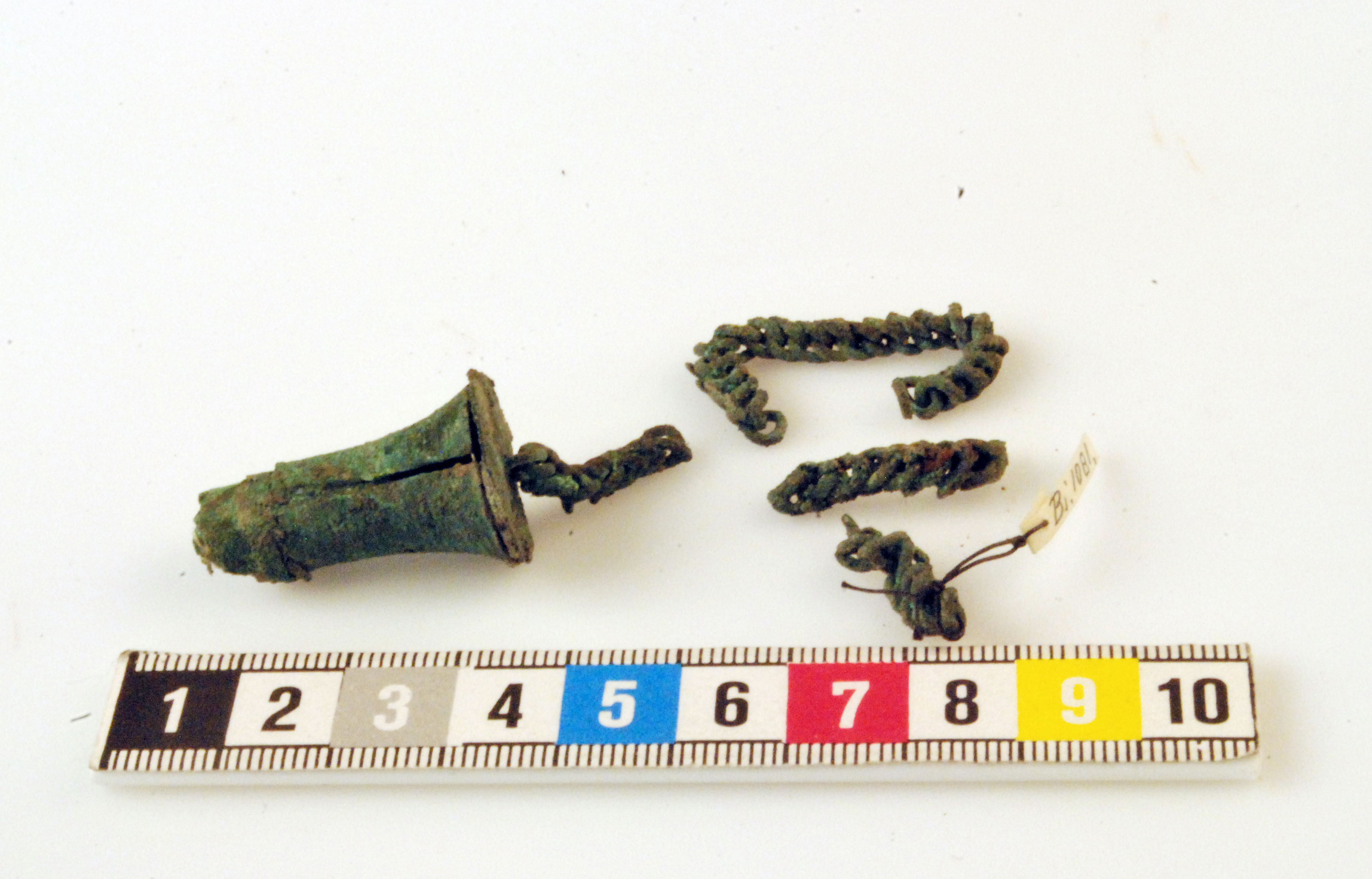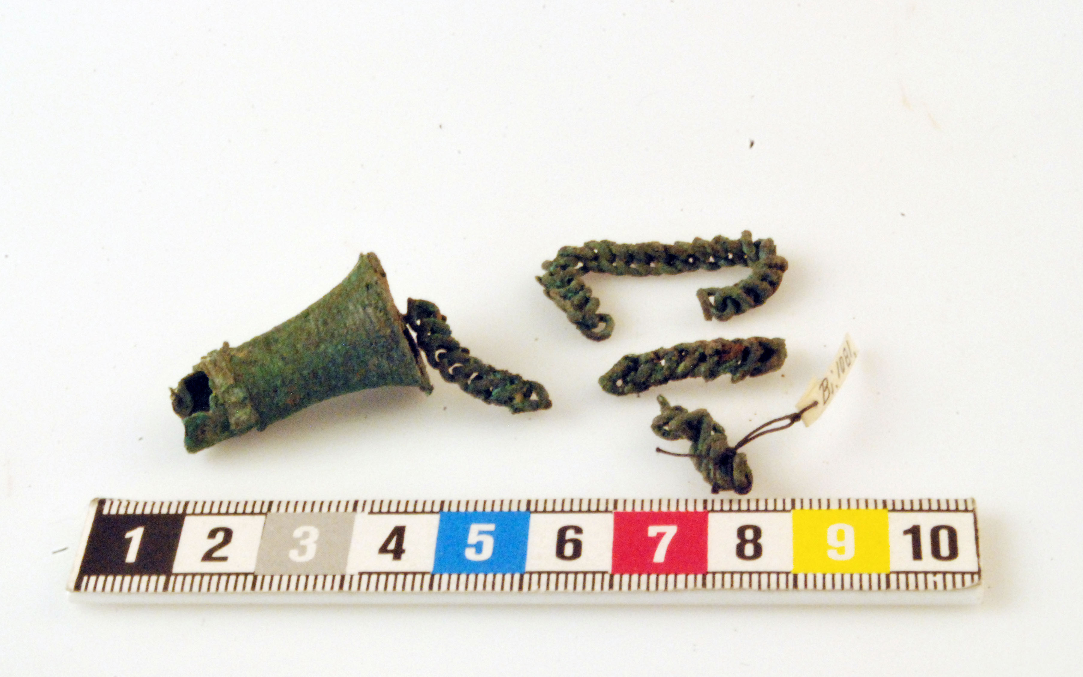 7 fragment från nålhus med kedja, 3 fragment av kedjan och 4 fragment av ringen.