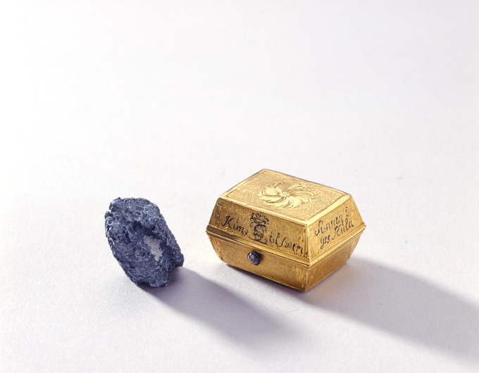 Dosa av guld med blykula, ca 1700.