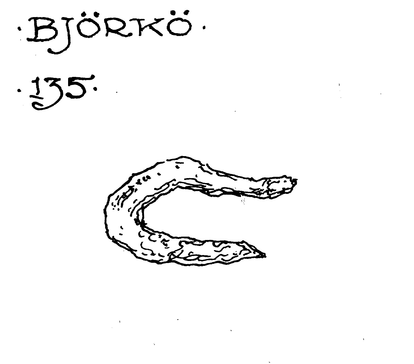 Böjd järnten med spetsade ändar och litet järmfragment.