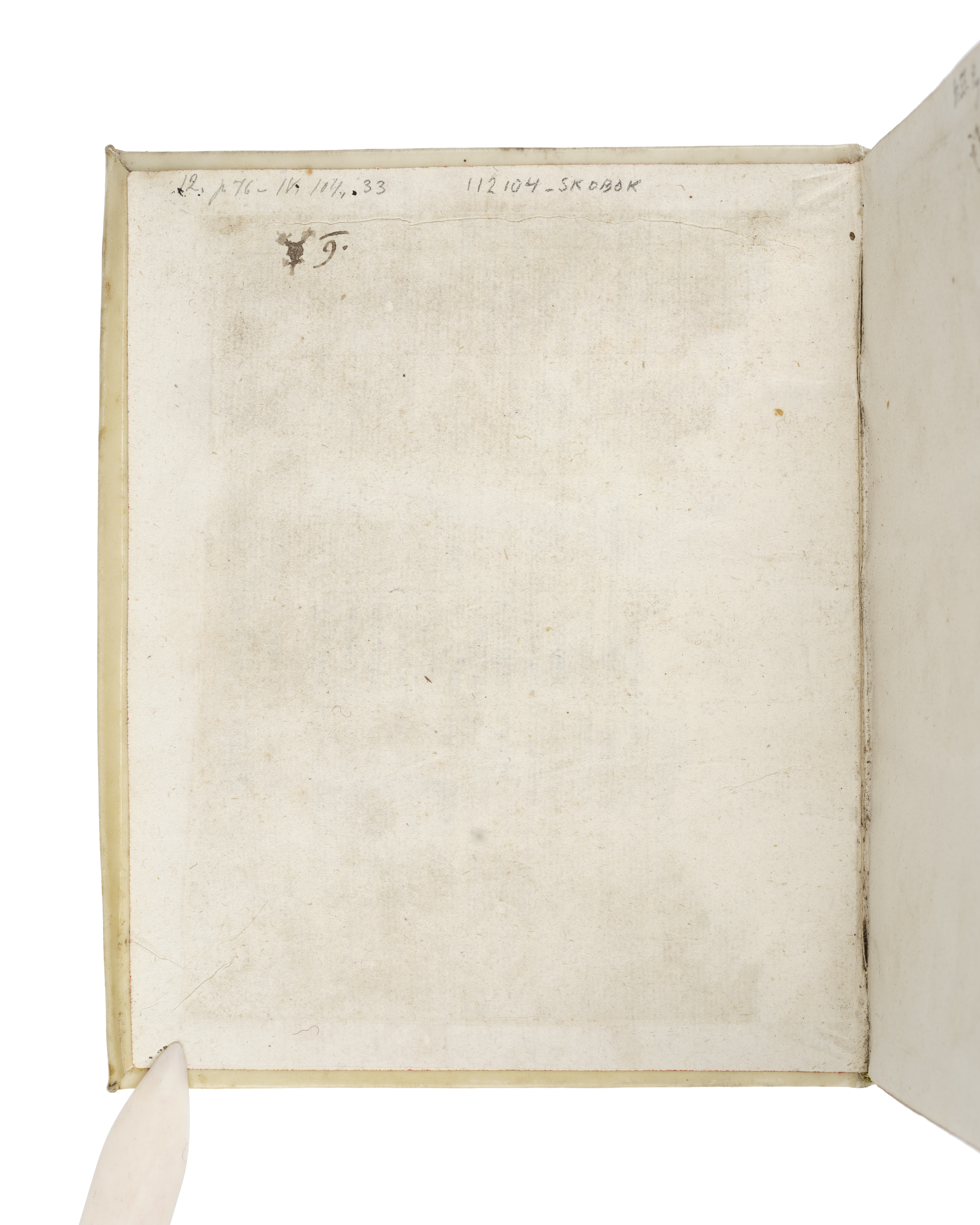Pergamentband med genomträdda bind, häftad på tre pergamentremsor. Snitt sprängda i rött.
