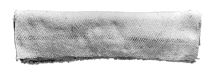 SKURDUKAR, två stycken Av fyrskaftad bomullsvävnad. Nästan kvadratiska. Varp av fina trådar, inslag av grövre; två motsatta kanter fållade, en med stadkant, den motsatta med inslagstrådarna utfransade; ett stycke innanför de båda sistnämnda kanterna en bård av fyra blå varptrådar. Sidlängd: omkring 54 cm.