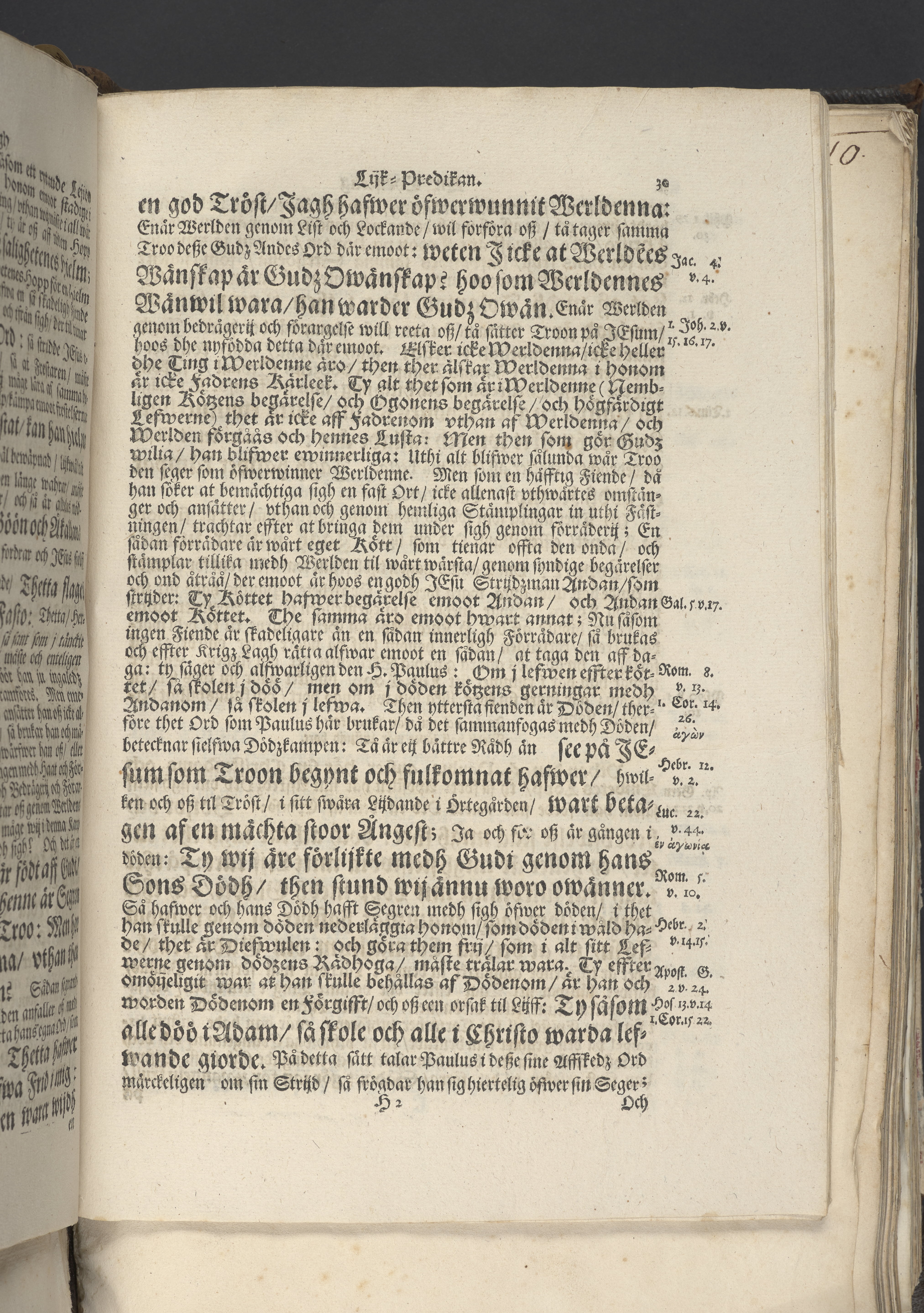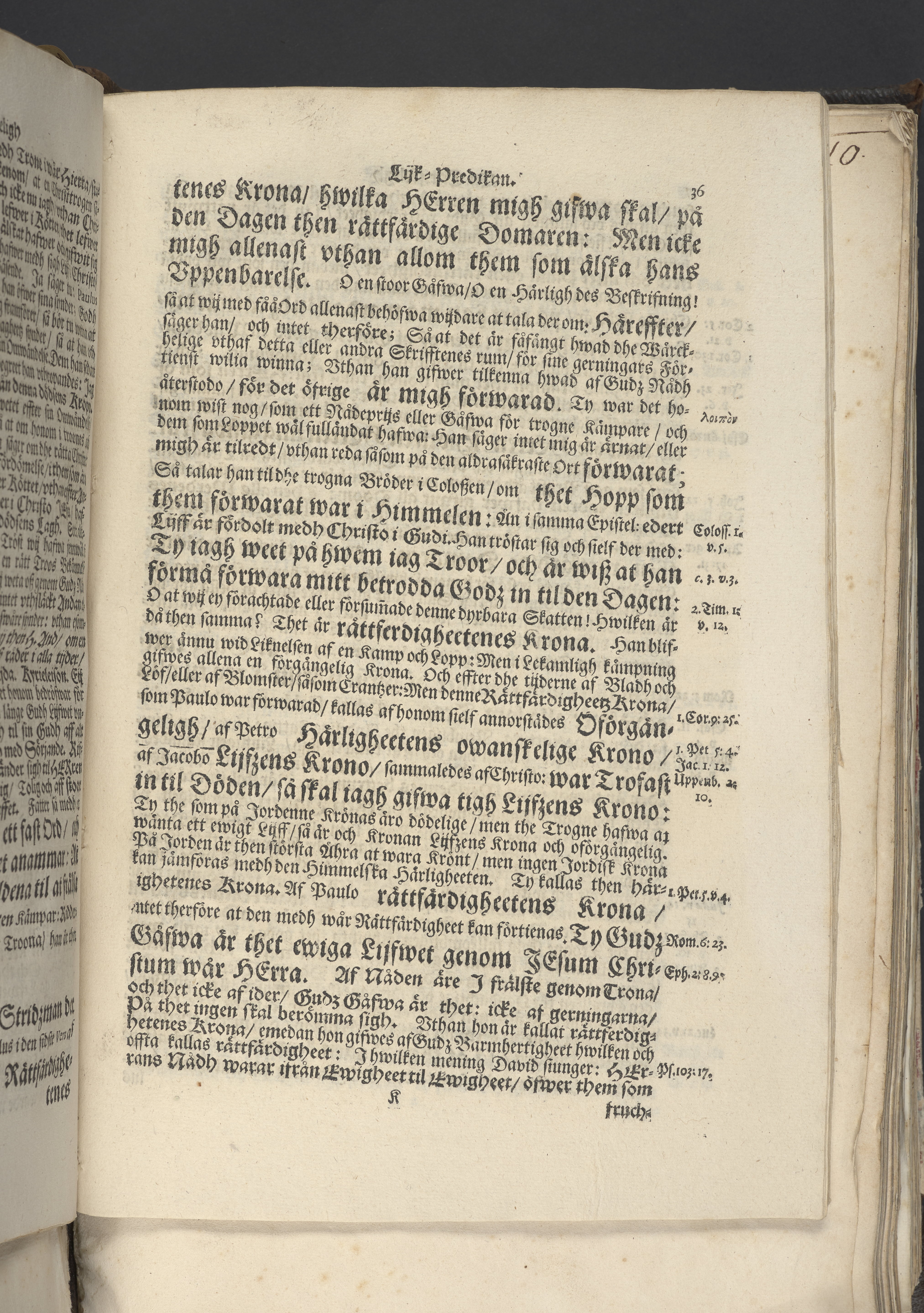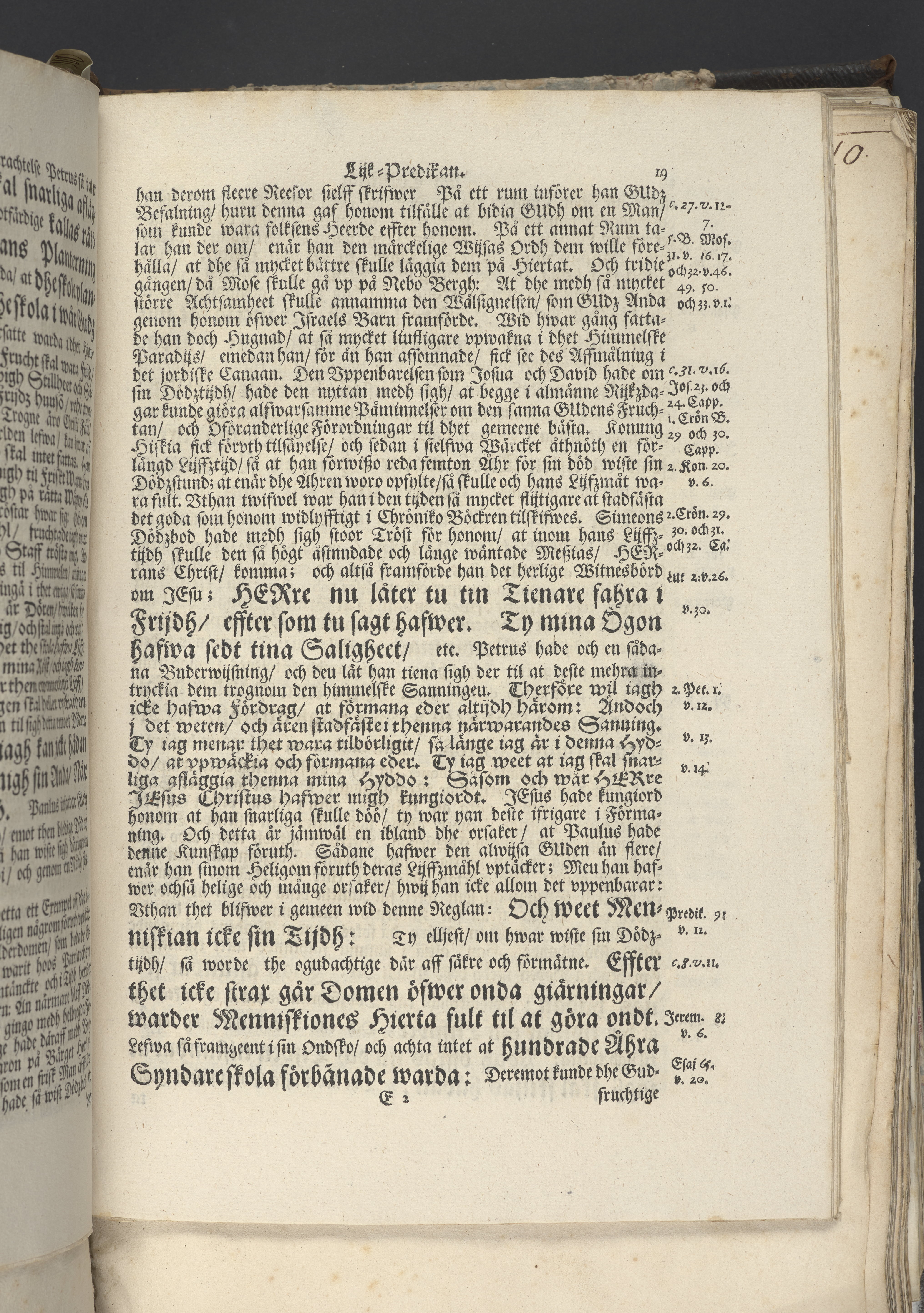 Band m. pärmar av marmorerat papper, rygg och hörn av pergament. Pärmfyllnad: trä.