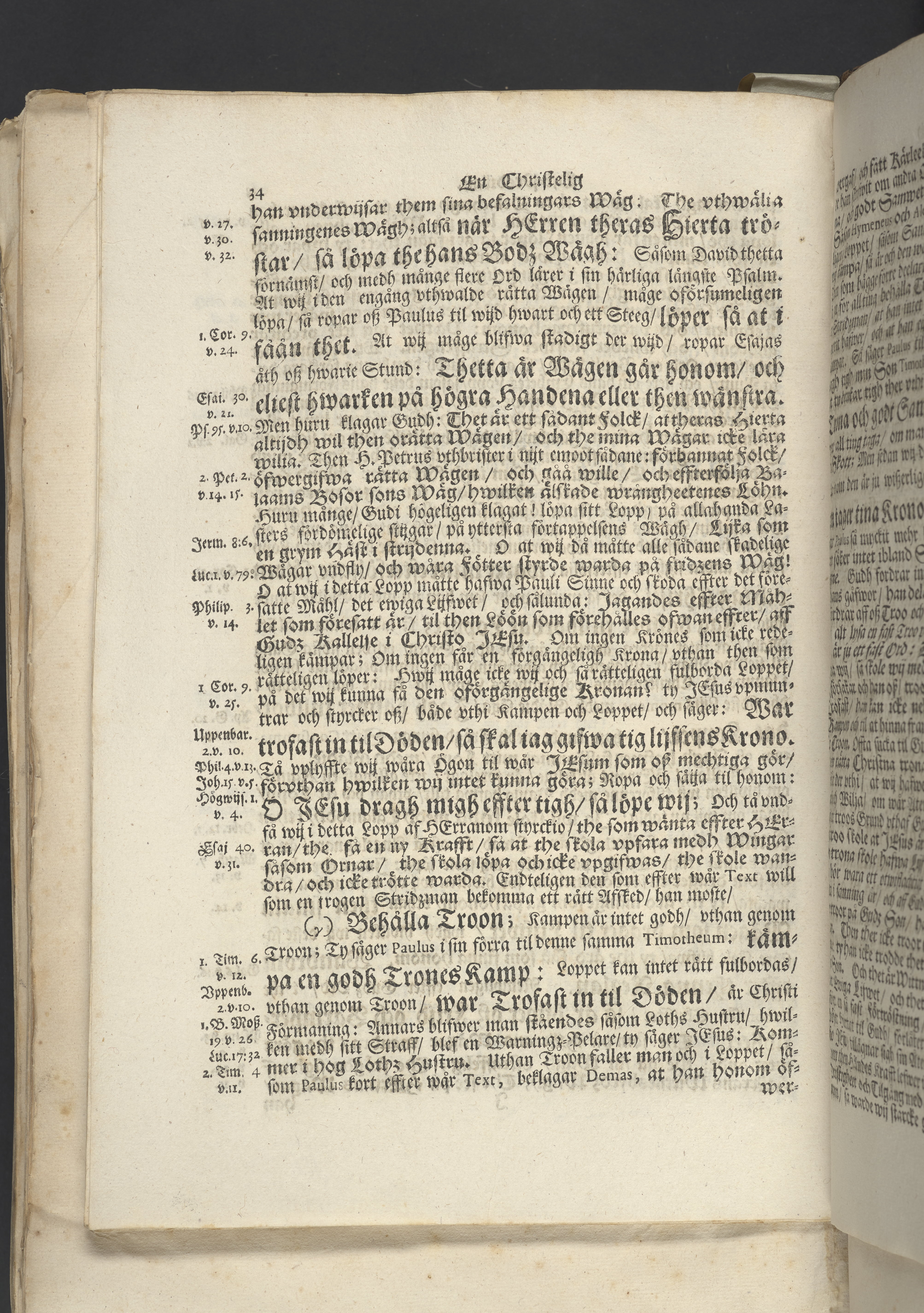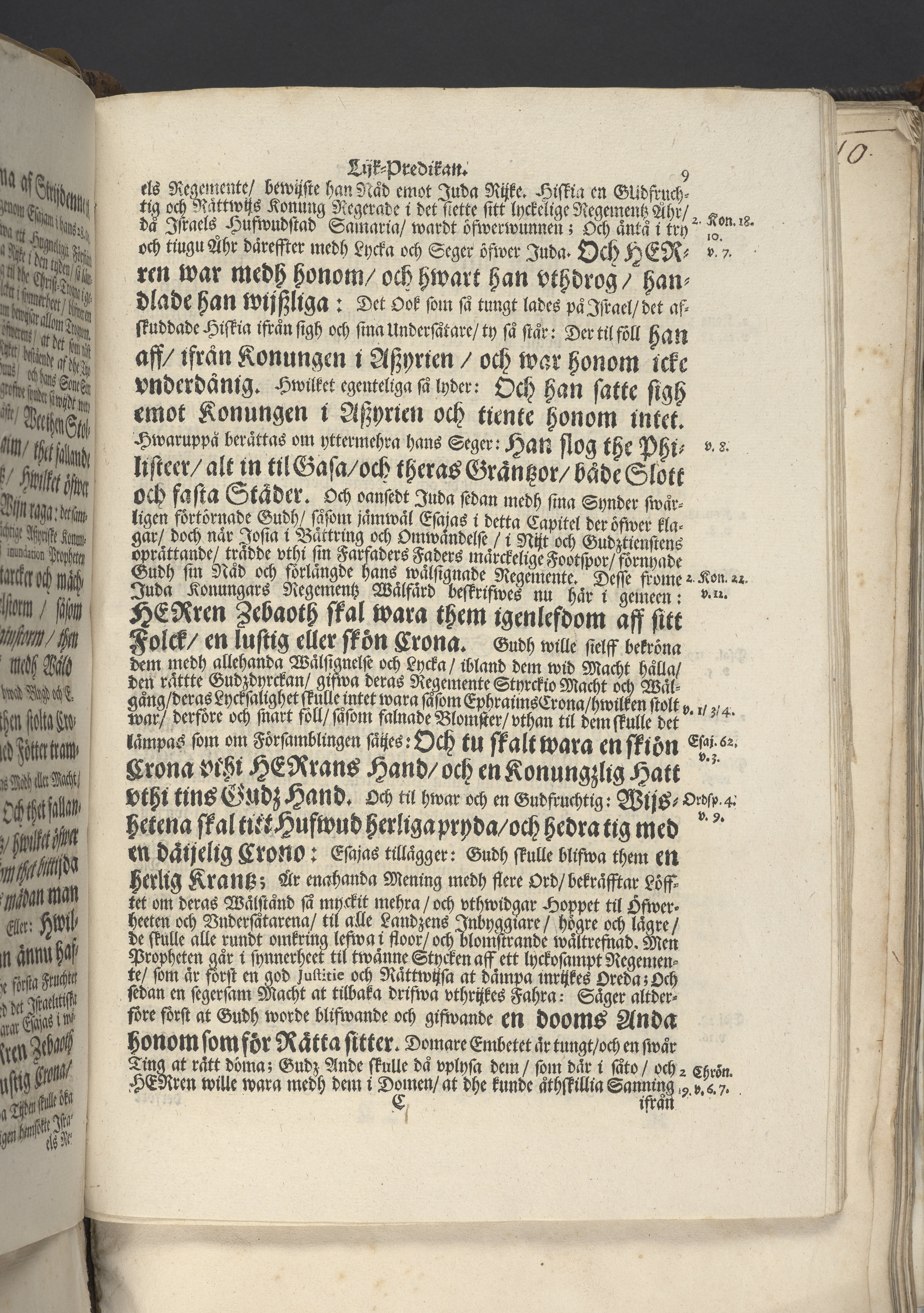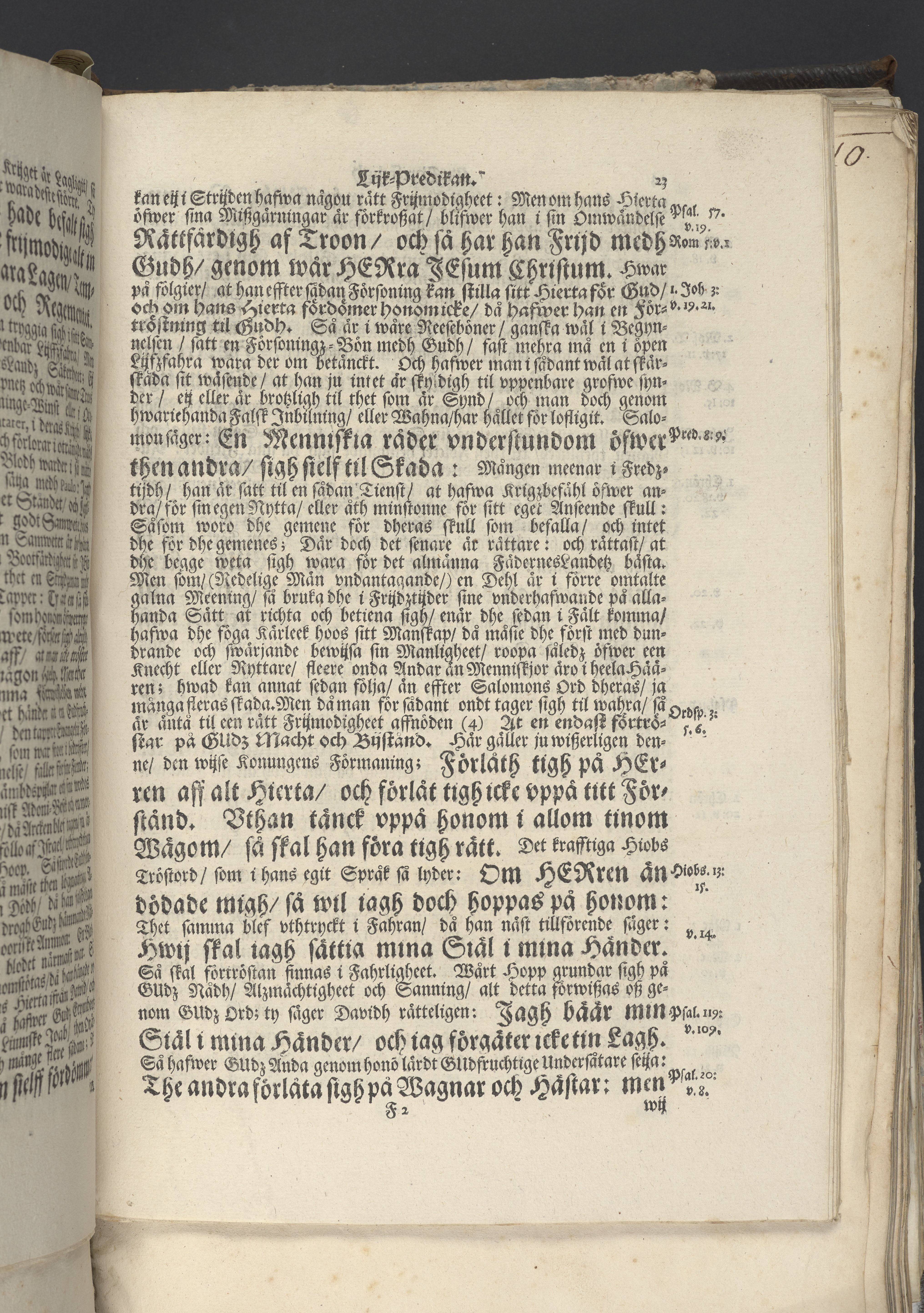 Band m. pärmar av marmorerat papper, rygg och hörn av pergament. Pärmfyllnad: trä.