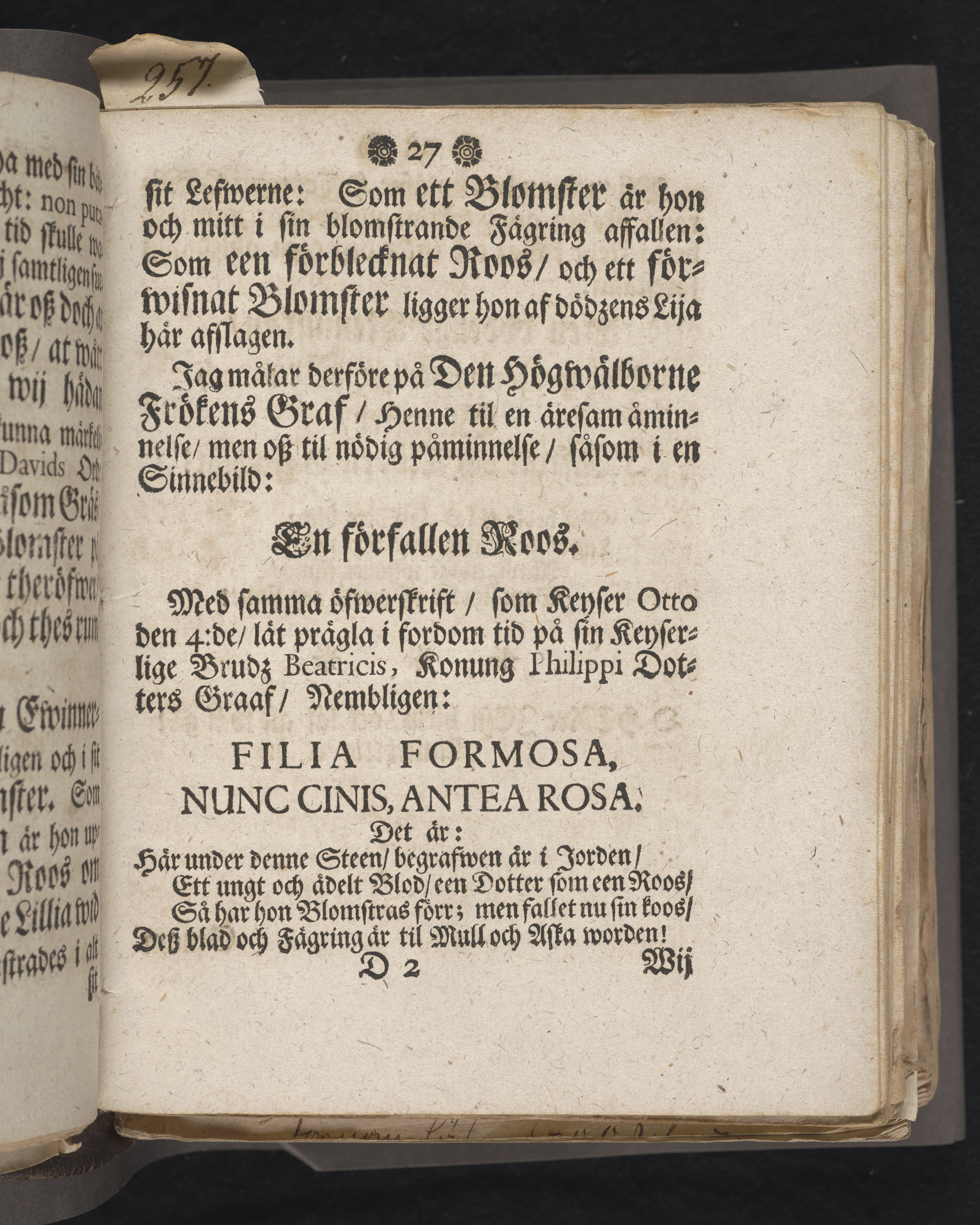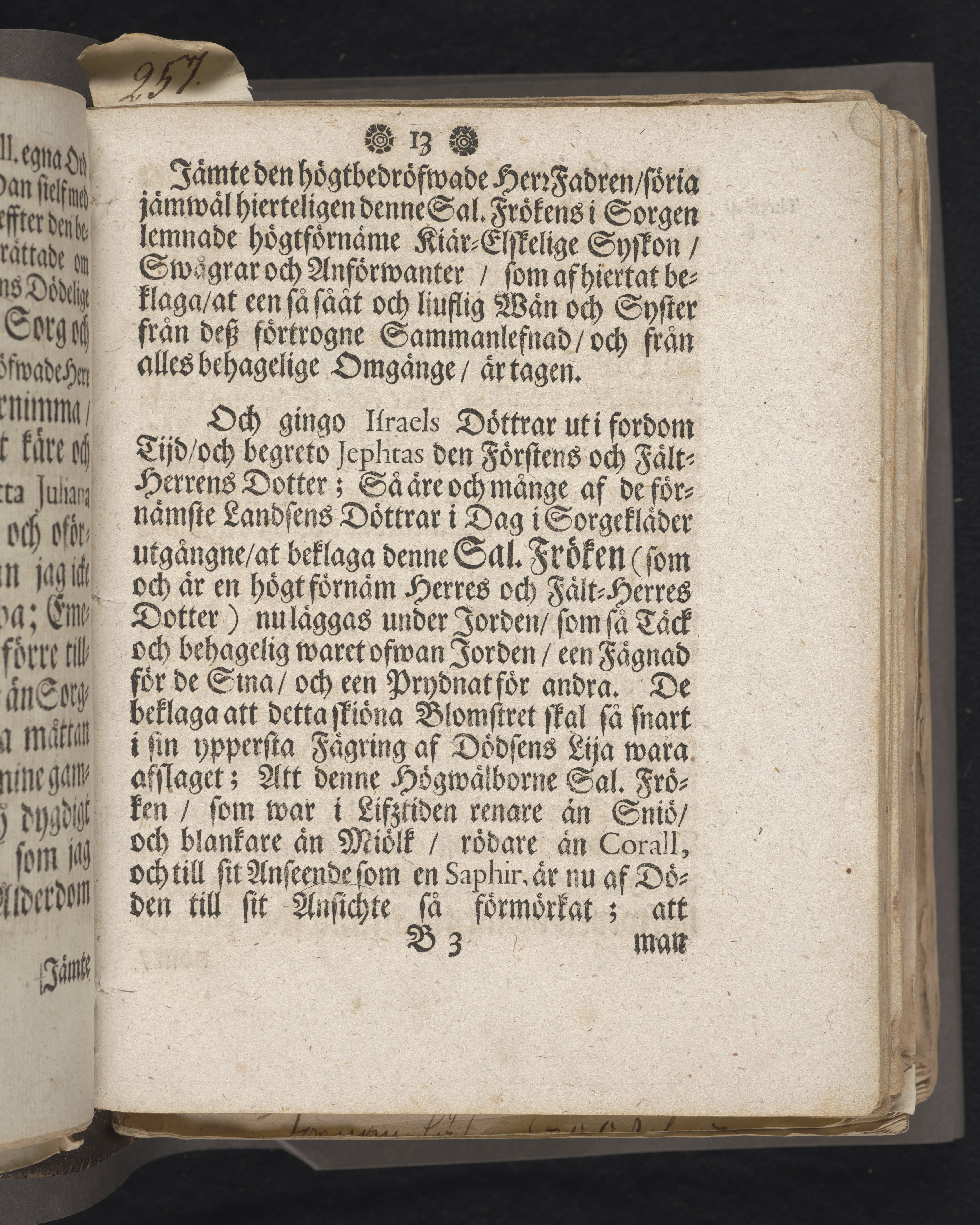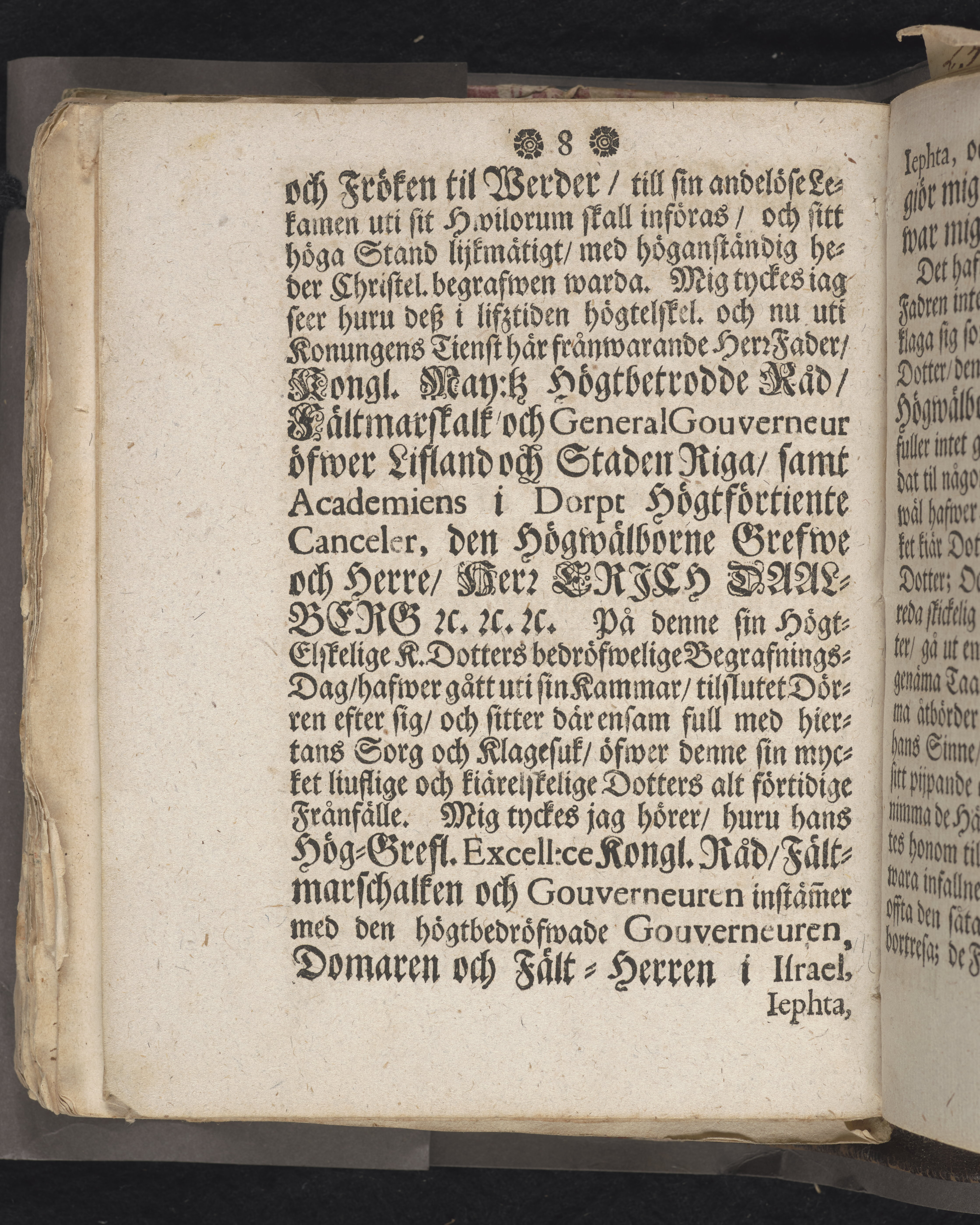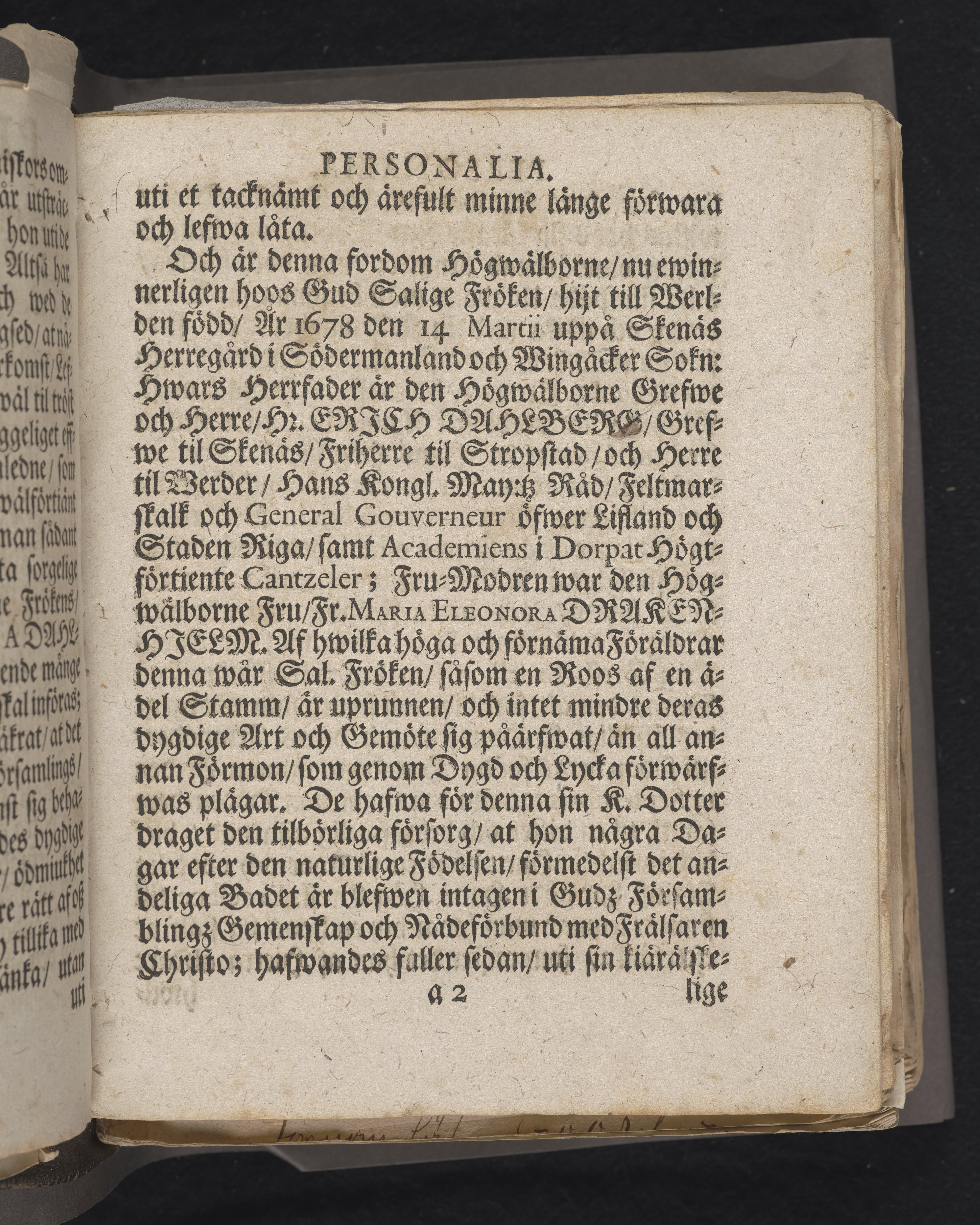 Den dödelige menniskan wid grääs och blomster förliknad, då högwälborne, nu ewinnerlig salige fröken, Fr. Charlotta Juliana Dahlberg, grefwe-dotter til Skenääs ... blef begrafwen, uti kongl. Ridderholms kiyrkan i Stockholm, åhr 1699. den 23. aprilis: och uti en christelig lijk-sermon ... förestäld, af ... Johan Thingwall. Stockholm, tryckt uti kongl. booktr. hoos sal. Wankifs änckia.