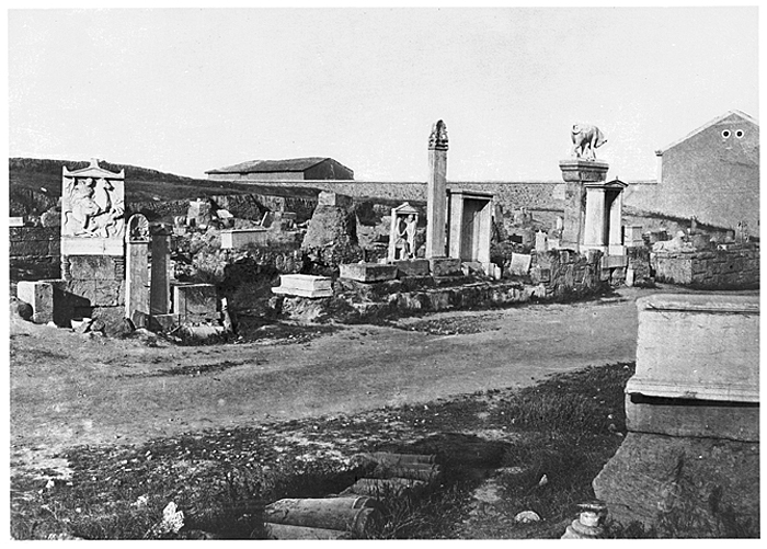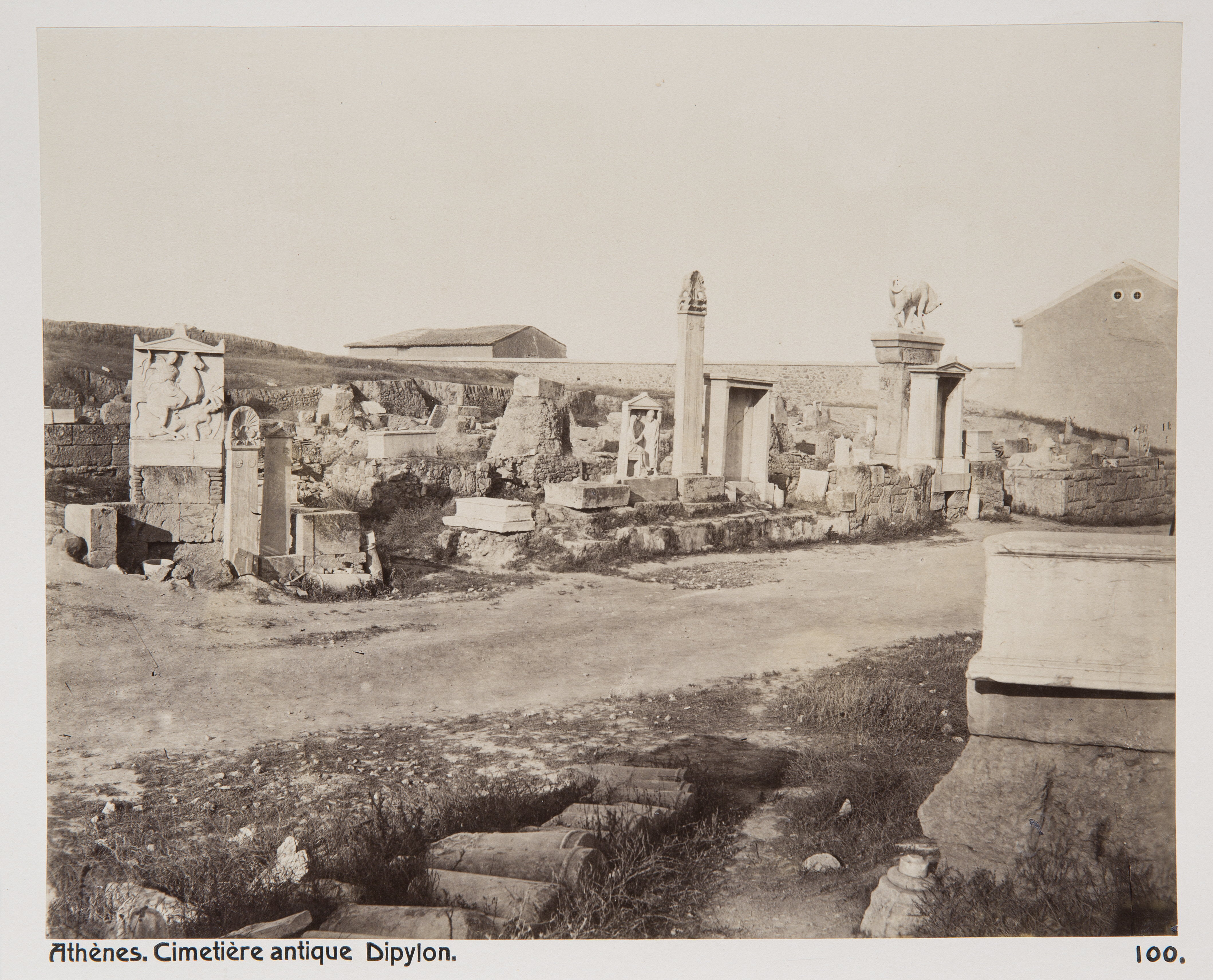 Den antika Dipylon-kyrkogården i Aten, Grekland. Text på originalet: Athènes. Cimetière antique Dipylon. Foto från resa genom Grekland, Makedonien och Serbien, 15 mars-6 juni 1896. Fotografierna LXVI:K.18.-147. är köpta av Wilhelmina von Hallwyl, f. Kempe på Korfu samt i Patras, Nafplion, Aten, Thessaloniki och Belgrad. Med på resan var maken Walther von Hallwyl och fröken Ida Uhse. Uppgifterna kommer från Ida Uhses reseanteckningar.