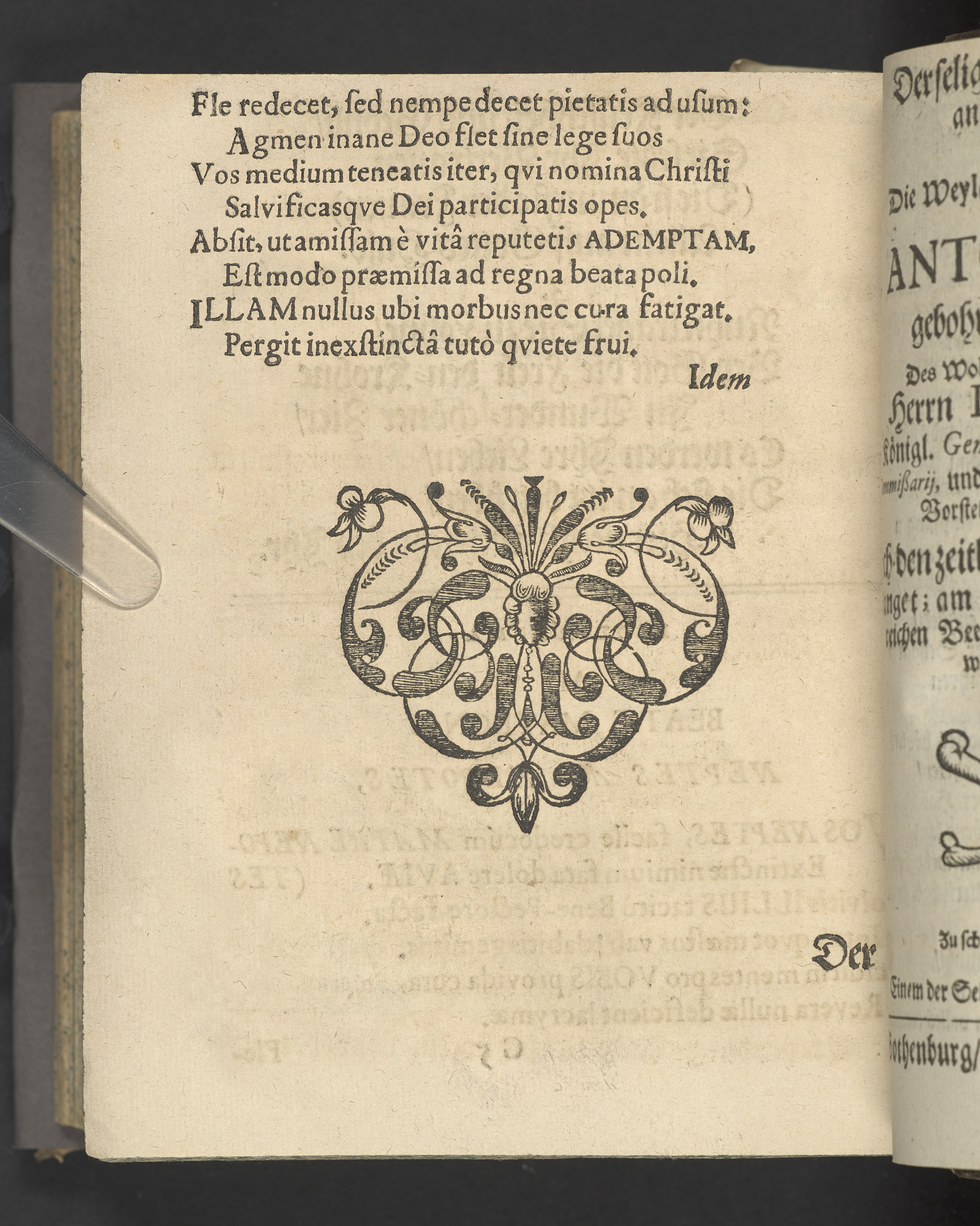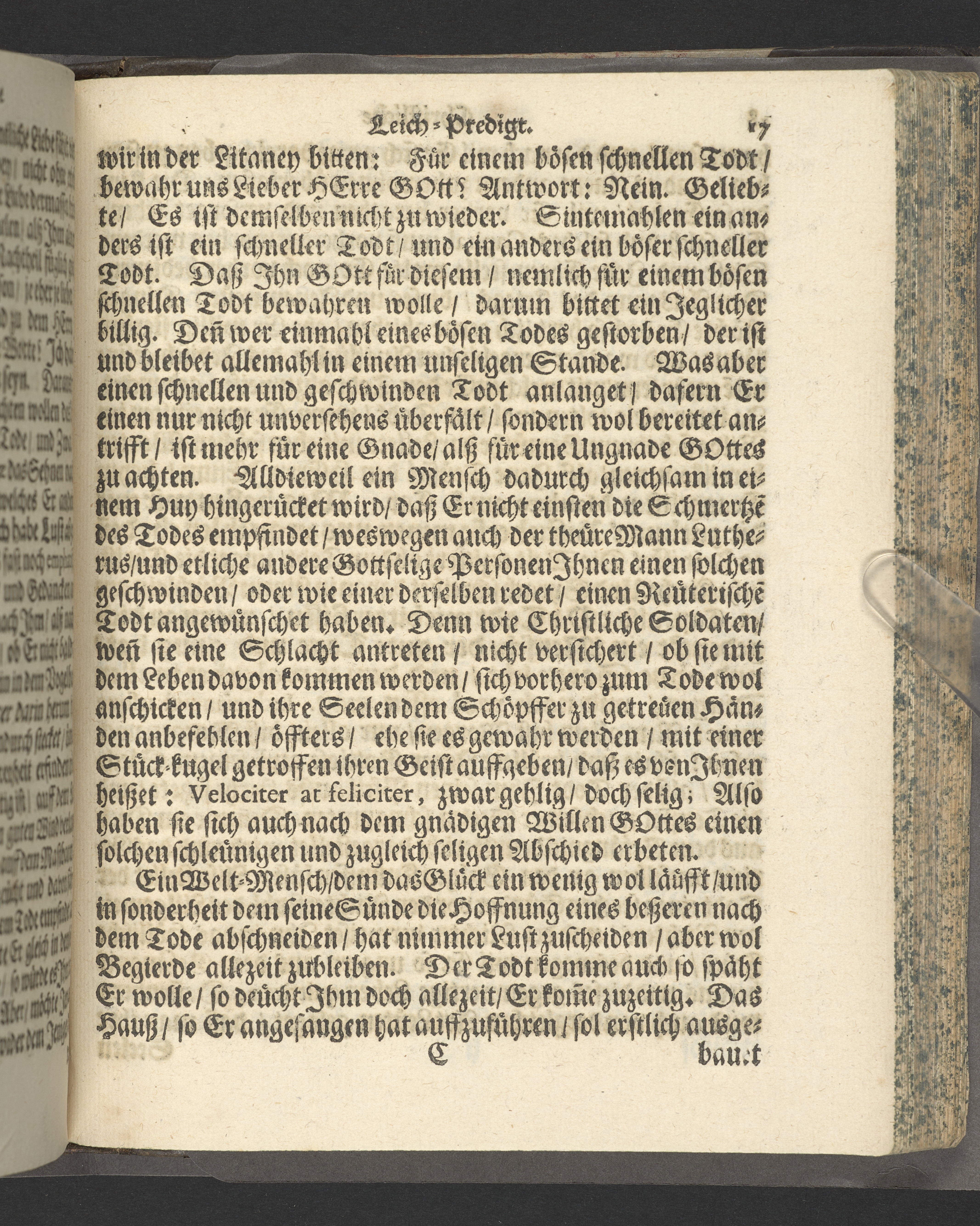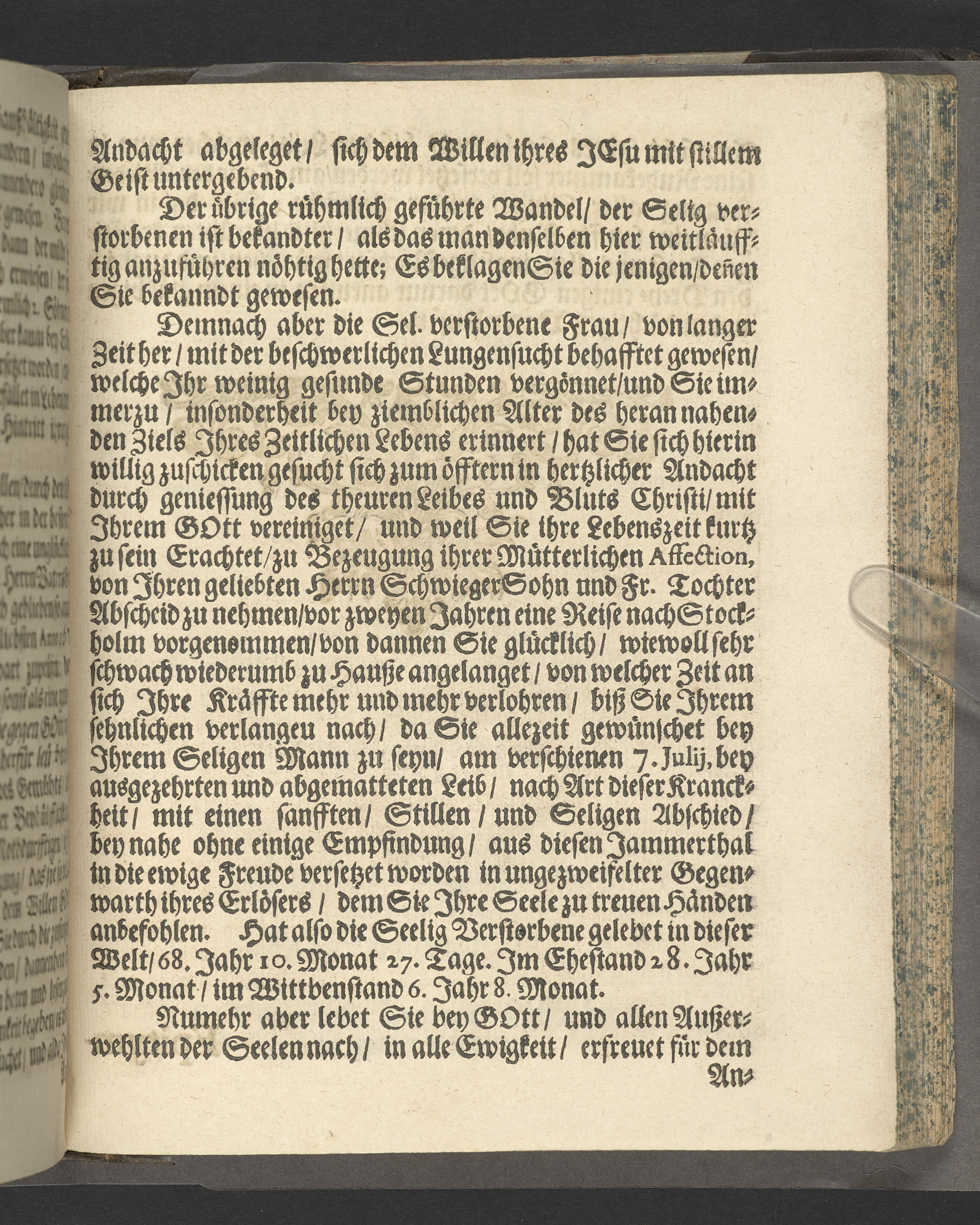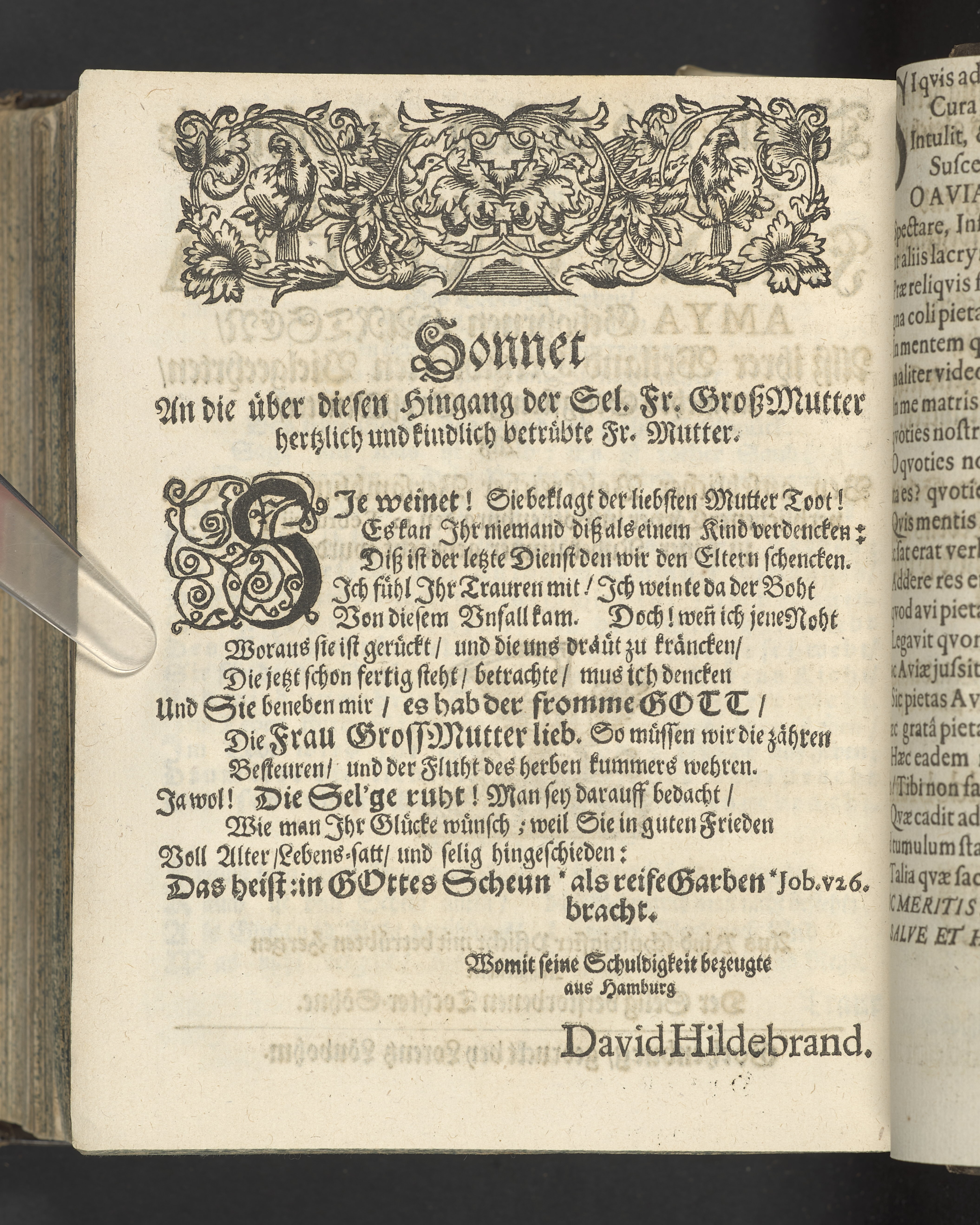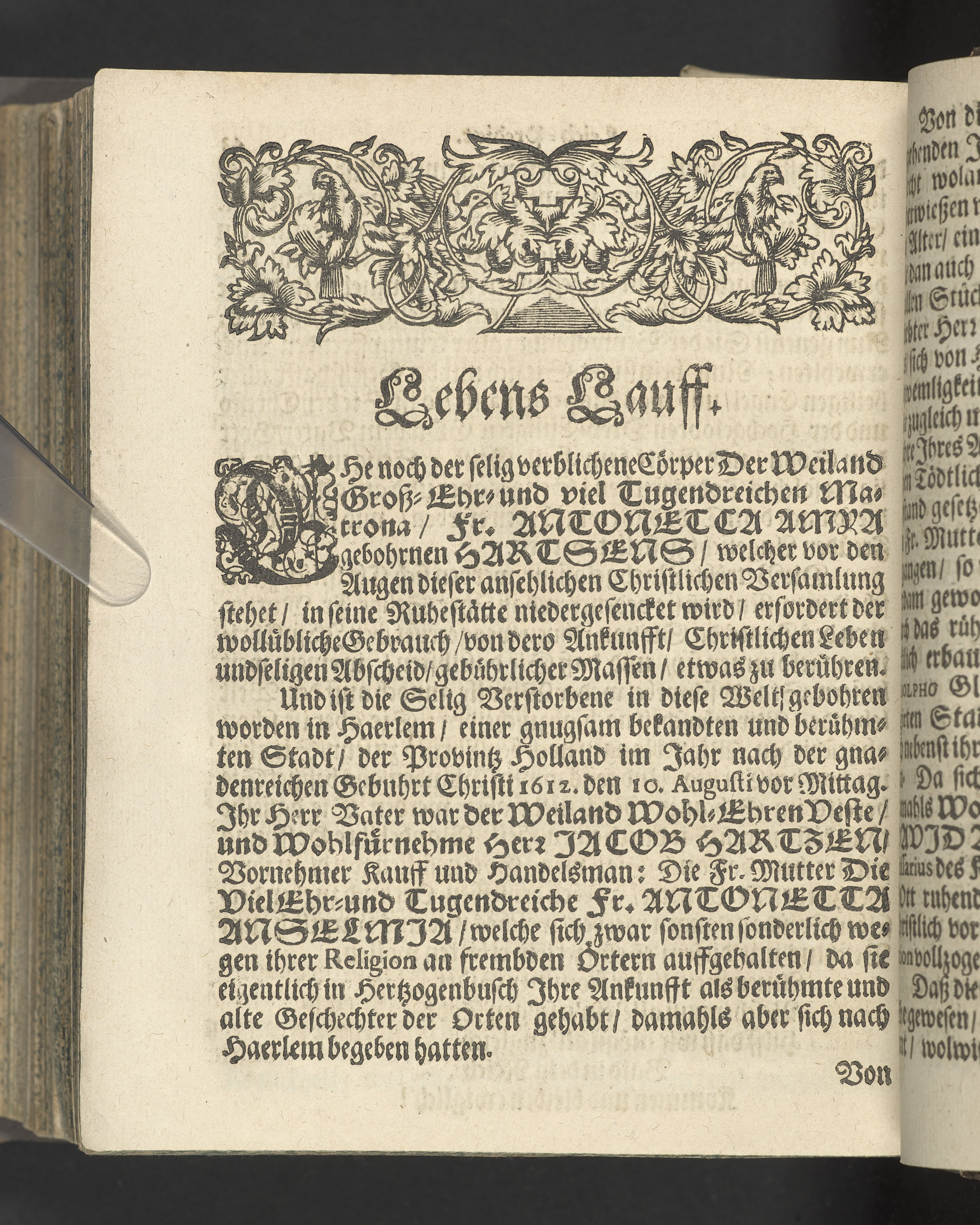 Pium & serium mortis desiderium oder Das sehnlich Heim-Sehnen welches nach dem Exempel des Hocherleuchteten Apostels Pauli, in der neün und sechzig jährigen Pilgrimschafft ihres Lebens höchst verlanget, und der Seelen nach, durch eine sanffte Abfoderung den 7. Julii Anno 1681. erfreülicht vergnüget gesehen hat die grosz-ehr- und viel-tugendreiche Matrona Fraw Antonetta Hartsens, des weyland wohl-ehrenvesten, groszachtbahren und wolbetrauten herrn David Amya, gewesenen Commissarij des Königl. General Commerc-Collegii, fürnehmen Kauff- und Handelsherrn, so auch treüfleiszigen Vorstehers der Teütschen Kirchen in Gothenburg, Nachgelassenen Fr. Witwen. In volckreicher Versamlung betrachtet und fürgestellet aus dem 23. Vers des I. Cap. der Epistel an die Philipper. Am Tage ihrer ansehlichen Niedersetzung in dero Erbbegräbnisz vorbesagter Kirchen, war der 12. Febr. und Sontag Septuagesima Anno 1682, numehro auff begehren auch im Druck mitgetheilet durch M. Johannem Ottonem Burchardum Der Teütschen Kirchen in Gothenburg Pastorem.
