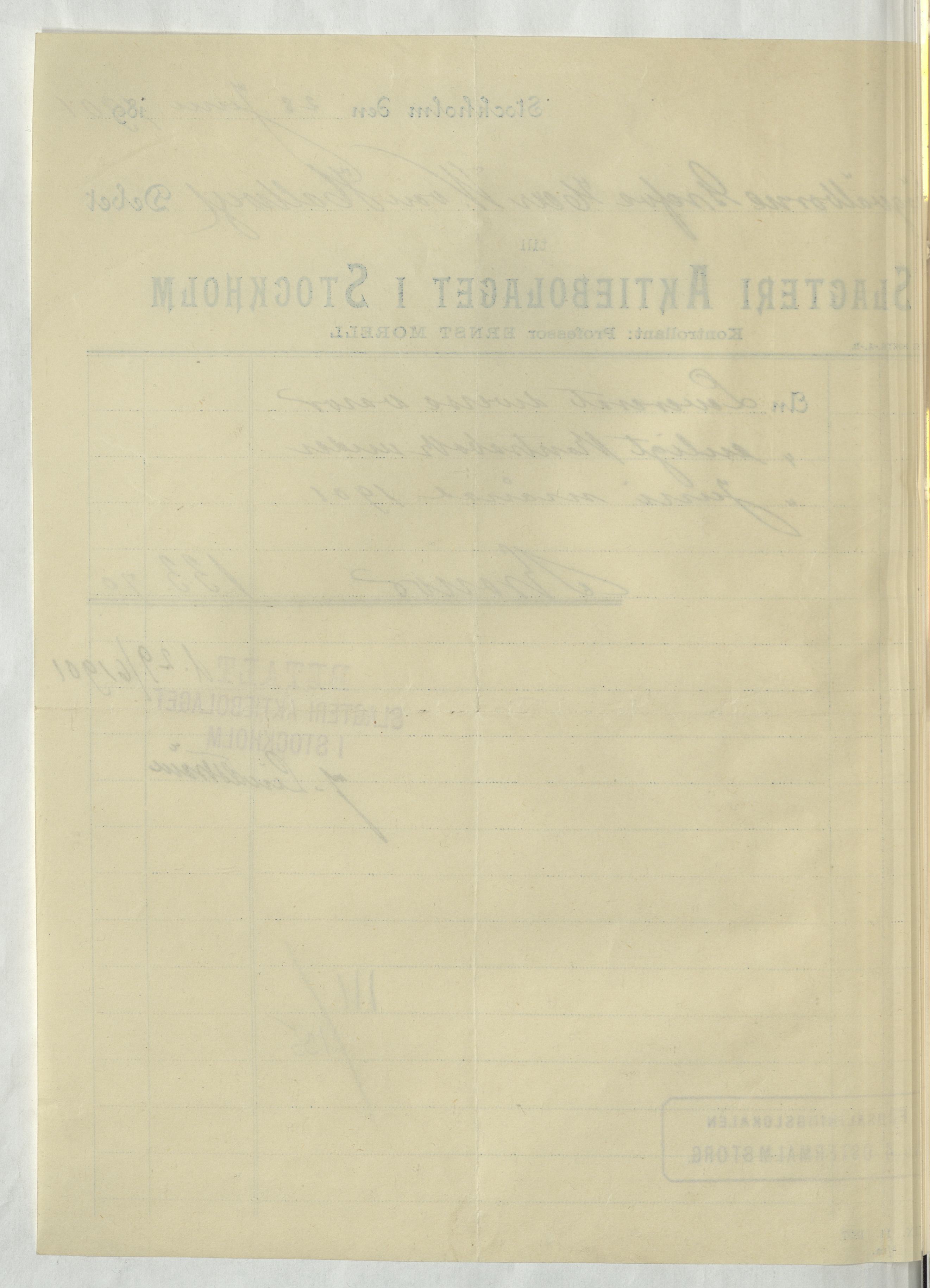 Kvitto från Slagteri Aktiebolaget i Stockholm