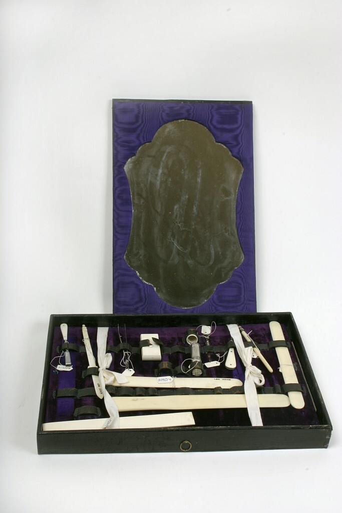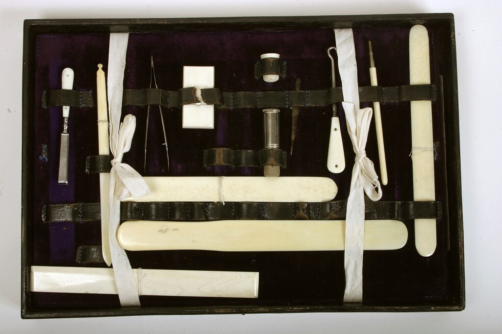 Jämnbred spatel av elfenben med rundade sidor, strömlinjeformad och polerad. I ena änden tunn.