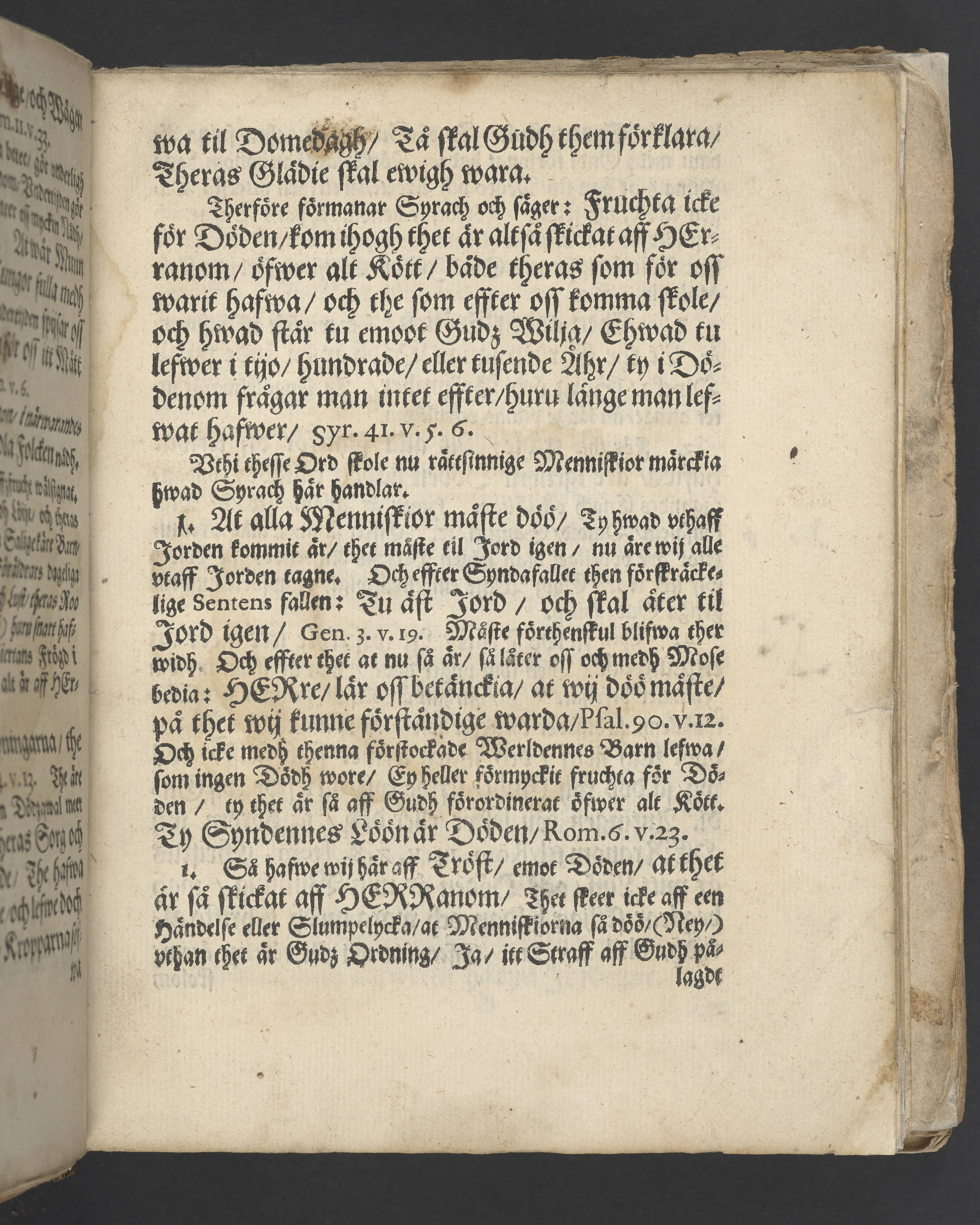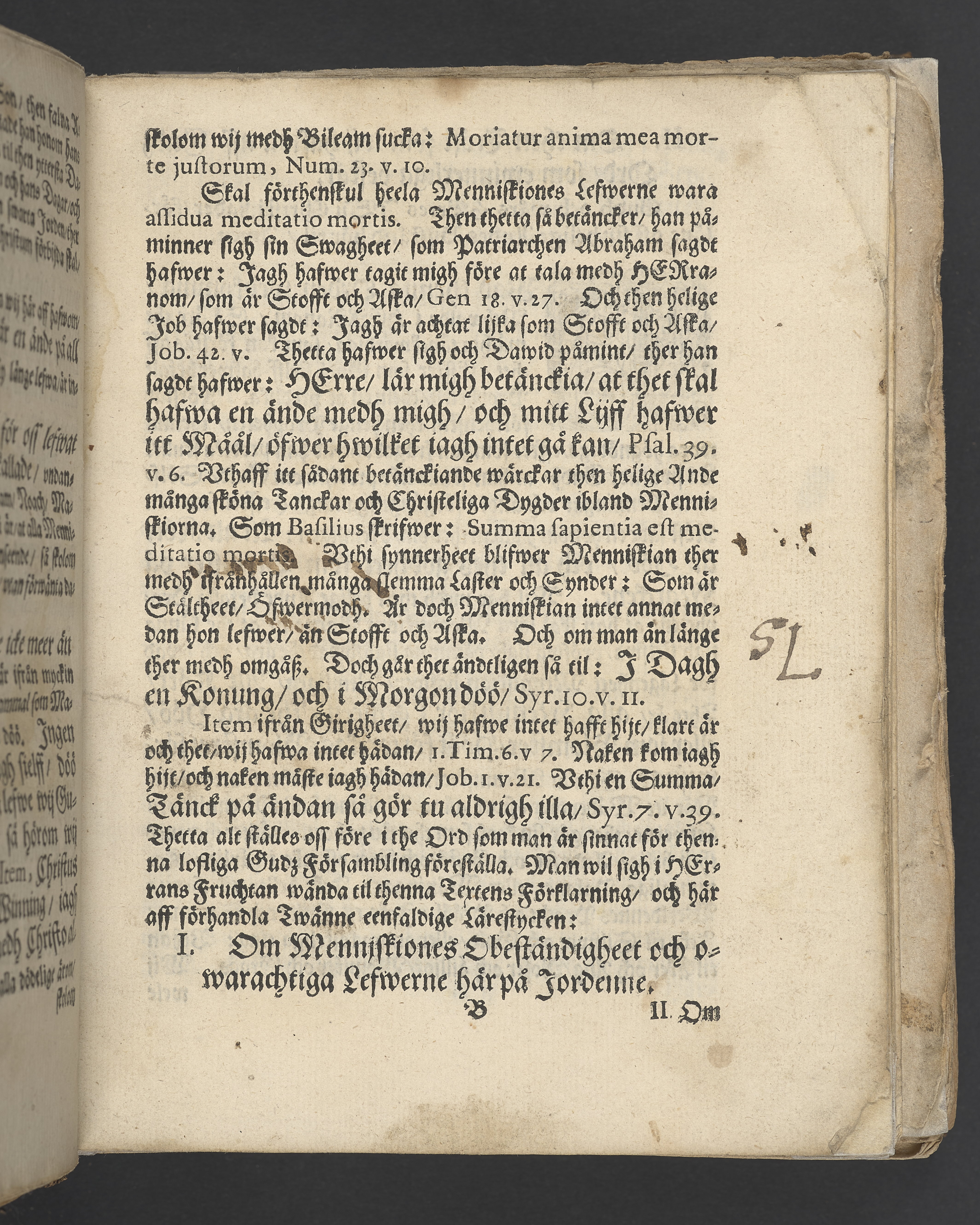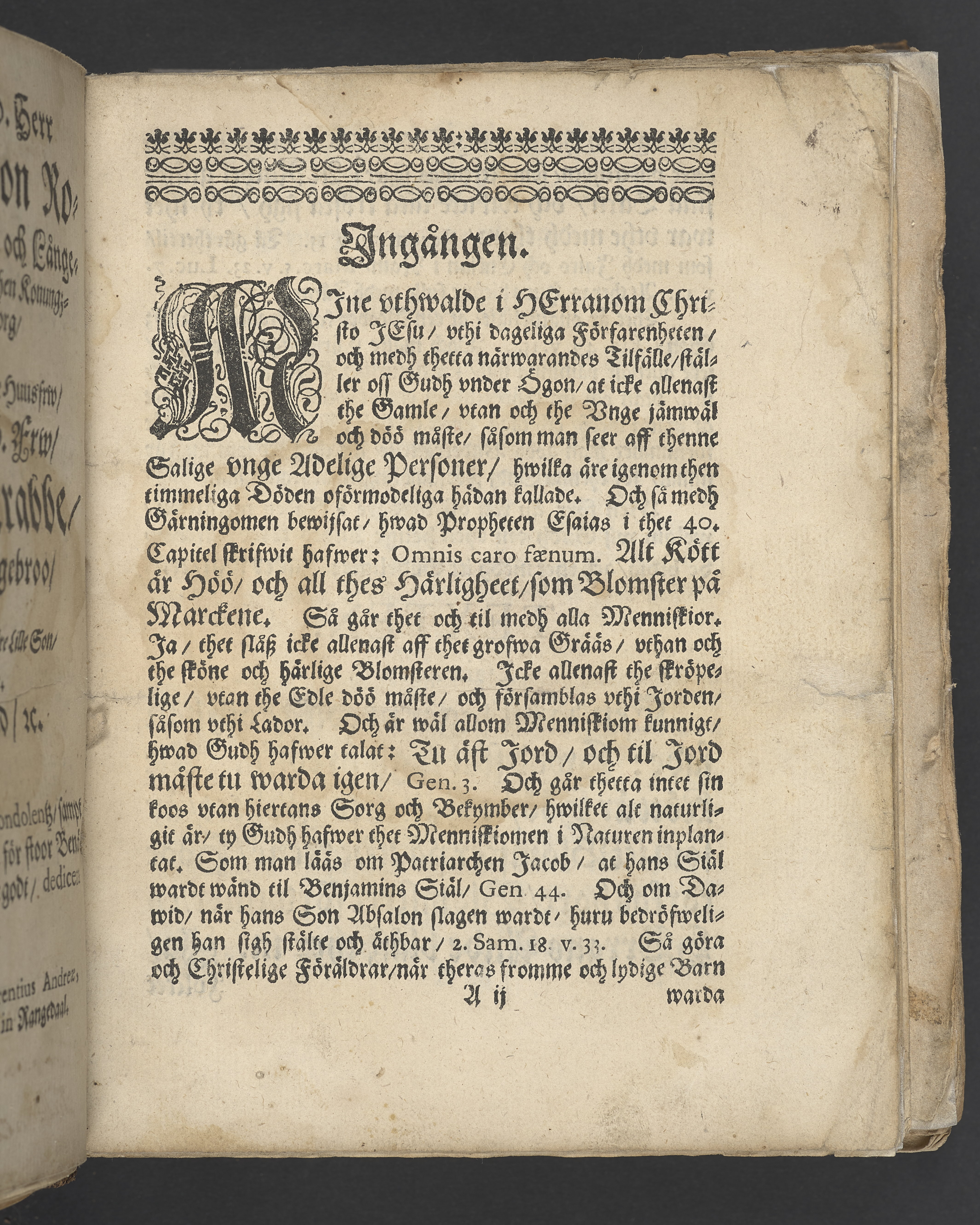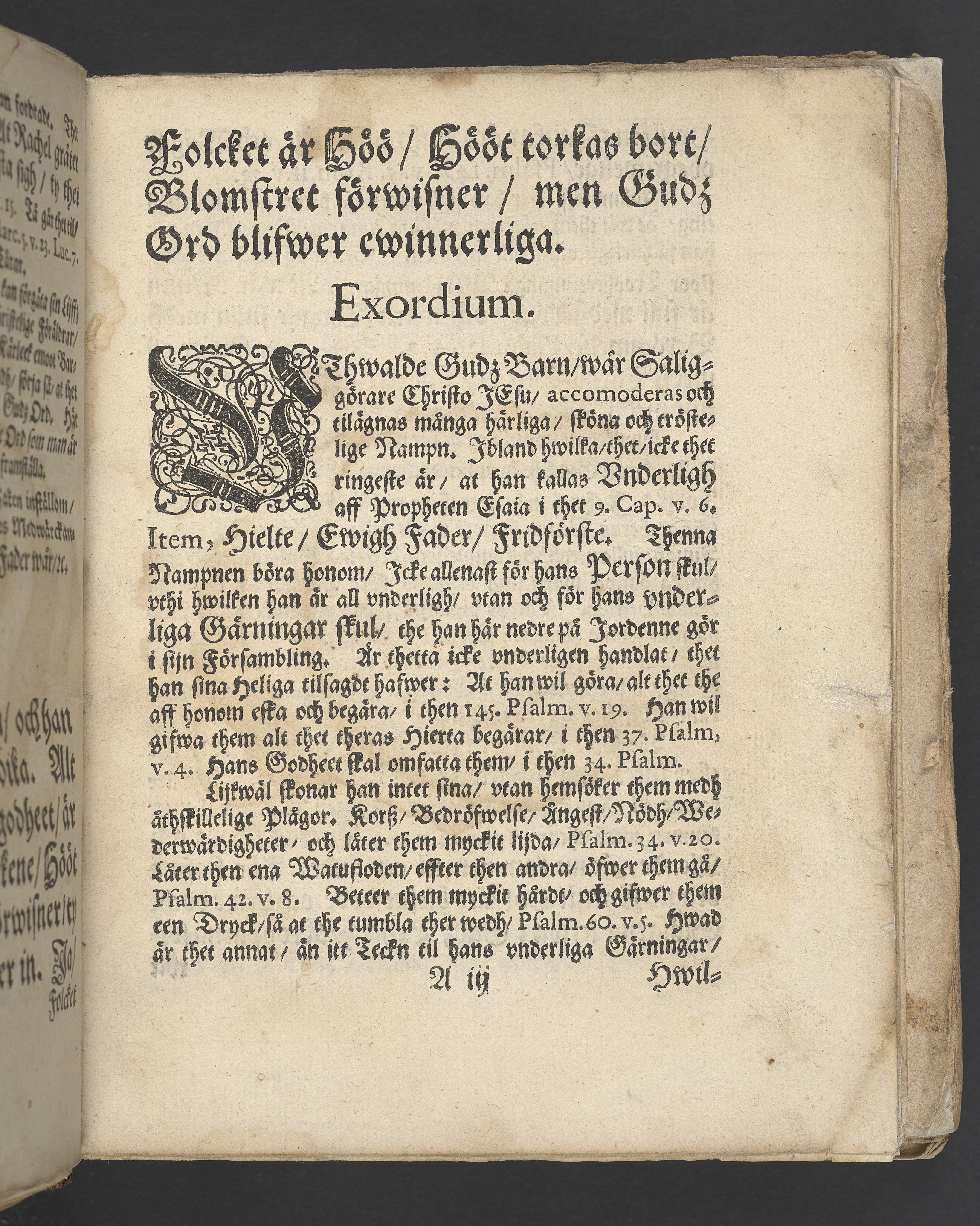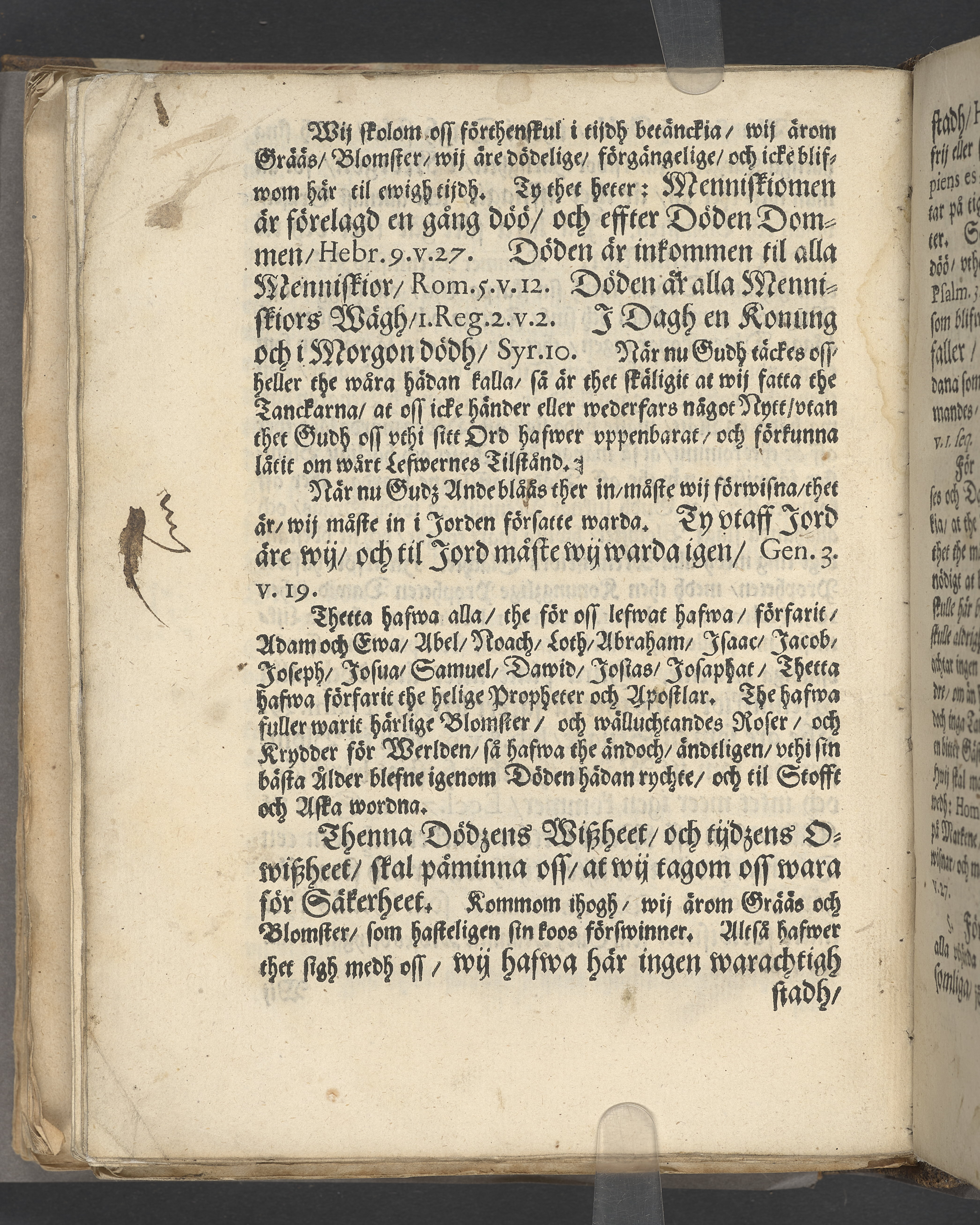 Högst upp på titelsidan anteckning i bläck med uppgifter om födelsedatum för de avlidna. Inskriptioner på titelsidan och sista bladet (r & v). Längst ner på titelsidan i bläck "herre hielp [-][-] alltidh må[?] gå", samt i blyerts "1688 och 35" (en uppställning för subtraktionen 1688-1653). På sista tryckta sidan (recto) längst ner "i dena boken har min h.a.k. brodr[?] skrifit i gud welsingne honom". På sista bladet verso talrika anteckningar i olika riktning, huvudsakligen namn bl.a. "Gabriel Lillija", "Sidonia Lillja" och "Maria". Längst upp med annan hand en svårläst inskription.