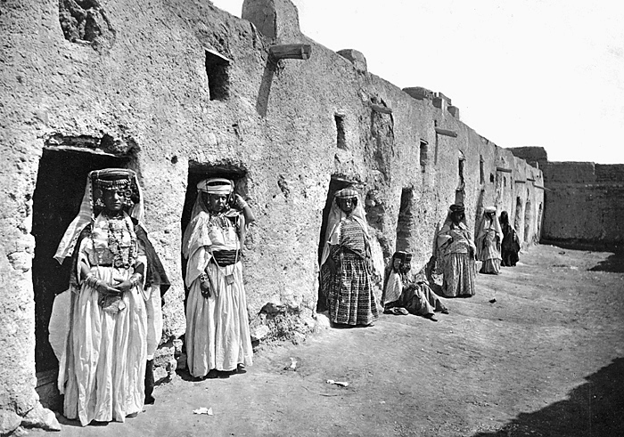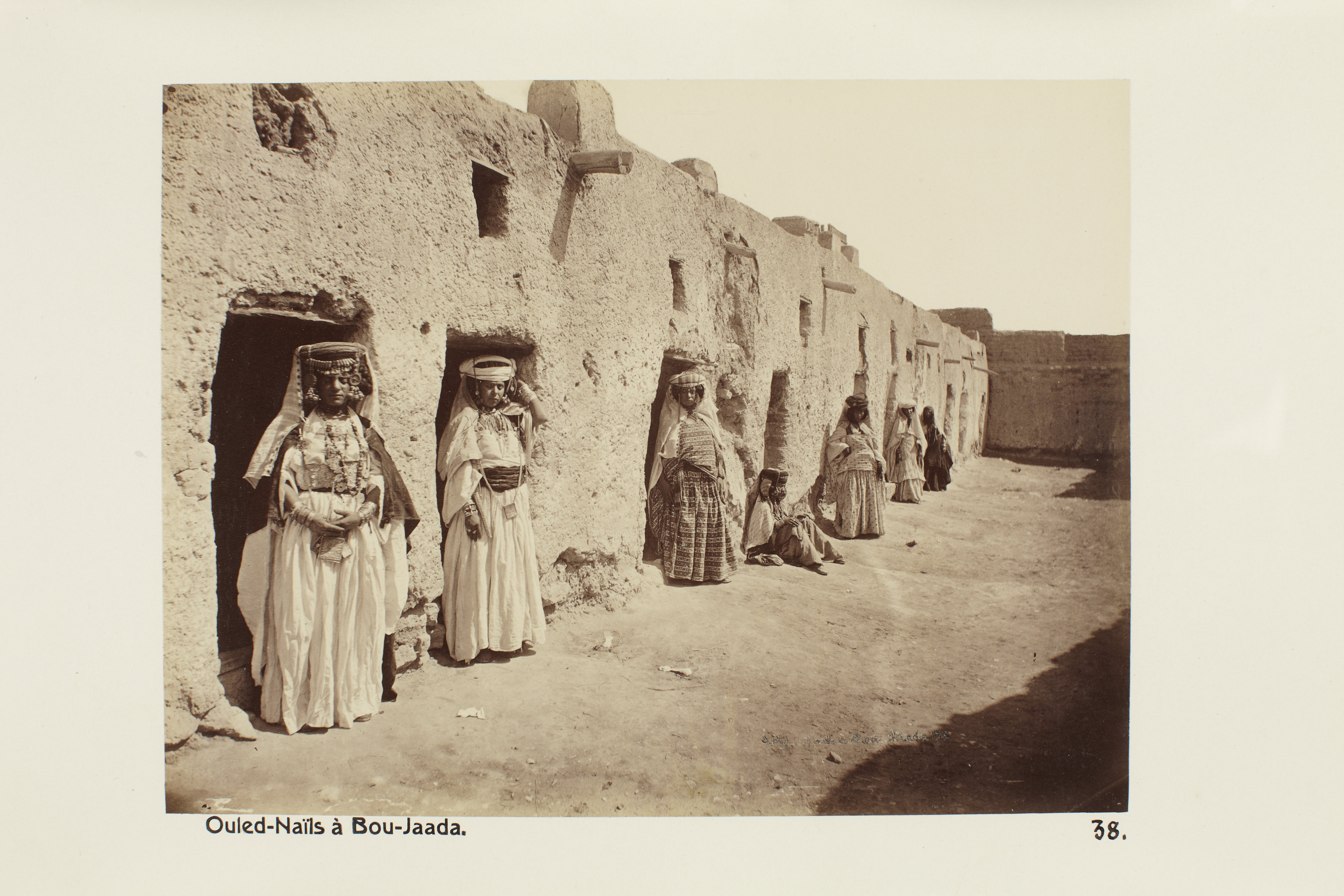 BOU-SAADA, Algeriet. Ouled-Naïls-kvinnor. Foto från resa genom Algeriet och Tunisien samt åter över Schweiz, 11 februari - 19 maj 1889. Samtliga foton i gruppen LXVI:F. är inköpta av Wilhelmina von Hallwyl i Alger, Biskra, Tunis, Constantine, Oran och Blidah vid hennes vistelse i nämnda städer tillsammans med sin make, Walther von Hallwyl, sin mor, Johanna Kempe, f. Wallis, dottern Irma samt fröknarna Caroline Pflaum och Ida Uhse. Uppgifterna kommer från fröken Ida Uhses reseanteckningar.