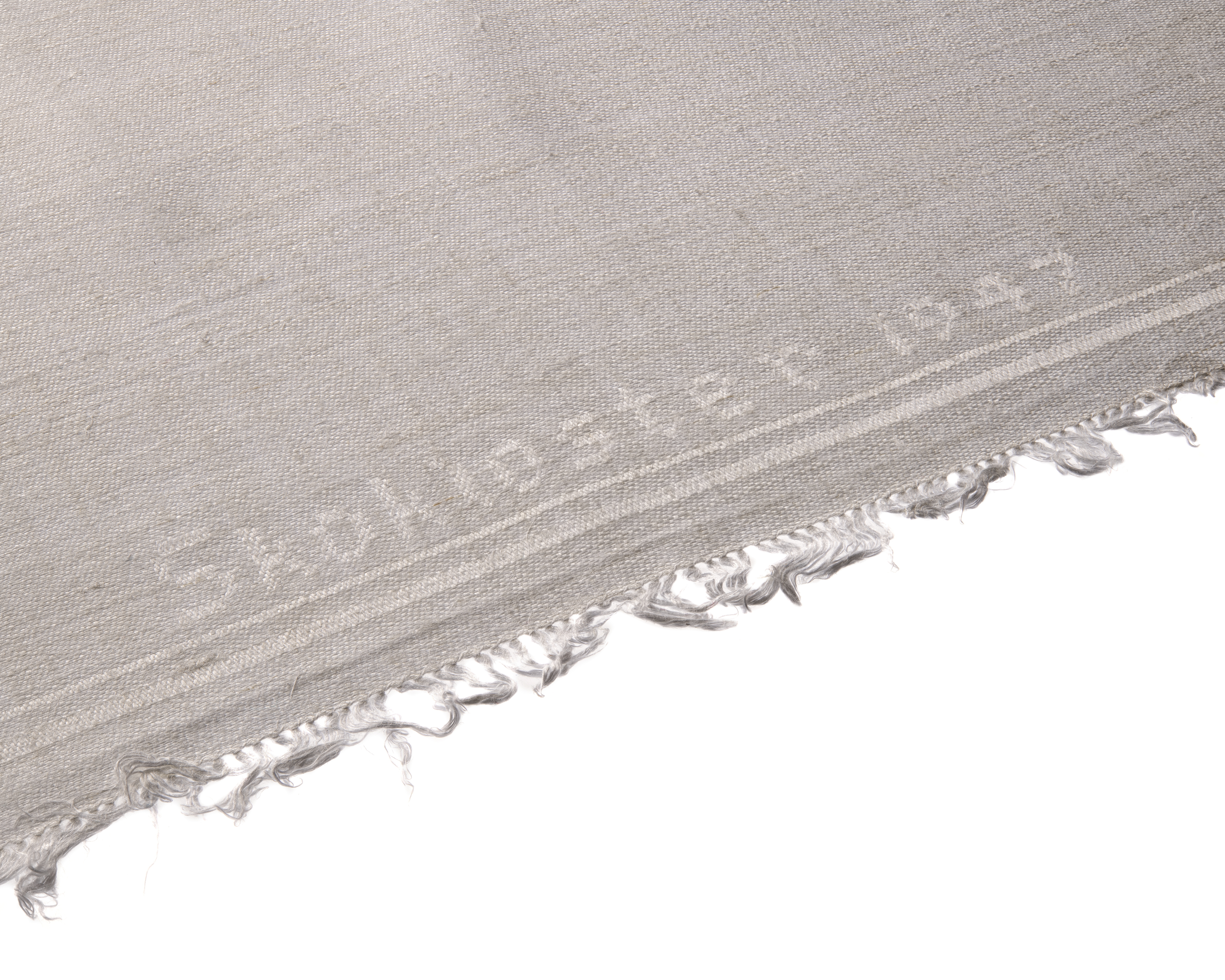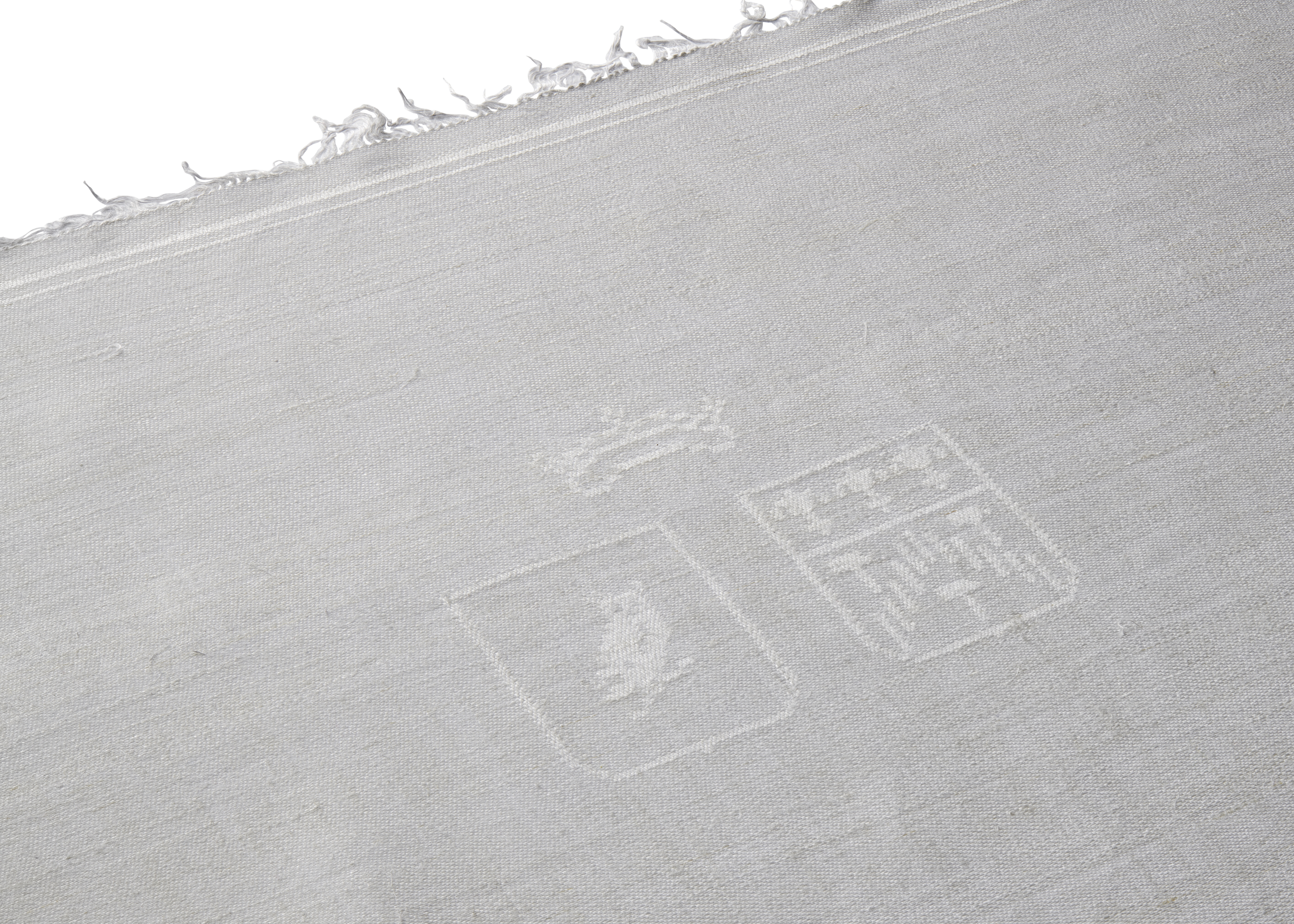 Mittmotivet utgörs av von Essens och Tersmedens vapensköldar under adlig krona som upprepas fyra gånger på varje duk. I den nedre långidans kant invävt: "Skokloster 1947". Längs dukens fyra sidor en smal samt en bredare rand. Duken avslutad med fransad kant ca 15mm bred på alla sidor.