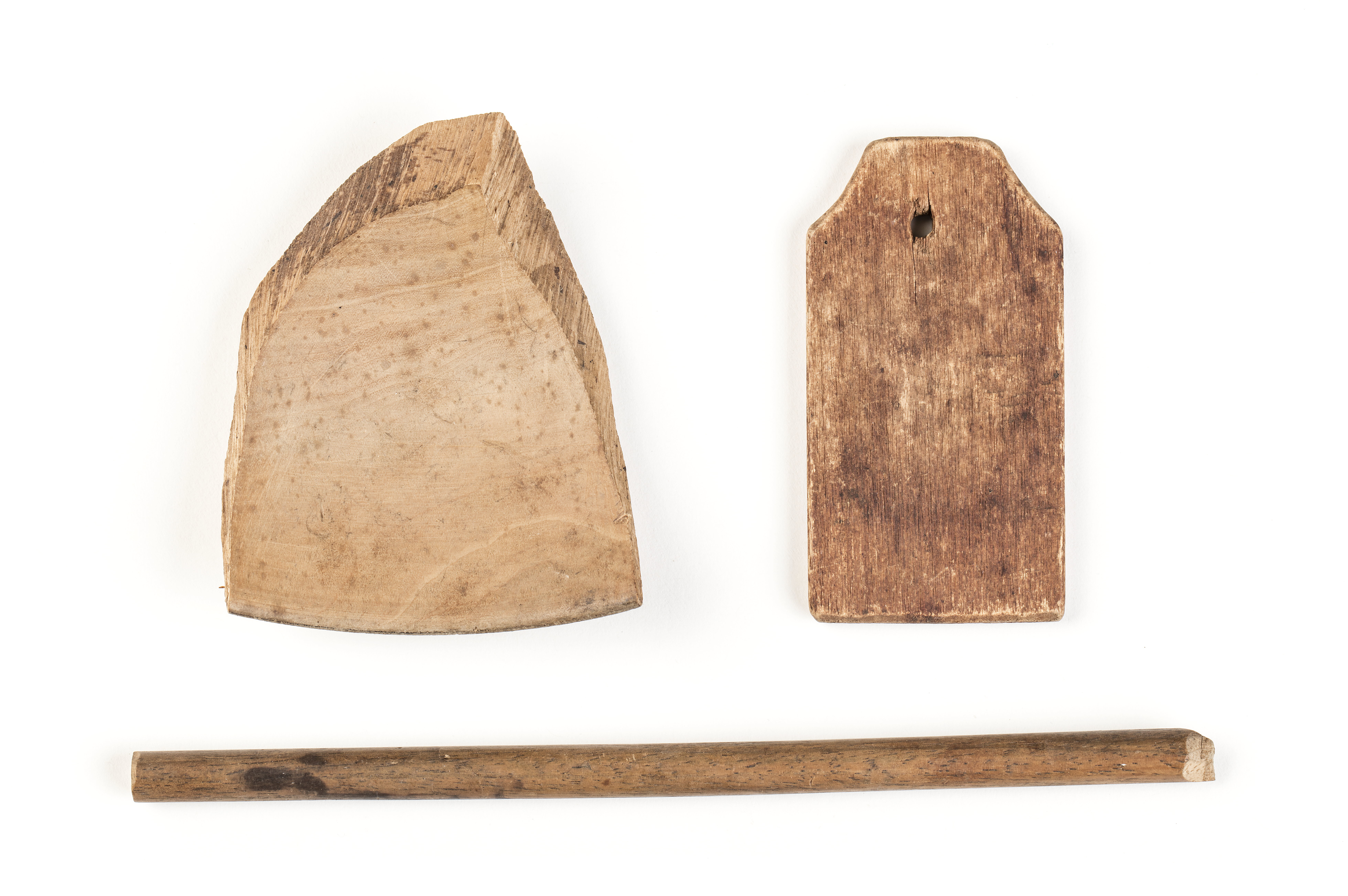 Träföremål, tre stycken.