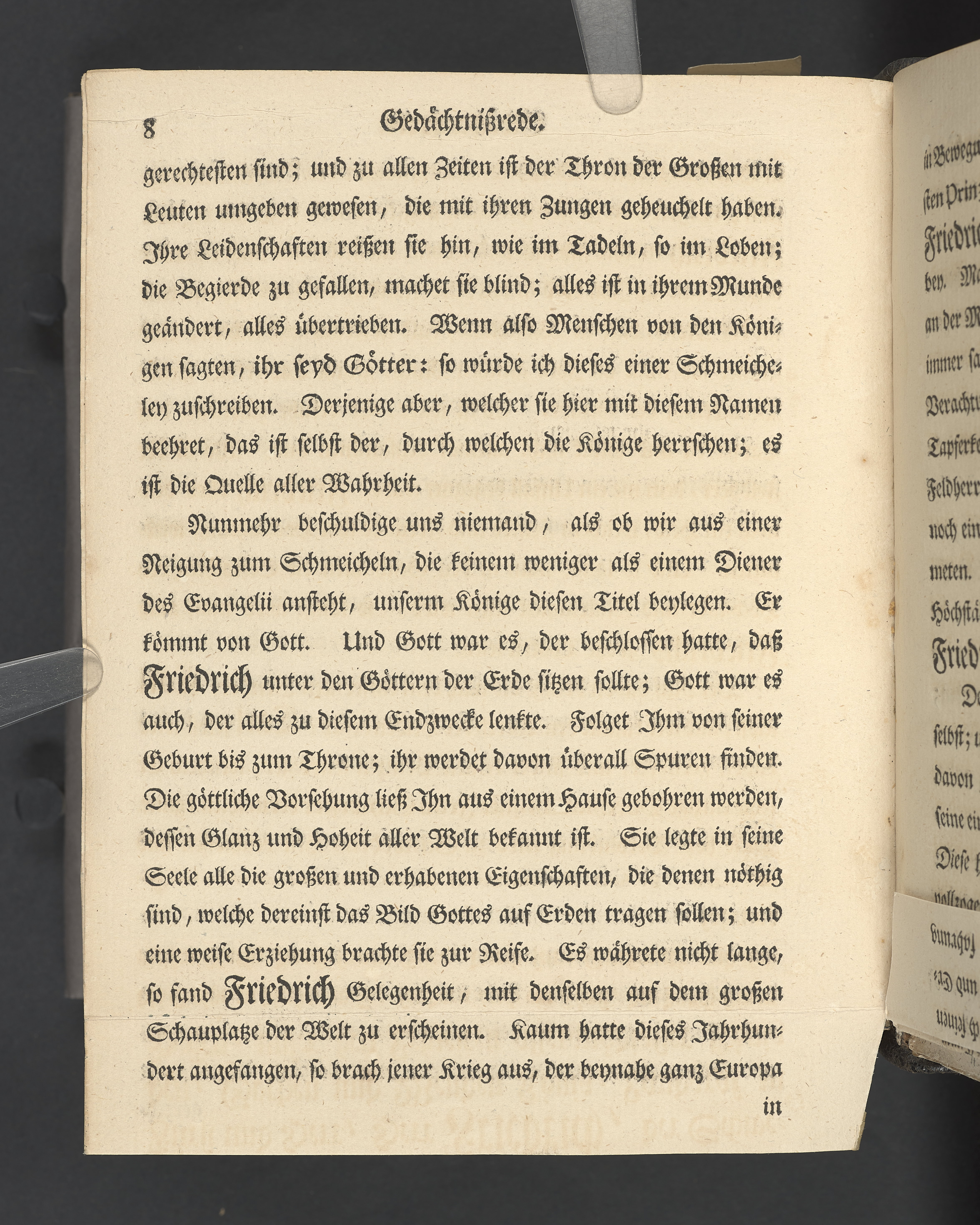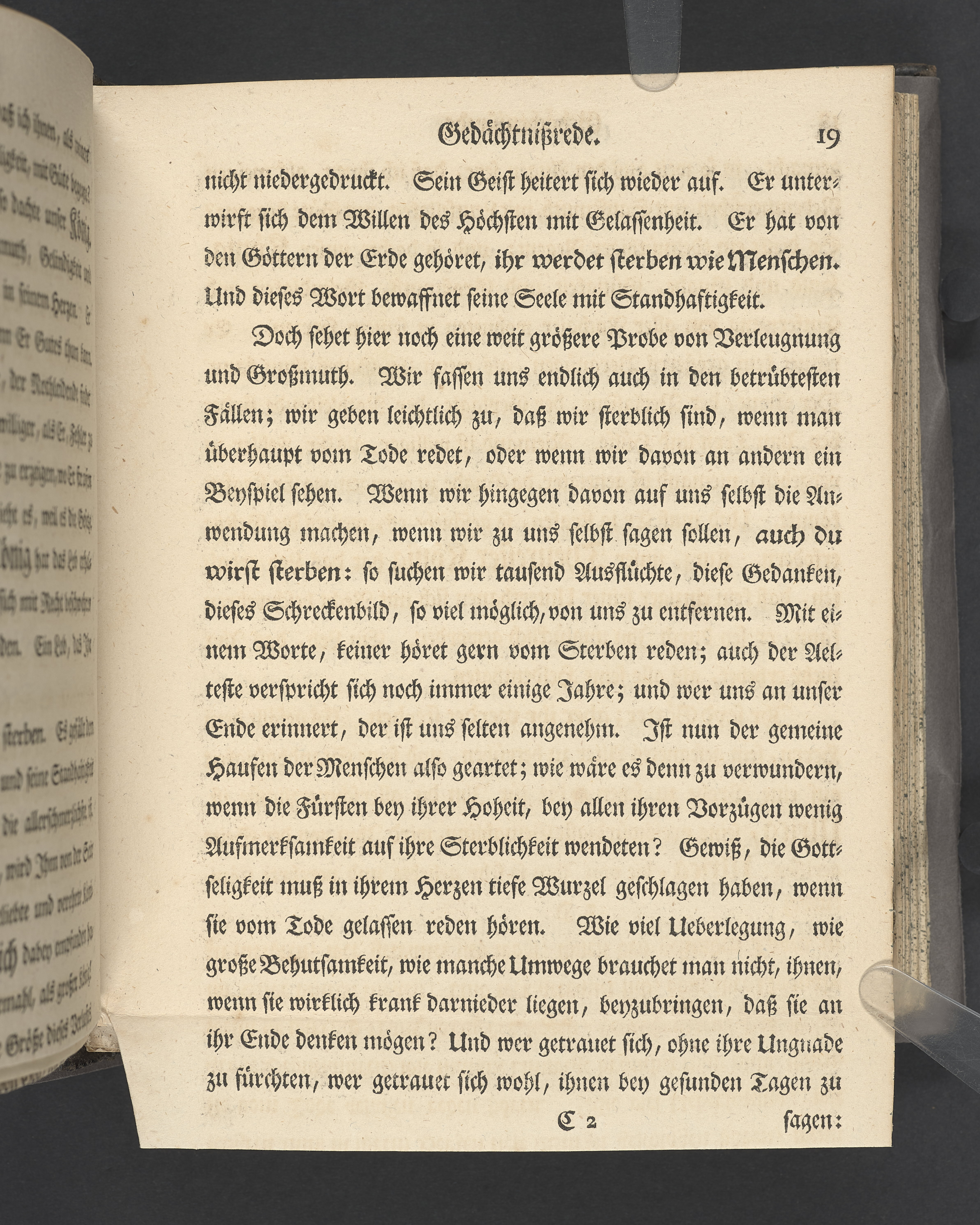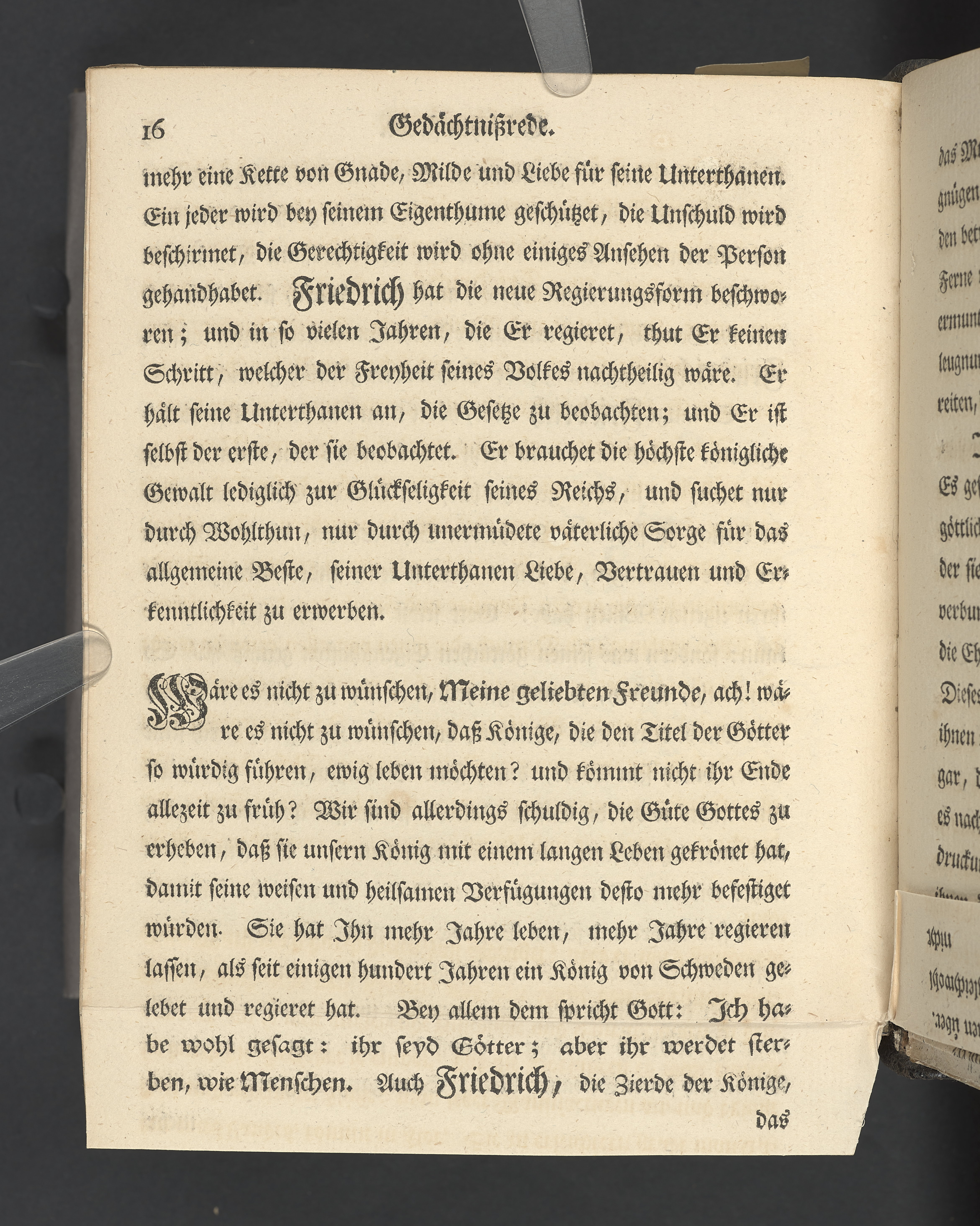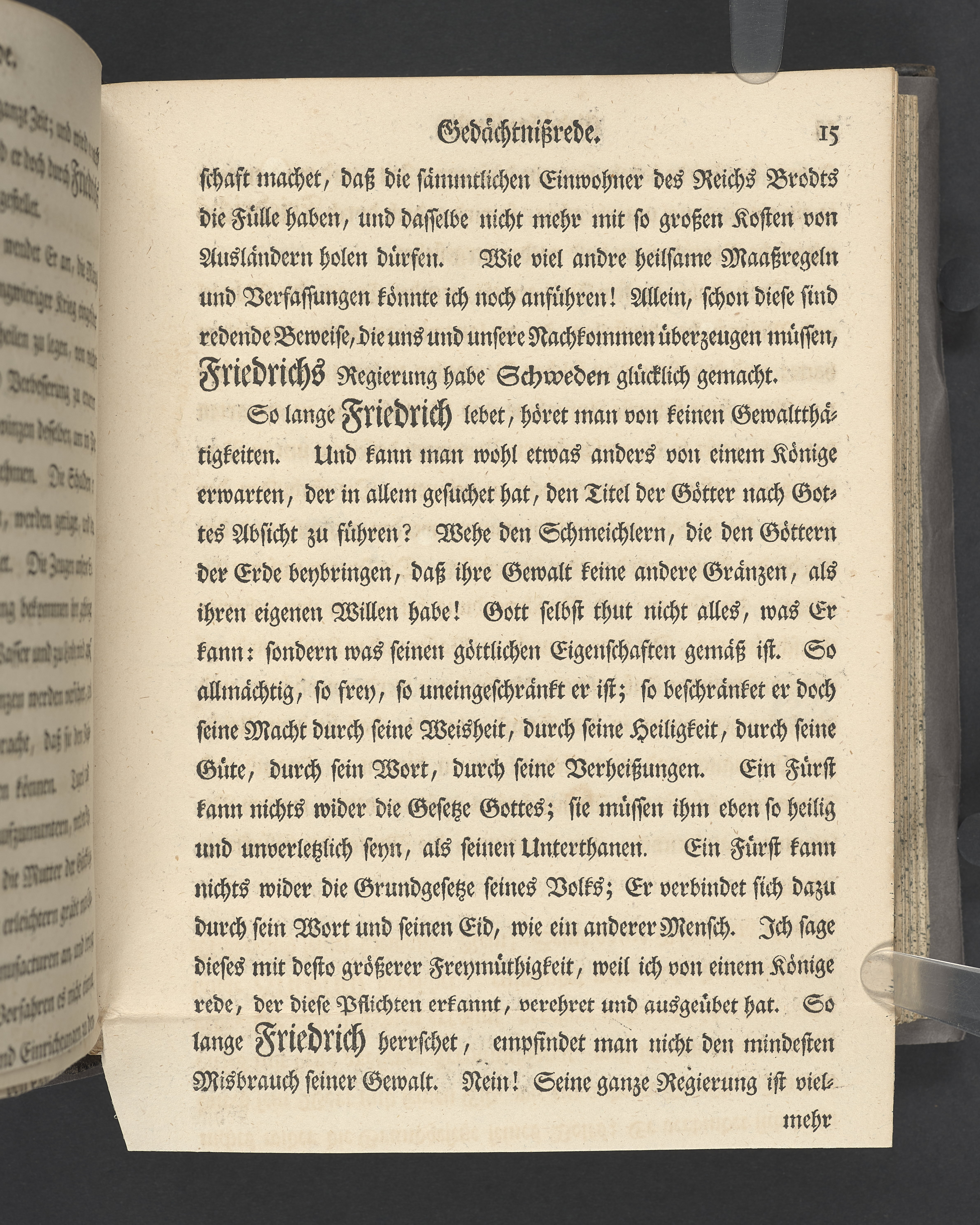 Samtliga blad har i nederkant vikts för att passa formatet i bandet. Snitt stänkta i rött och blått.