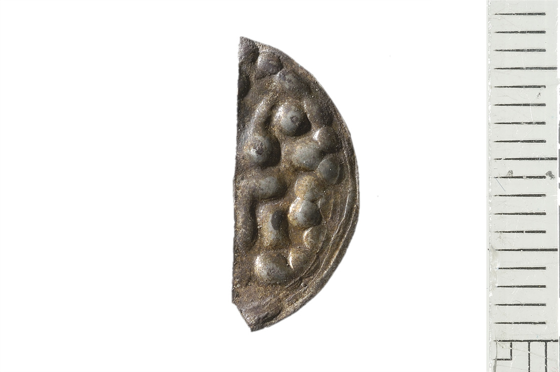 Fragment, 1/ 2 mynt. Krönt huvud, degenererad