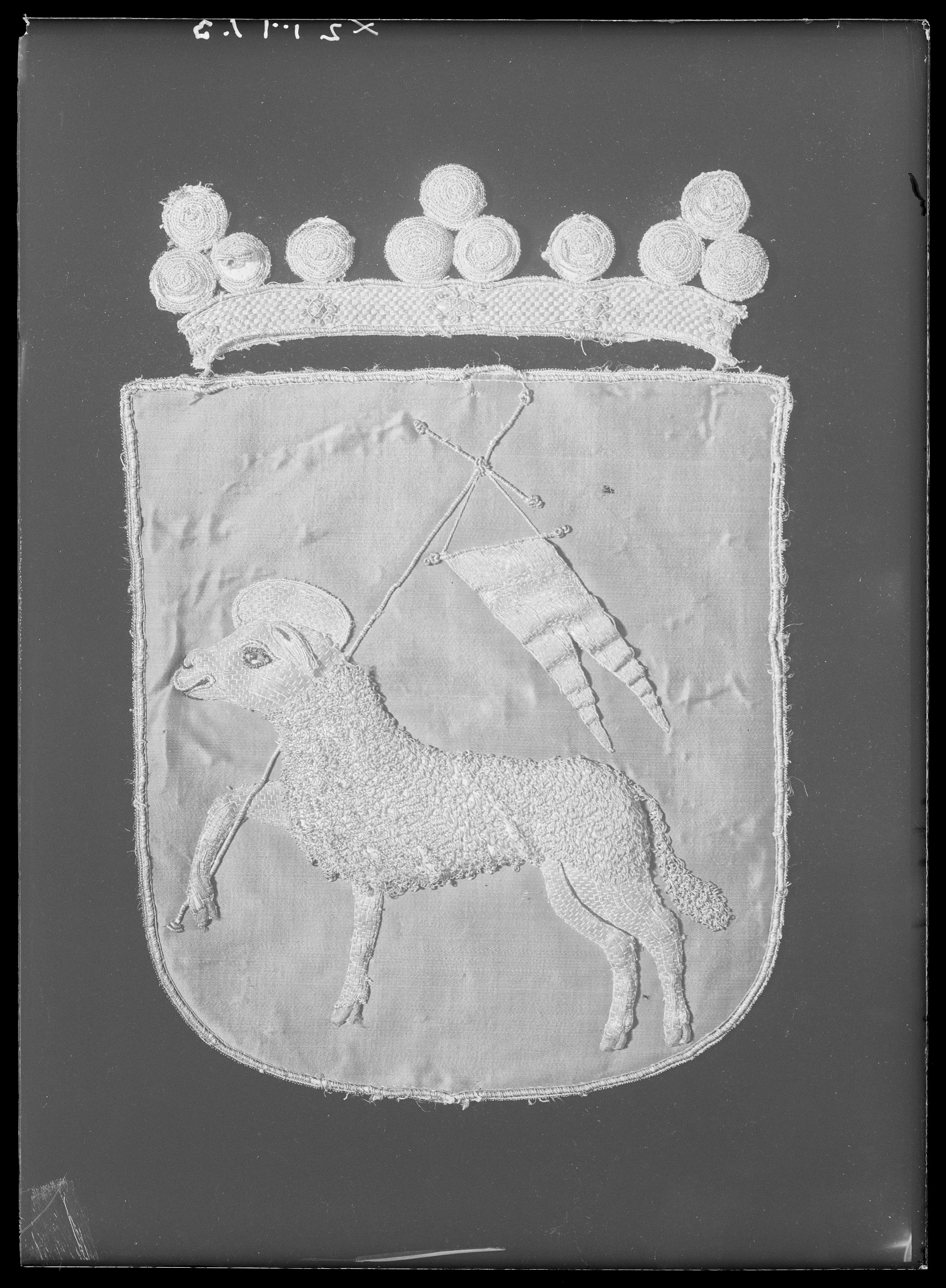 Gotlands vapen, broderat för hästtäcke buret vid Karl X Gustavs begravning den 4 november 1660.