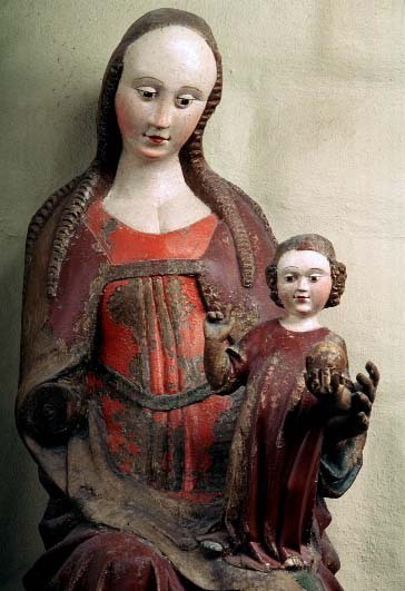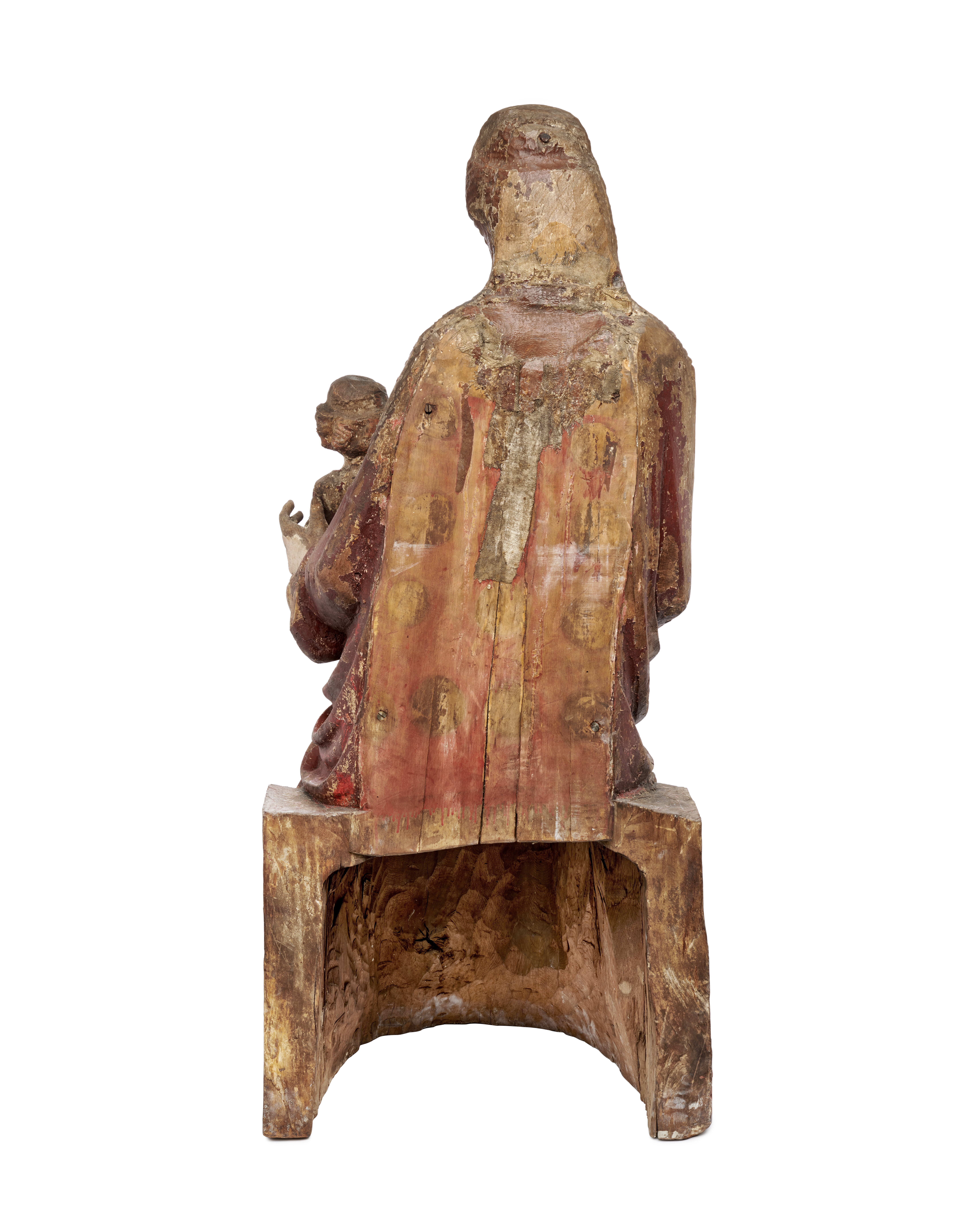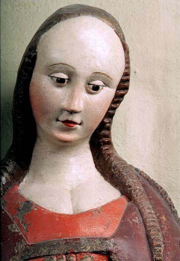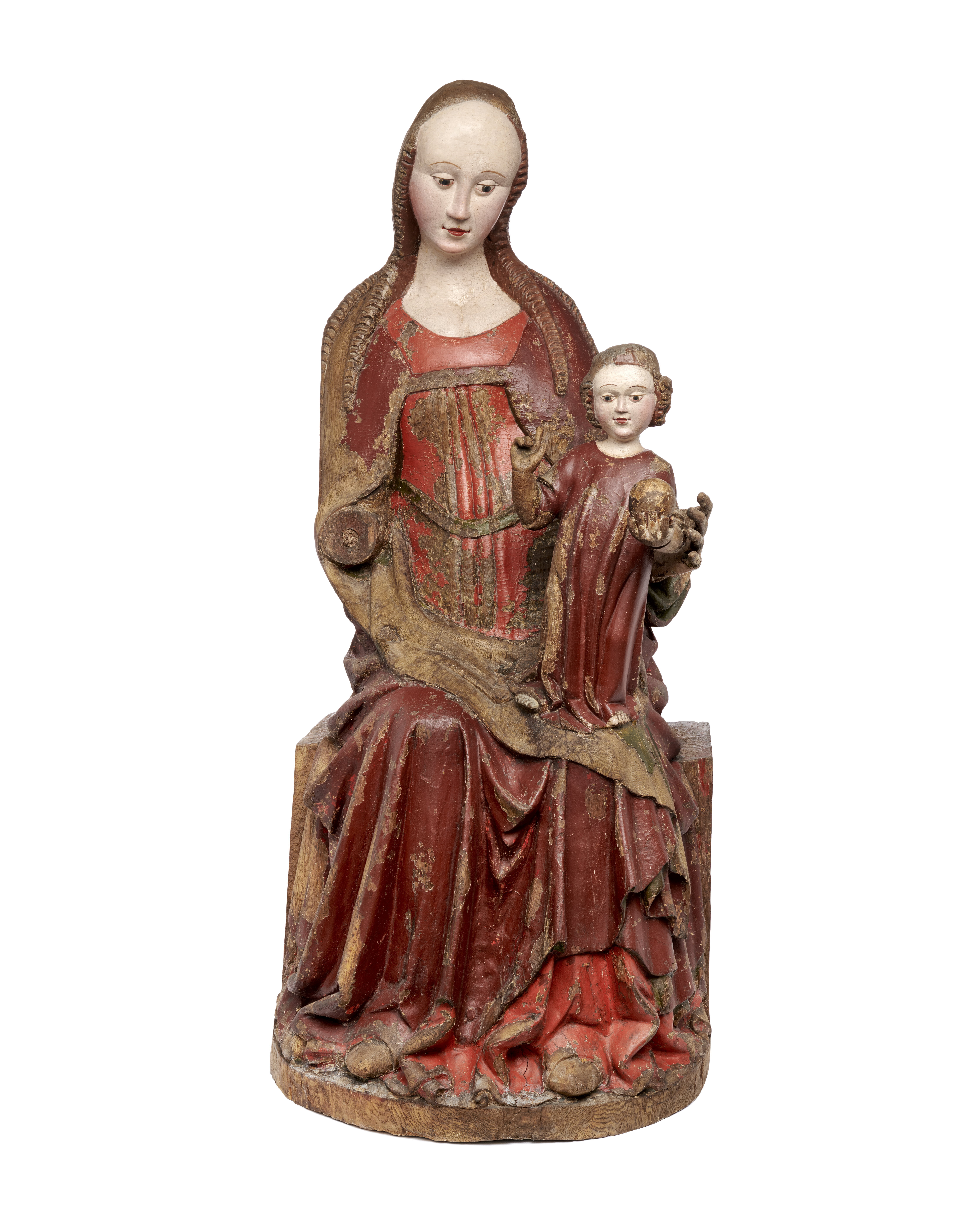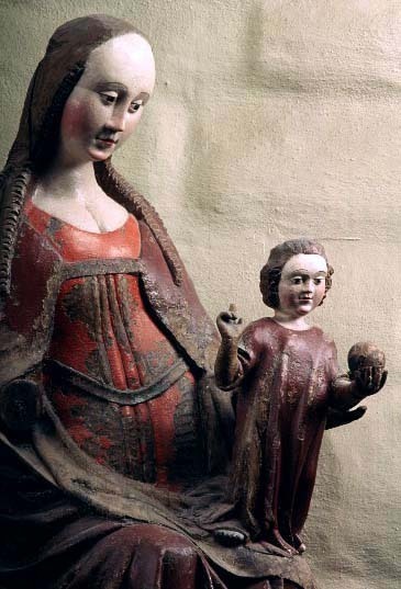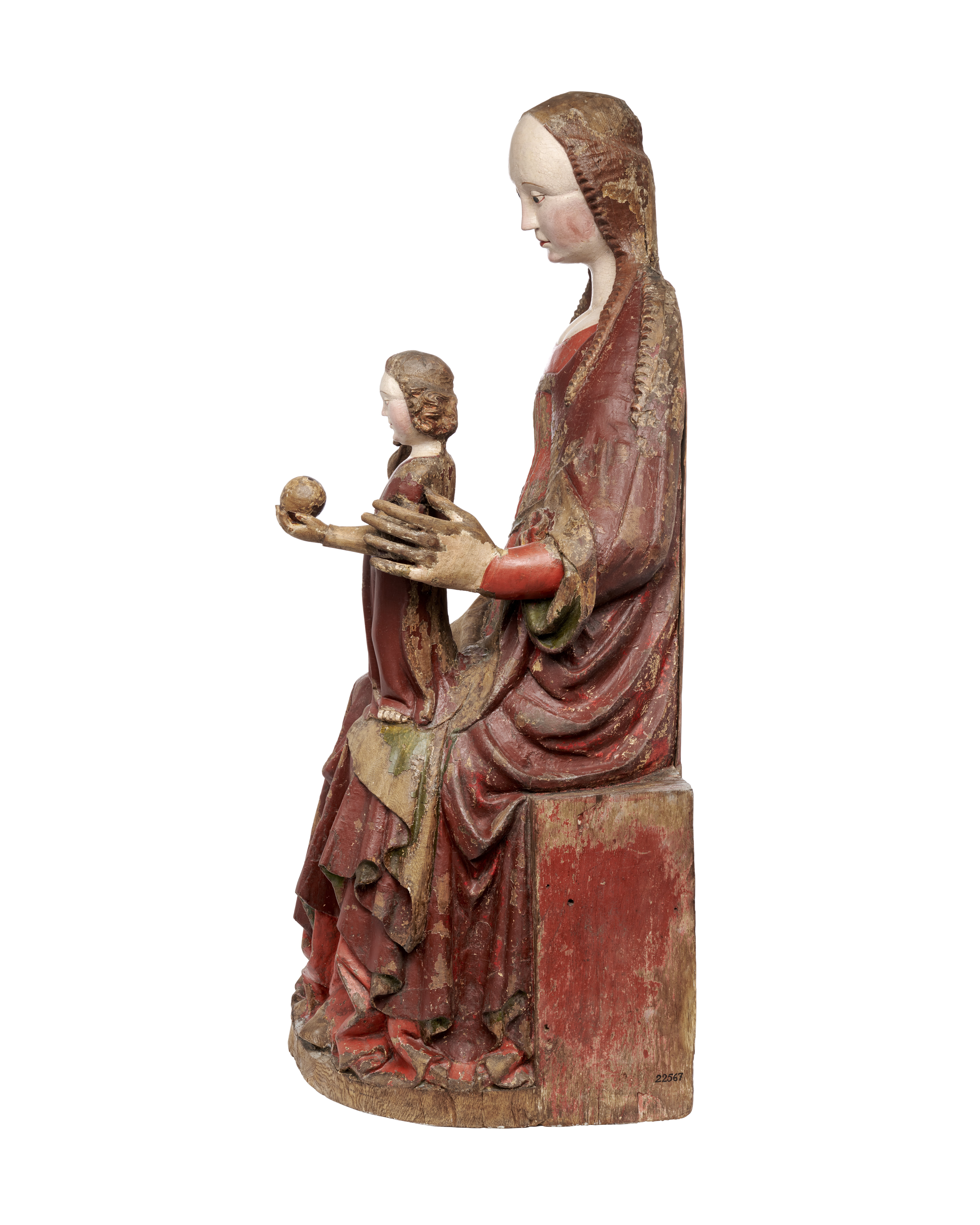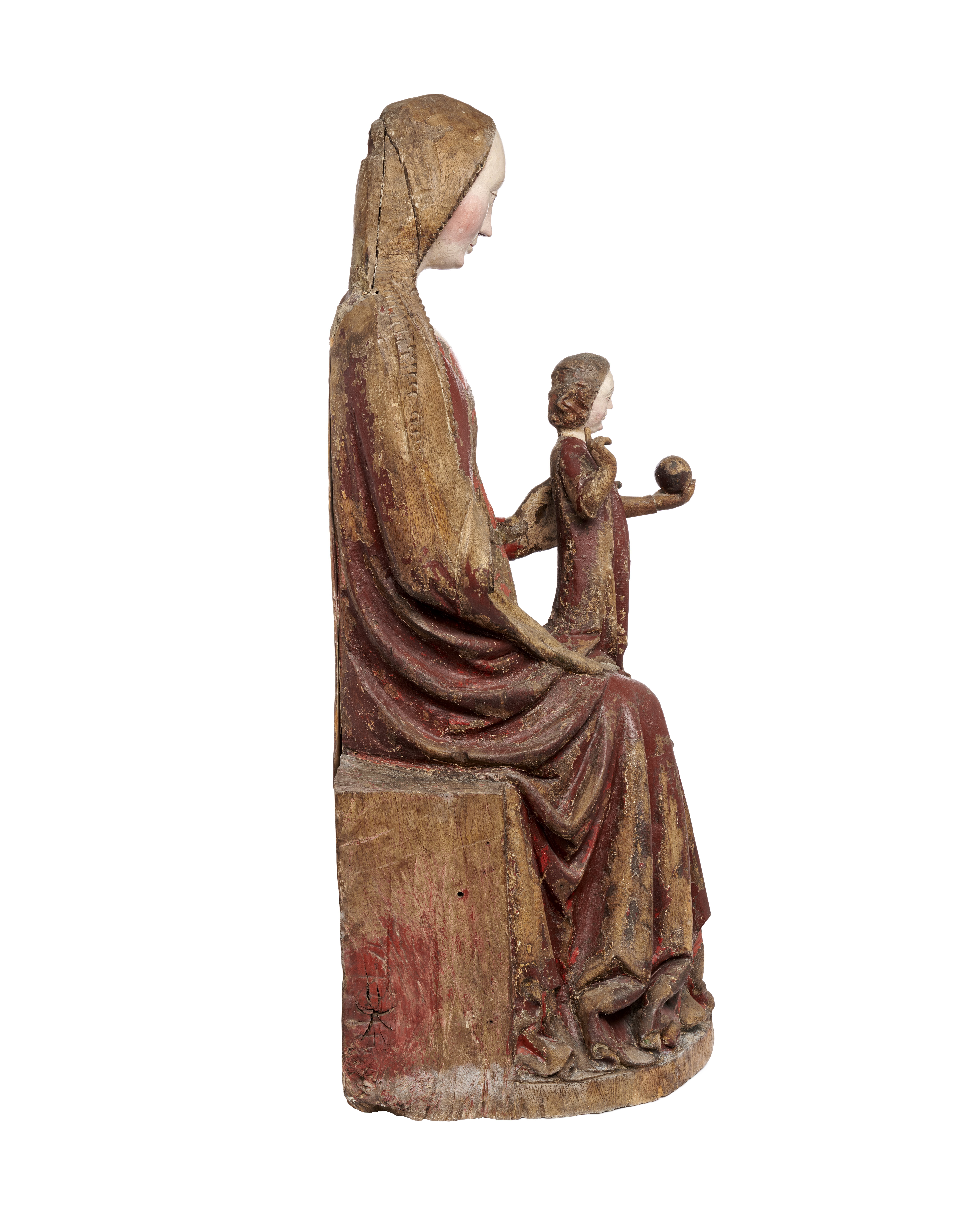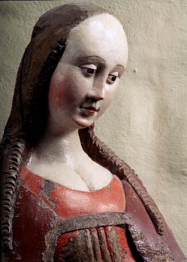 Kondition: god, Marias högra hand förlorad. Färg: betydande partier välbevarade.
