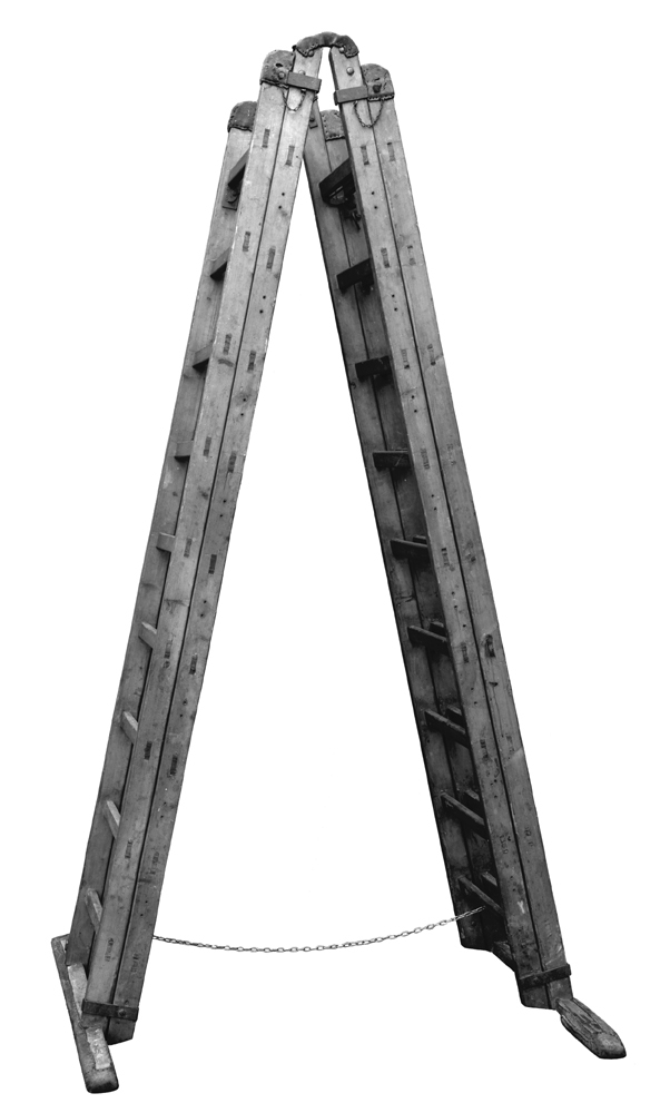STEGAR (skjut-), fyra stycken. Av furu. Dubbla i två avdelningar, vardera med smala sidostycken och platta stegpinnar, inre avdelningen skjutbar. Nedtill på vardera sidan på yttre avdelningen ett tvärgående långt fotstycke. Två stycken längd, hopskjutna: 2,8 m, bredd: 0,47 m. Två stycken längd, hopskjutna: 2,32 m, bredd: 0,46 m. Förfärdigade efter beställning av Wilhelmina von Hallwyl juni 1900 hos snickare C.H. Benckert J:r, Stockholm.