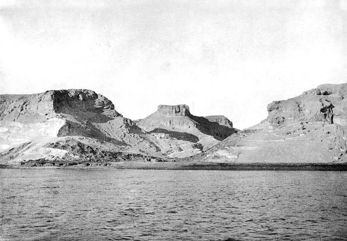 Gebel Abu Foda (Gebel Abu Fêda), Egypten. Dêr-el-Kosêr. Text på fotografiet: Gebel Abu Fêda. Dêr-el-Kosêr. Fotografierna LXVI:M.01.- 201. kommer från resan till Egypten och Sudan som Wilhelmina och Walther von Hallwyl gjorde vintern 1900-1901. De lämnade Sverige den 5 november 1900 och fortsatte från Egypten till Palestina den 28 mars 1901. Med på resan var döttrarna Ellen med maken Henric de Maré och Irma med maken Wilhelm von Geijer. Wilhelminas sällskapsdam, fröken Ida Uhse reste också med. Under en del av resan anslöt sig ledamoten av Internationella domstolen i Kairo, assessorn Otto Conrad Waldemar Cedercrantz med makan Anna Elisabeth. Vid resan uppför Nilen hade Walther von Hallwyl hyrt ångfartyget Columbia med besättning. Båtresan startade i Kairo 27 december 1900, gick ända till Wadi Halfa varifrån man reste vidare med tåg till Khartum och tillbaka till Wadi Halfa. Båten vände åter i riktning mot Kairo, men det verkar som att sällskapet tog tåg sista biten, från Luxor. Henric och Ellen de Maré samt fru Cedercrantz lämnade båten redan då de passerade Luxor första gången. Resten av sällskapet återvände till Kairo den 1 mars. Fotografierna LXVI:M.01.-120. togs av resenärerna själva, de största av Ellen de Maré, de mellersta av Wilhelmina von Hallwyl och de minsta av Wilhelm von Geijer. Resten köptes av professionella fotografer i Kairo, de flesta från Studio Photogr. Artistique G. Lekegian & Cie. Alla uppgifter kommer från Ida Uhses reseanteckningar.