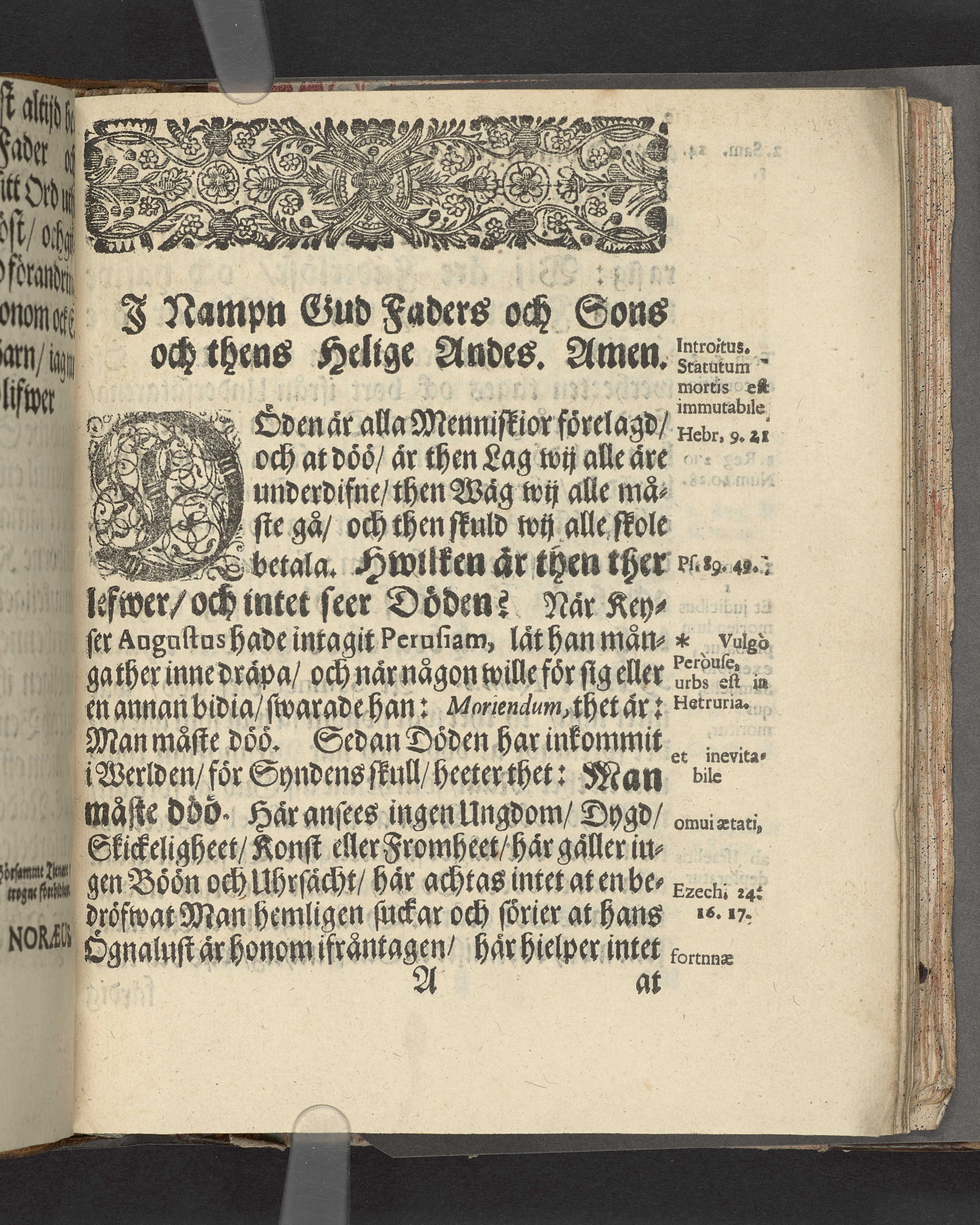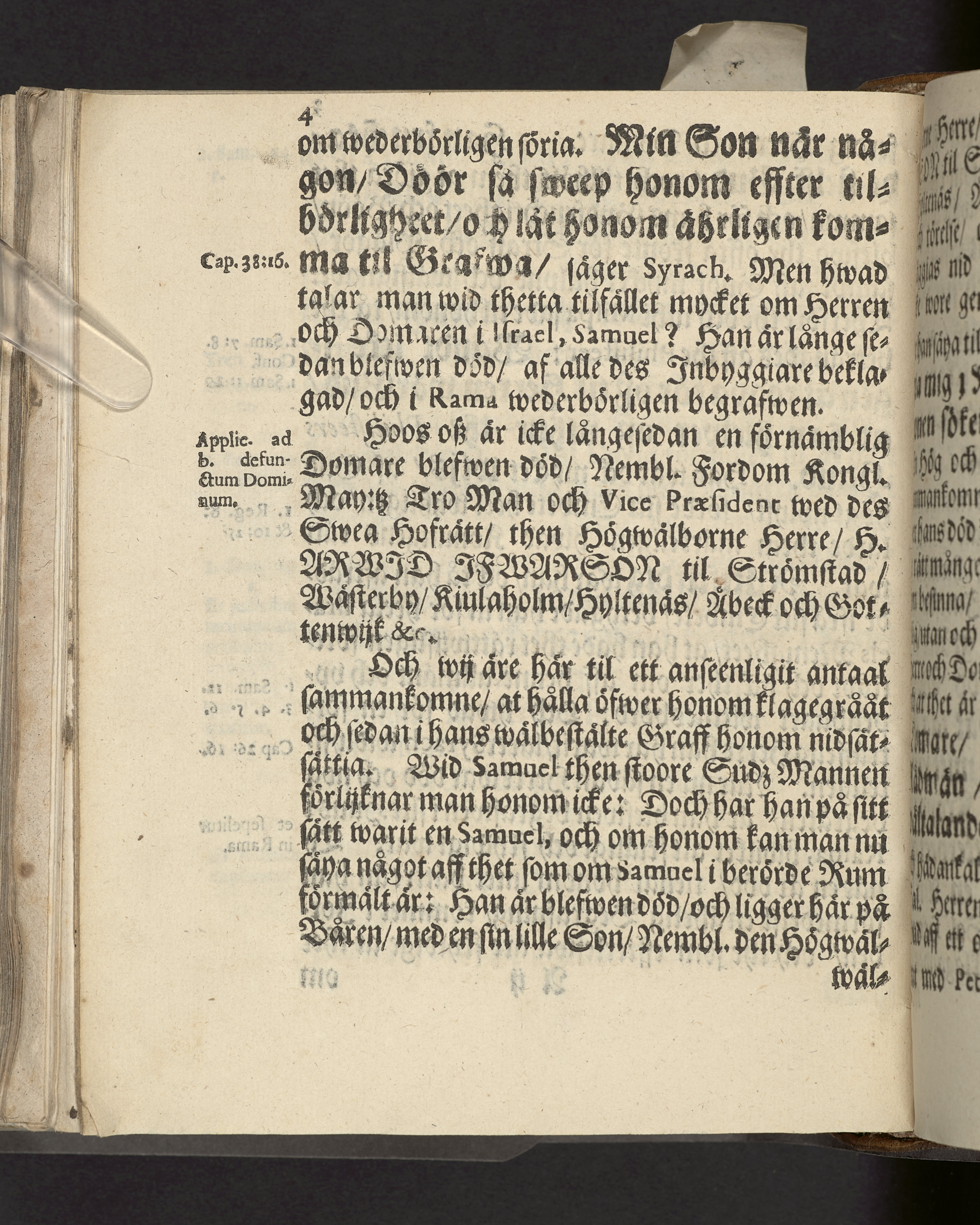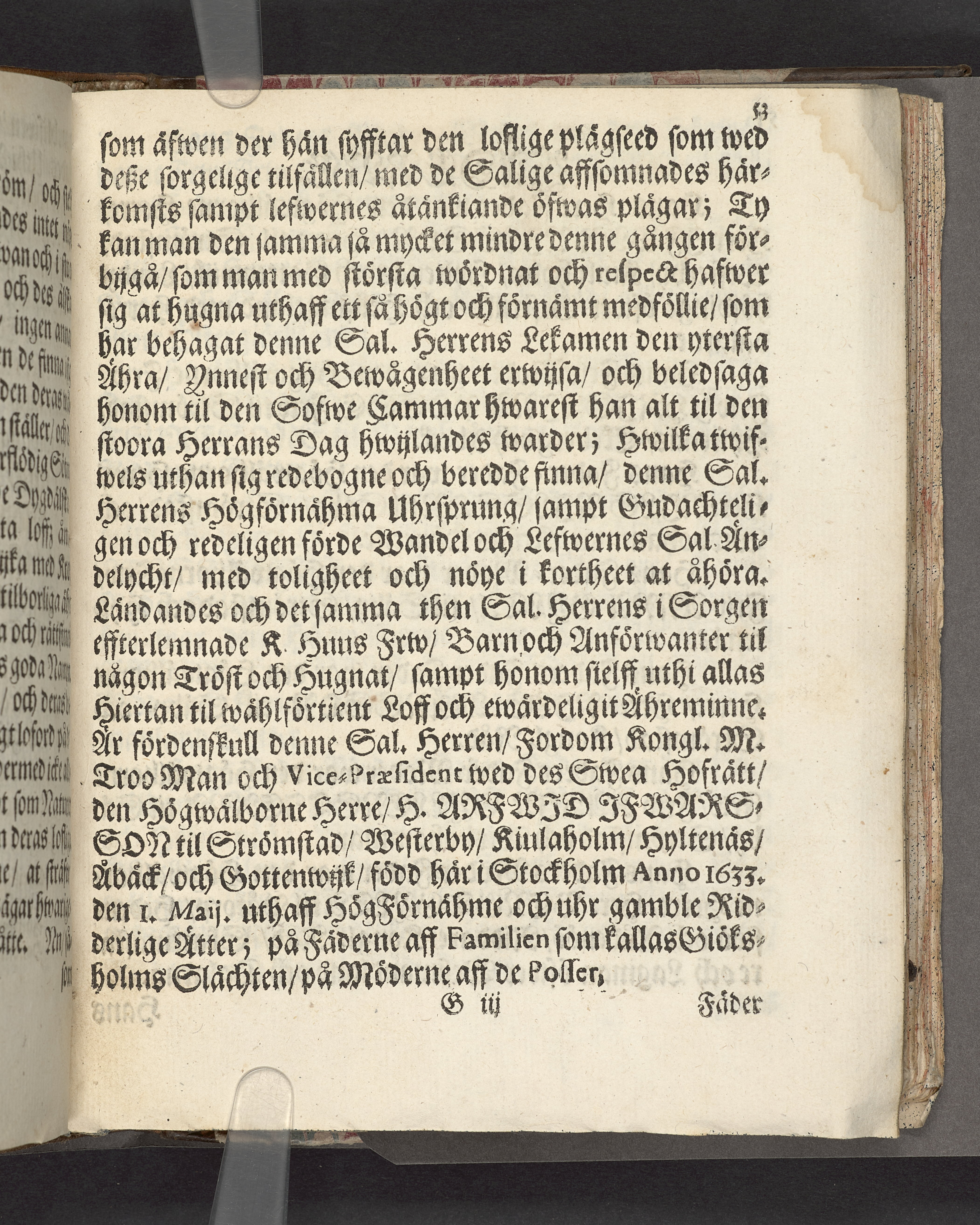 Gudz barns klippa och faste borg, beskrefwen aff Davidz 31. psalm. v. 1. 2. 3. 4. 5. 6. och förestäld uthi en christelig lijkpredikan, som närwarande h. kongl. may:tt rijksens änkie drotning ... sampt annan stoor och förnämblig försambling, med hans kongl. may:tz ... och herres troo-mans och vice præsidentz wid des Swea hof-rätt ... Arfwid Ifwarssons, herres til Strömstad ... sampt hans kiärälskelige sons ... Axel Arfwidssons ... nu begge hoos Gud saligas, christelige och höganseenlige jordefärd, uthi St. Jacobs kyrkia i Stockholm, den 10. Junij 1684. Bleff hållen aff Erico Noræo ...