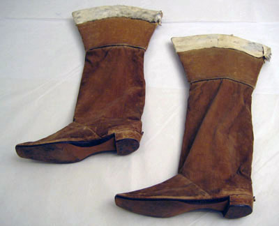 Kragstövel sydd i gulockra sammet. Kragstöveln har högt skaft med utsvängd krage som är 190 mm hög och 630 mm i omkrets. Stövelns totala längd är 530 mm. Modellen är skuren i reseft. Kragen är troligen stärkt med papp och stövelkragen var ursprungligen hermelinsbesatt. Skaftet är rakt och sytt i ett stycke med söm bak. Klacken är 23 mm hög, 50 mm i bredd samt 55 mm djup och beklädd med rött siden. Stiftlappen är tre mm tjock och på limmad. Klackens form skrånar lätt inåt. På hälen är en stopp för sporren Sulan är av koläder och är skuren i en lätt insvängd from under svanken. Tån är rak skuren. Stöveln är fodret med vit silkesatlas i kragen och skaftet Invändigt vid kragen är ett dubbelvikt sidenband, 160 mm långt och 50 mm brett.