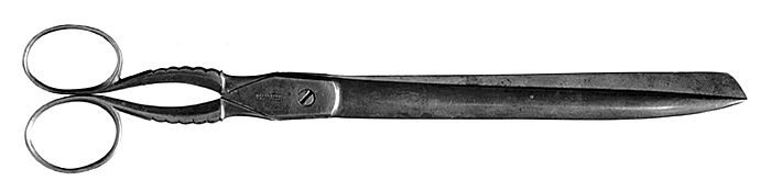 Blad långa, det ena med spetsig, det andra med tvärsneddad udd, båda med flackrundad utsida. Skänklar korta, sexsidiga, svagt böjda, avsmalnande utåt, på yttre sidan fem tvärgående stavar. Fingeröglor ovala, svagt flackstaviga. Tillhört inventarierna på Wilh. H. Kempes kontor, inrymt i Schinkelska huset, dåvarande adress Kornhamnstorg 2 (f. d. Lilla Nygatan 29, nuvarande Kornhamnstorg 4), Stockholm, 1843 -1883; därefter på firman Wilh. H. Kempes (innehavare Walther von Hallwyl och Johanna Kempe, f. Wallis) kontor, Blasieholmstorg II, 1884 - 30 September 1896, och Hamngatan 4, 1 Oktober 1896 - 1909; sedermera på Walther von Hallwyls privata kontor 1909 - 1921 samt slutligen på Wilhelmina von Hallwyls f. Kempe, kontor där från sistnämnda år t. o. m. 1930.