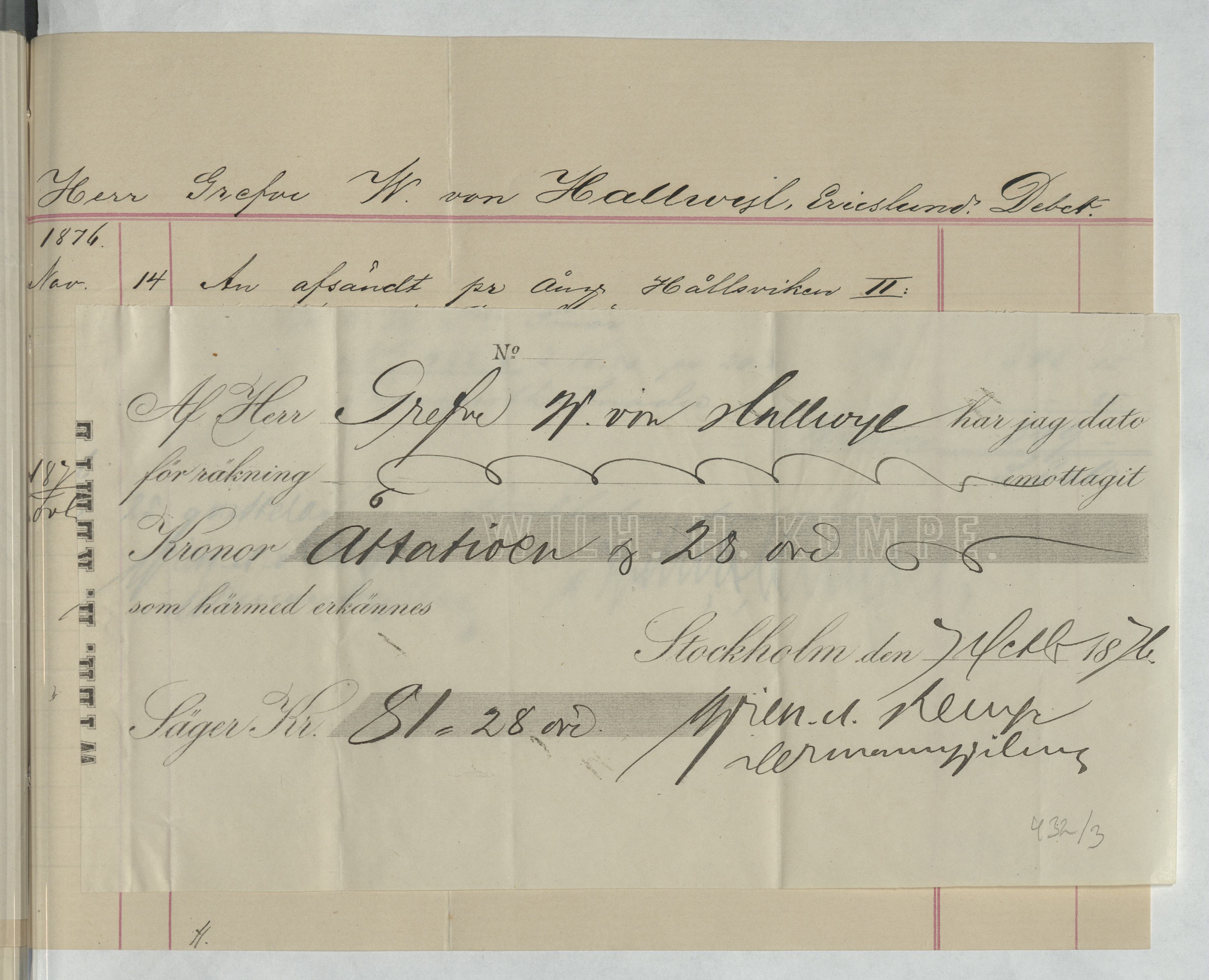 Kvitto från Firman Wilh. H. Kempe