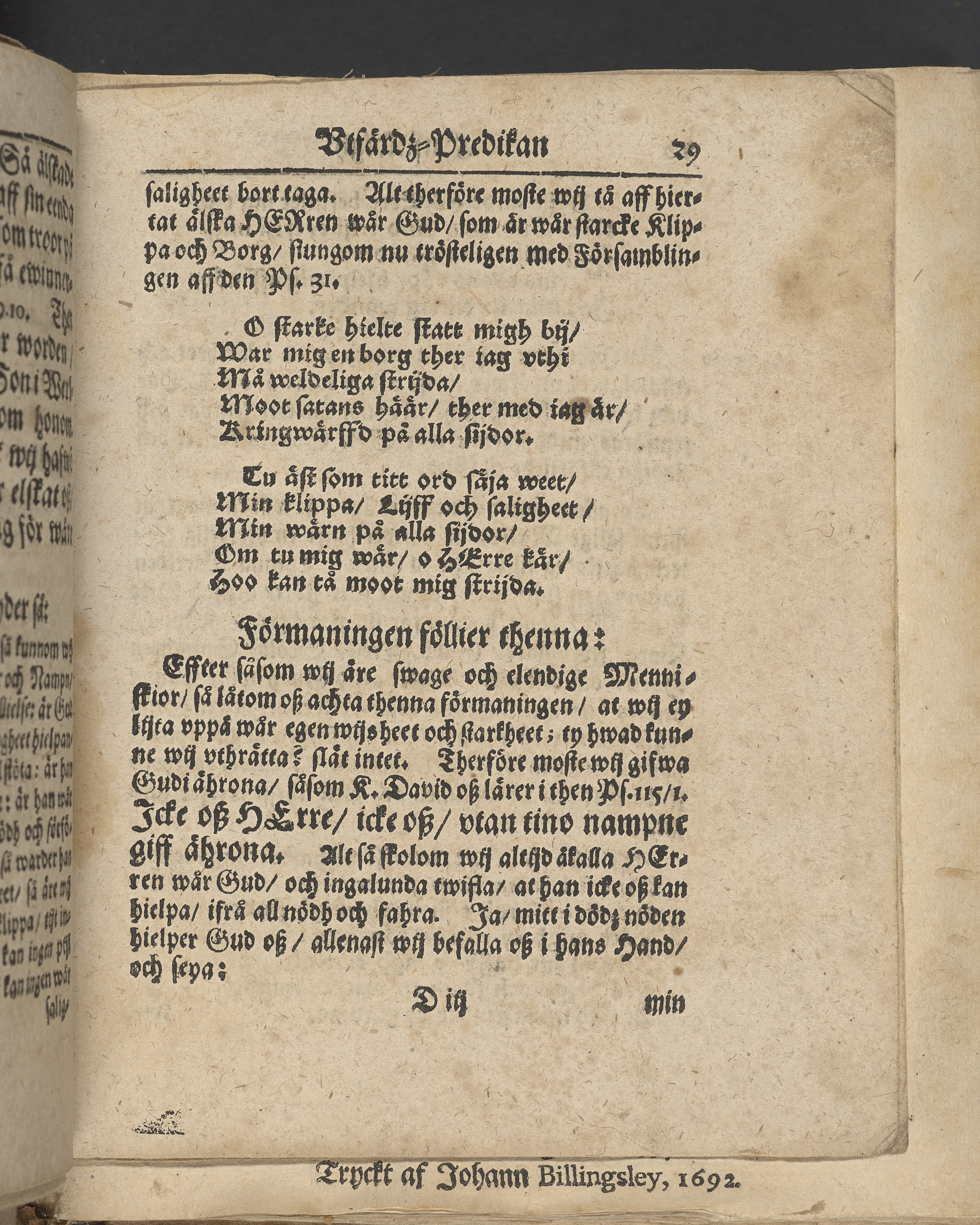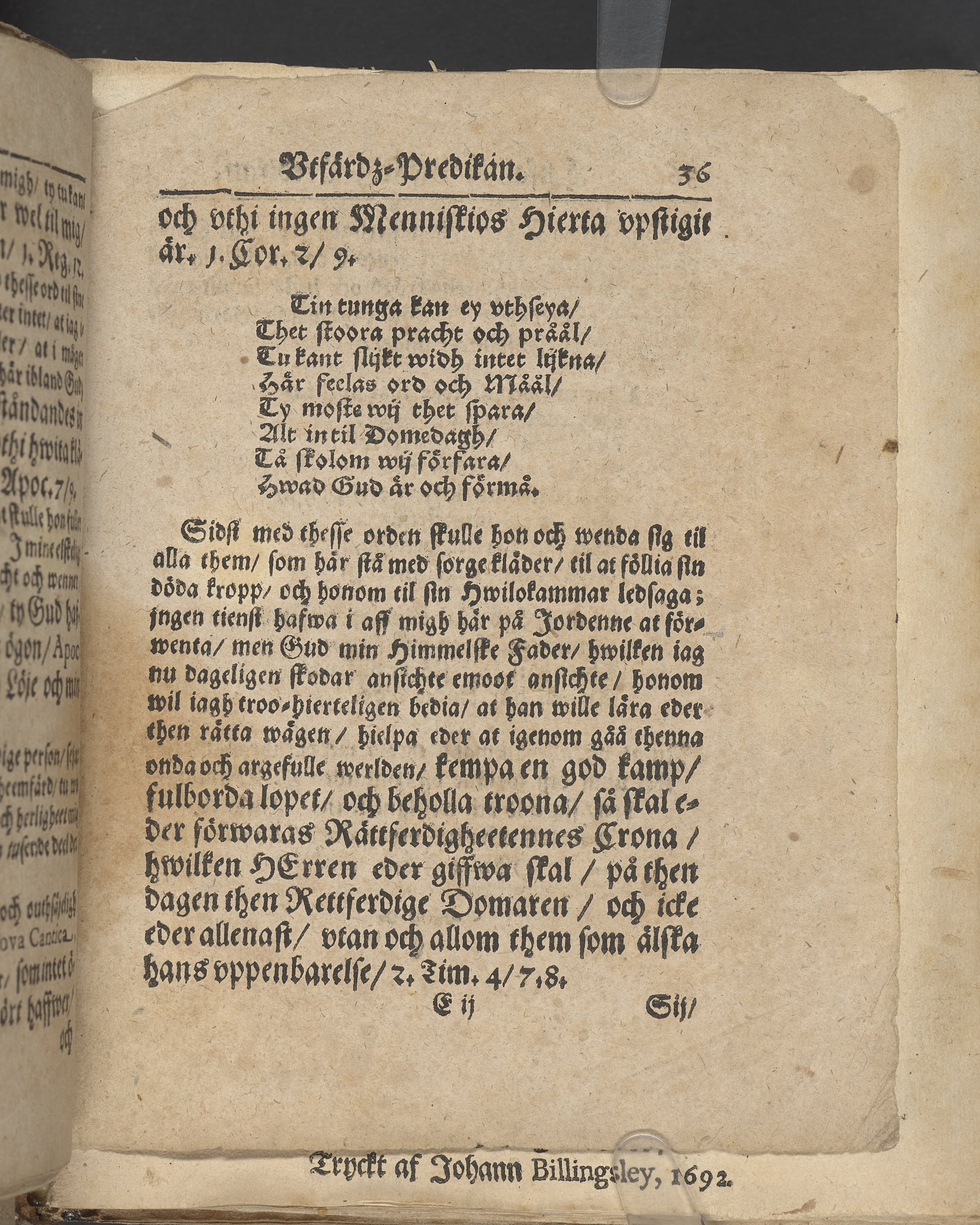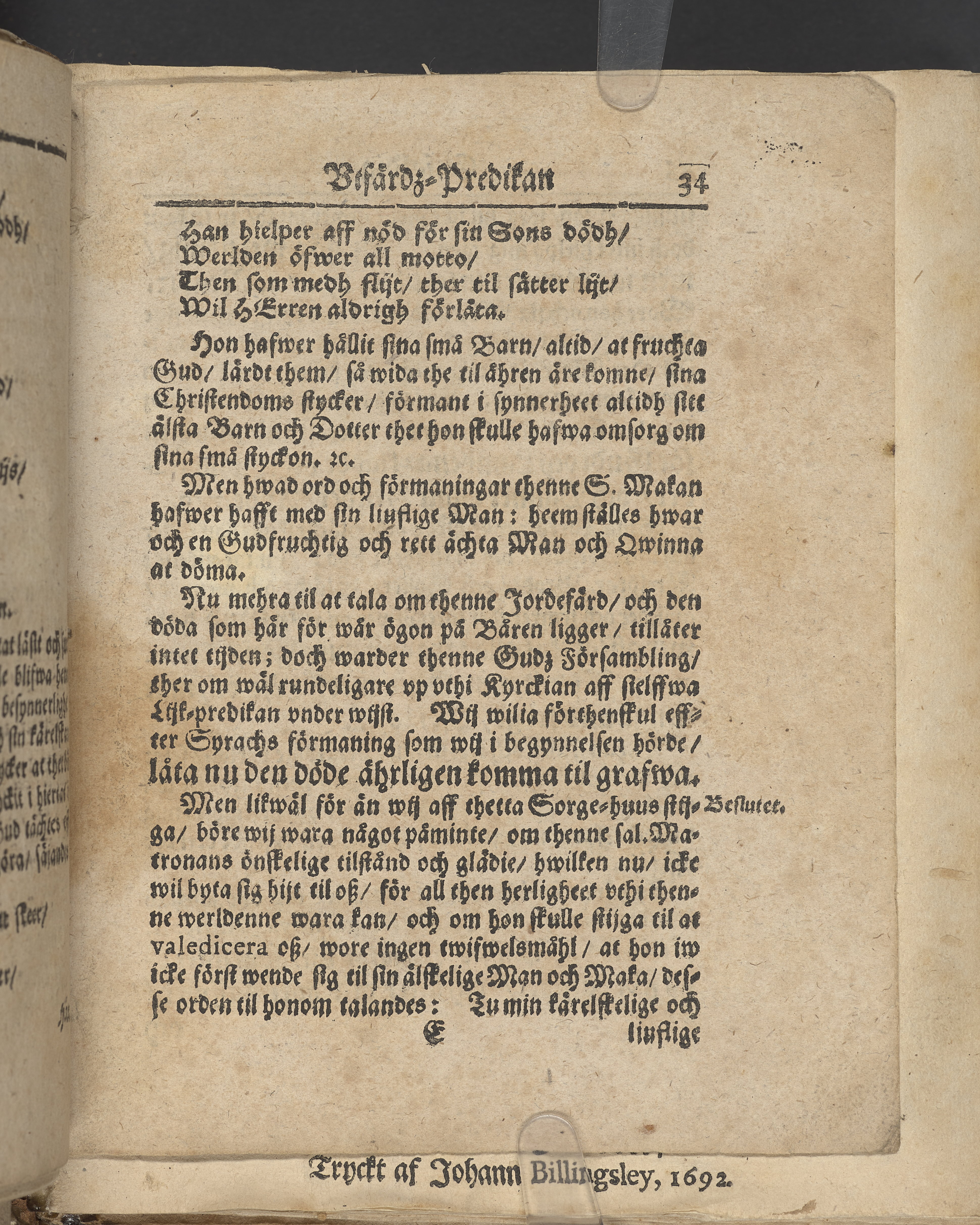 En enfaldig uthfärdz predikan öffwer ... Hust. Christina Jons Dotter ... Her. Anthonii Parmentz ... borgares och handelsmans i Köping ... maka ... vthi Köpingz kyrckio den 24. febr. anno 1670: Sammandragen ... aff Olavo Schwercheri Kilandro ... Wästeråhs, tryckt hoos Boëthium Hagen ... 1671.