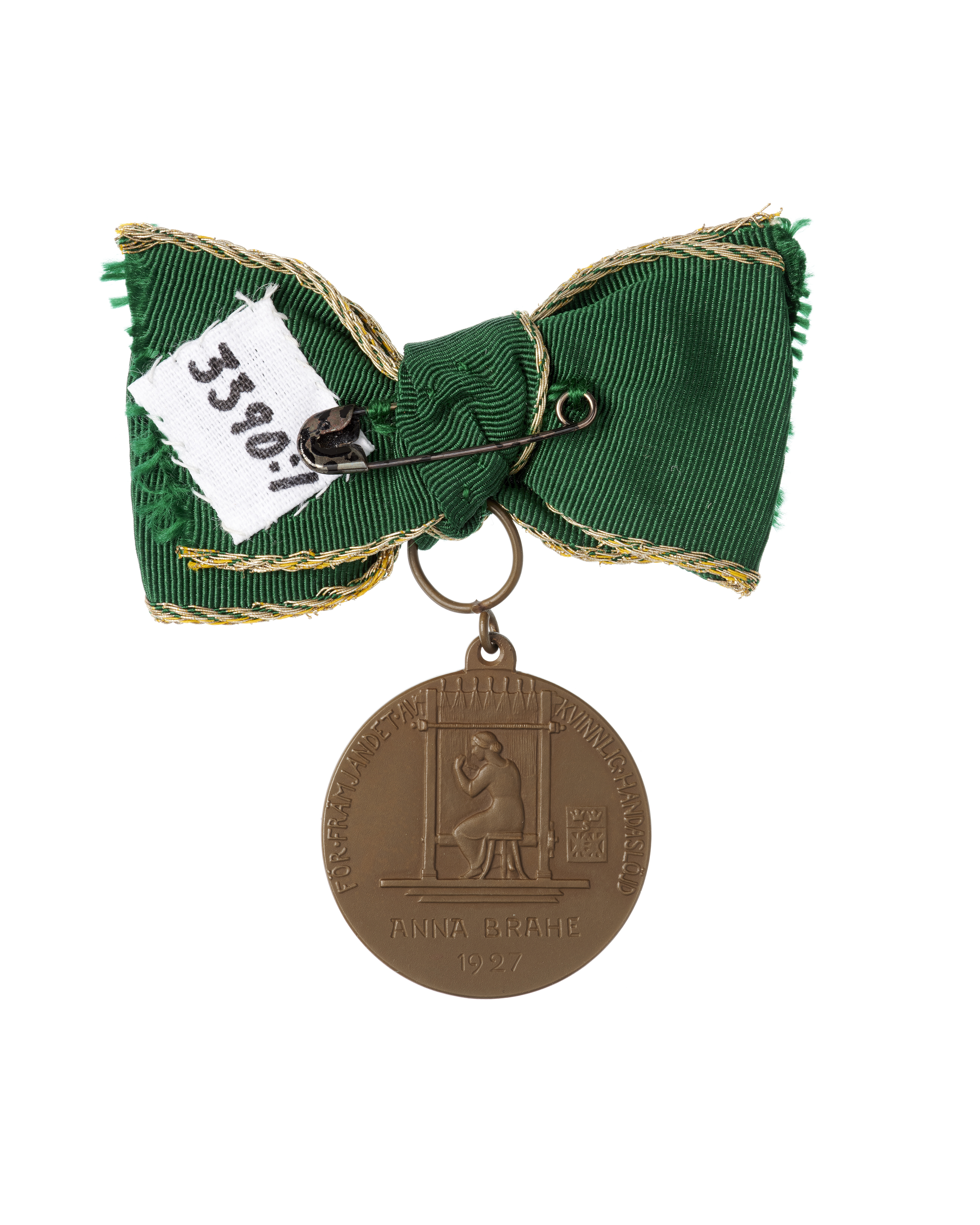 Medalj given Anna Brahe av Föreningen Handarbetets Vänner 1927, "för främjandet av kvinnlig handaslöjd".