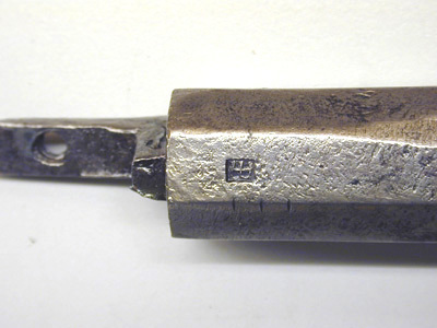 Rund, slätborrad pipa med kantig kammare, fasade kanter framtill, vid övergången till runda delen en filad ring, undersidan endast grovfilad. Rakt, baktill tvärt avskuret svansskruvblad. På pipans undersida en kvadratisk, otydlig stämpel liknande ligatur A med rundade översidor. Fästning: Två häften. Pipan fäst med krysskruv underifrån samt ett ej ursprungligt pipstift av trä. Hjullås av västeuropeisk typ med välvt låsbleck, liten, försänkt bakspets. Utvändigt hjul, ursprungligen fäst med studel kl. 6 (saknas). Framför hjulet AA-stämpeln. Fängpanna med låg krutskärm, rundad ytterkant. Fängpannelock med rörlig arm, ingen tryckknapp. Hanen saknas. Hanfjäder med rundade ytterkanter, eldstålsliknande studel med snedfasning mellan skruvhålen. Fästning: Två (urspr.tre) låsskruv. Avtryckaren saknas. Kraftigt skadad helstock av mörkt brunbetsat trä. Beslag av stål, kolvkappa med långa flikar, filad kantlist med skålning, oval centrumplatta i tre avsatser, fästning med skruv mitt i centrumplattan. Bandformigt näsband vikt om framstocken ca 17 mm från mynningen.
