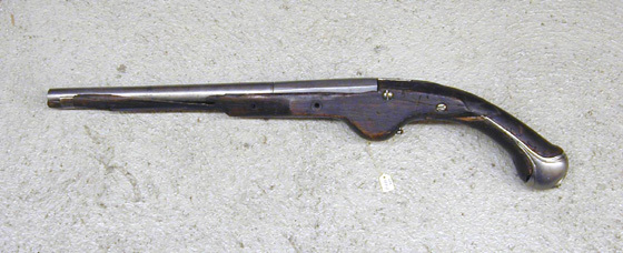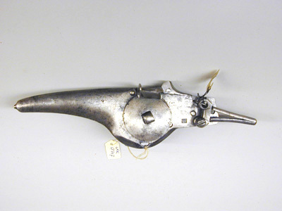 Hjullåspistol, 1600-talets slut, påminnande om pistol m:1685, enl. uppgift i inv.1867 begagnad av Karl XII:s drabanter.