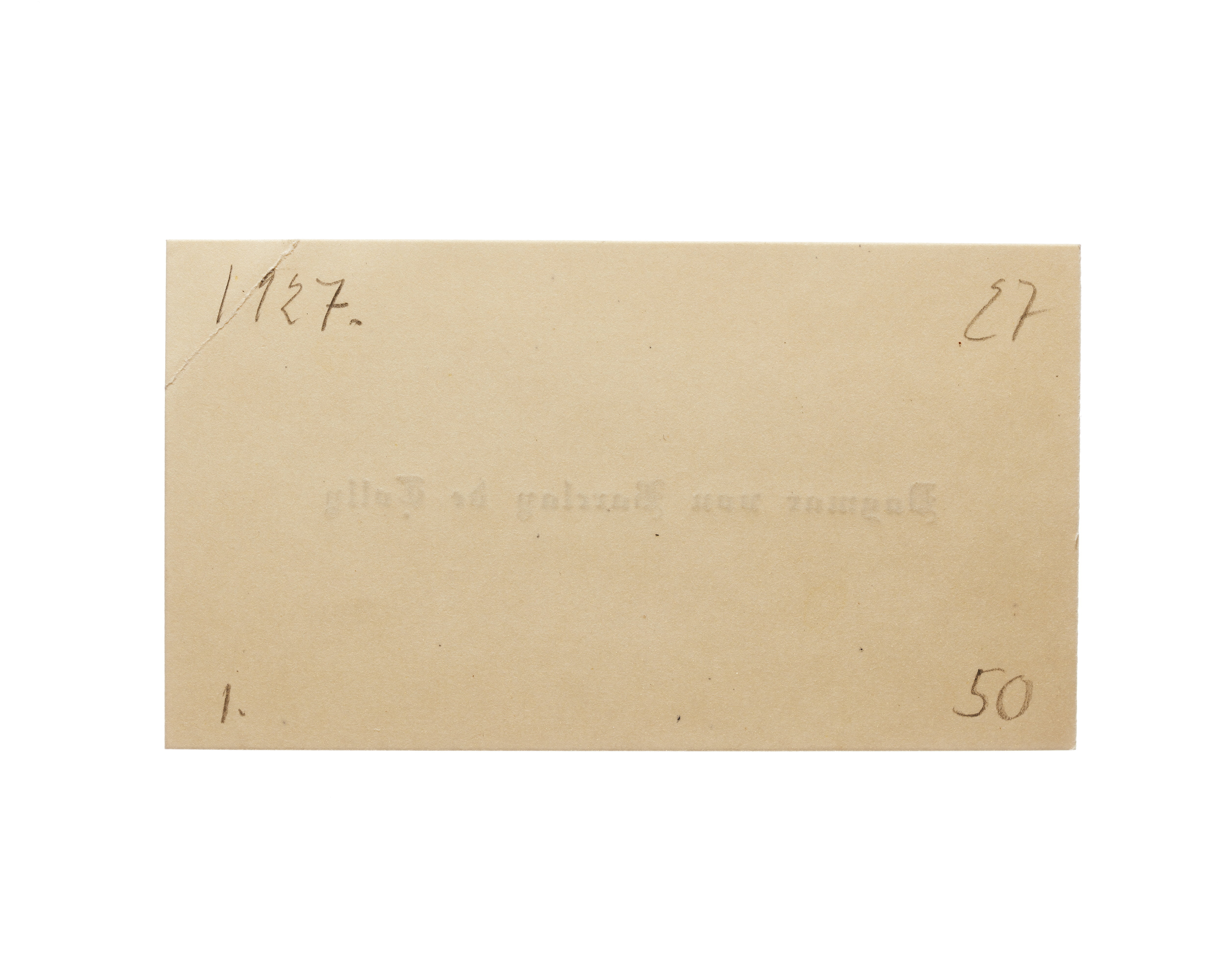 Ett visitkort från Dagmar von Barclay de Tolly, daterat 1927, vikt i övre högra hörnet.