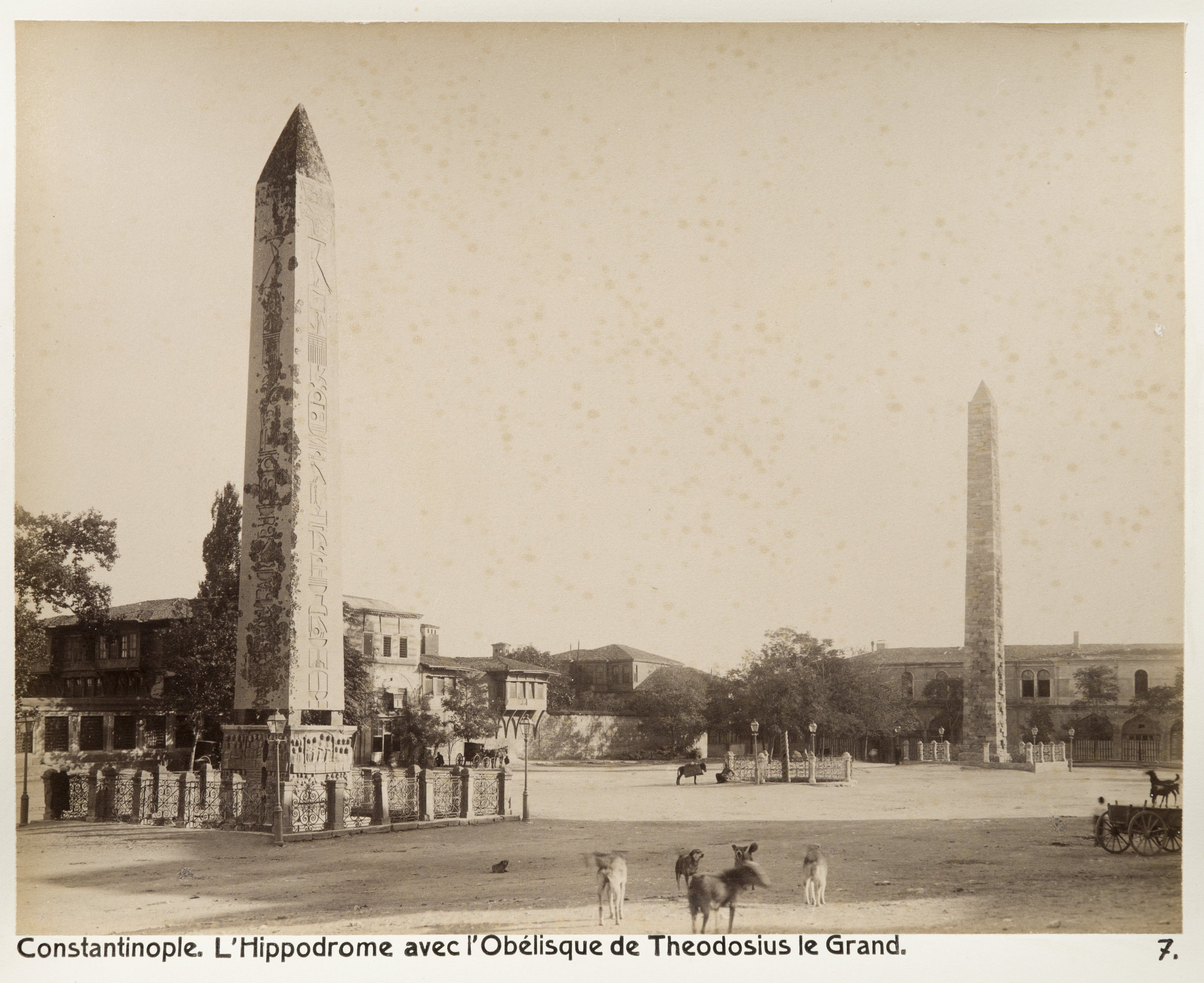 Hippodromen med Theodosius obelisk, Konstantinopel. Text på originalet: "Constantinople. L´Hippodrome avec l'Obélisque de Theodosius le Grand." Fotografierna LXVI:O.01.-54. kommer från resan till Turkiet och Mindre Asien som Wilhelmina och Walther von Hallwyl gjorde den 27 april - 20 juni 1901. De lämnade Sverige den 5 november 1900 för Egypten, där de stannade till den 28 mars 1901, då de fortsatte till Palestina. Den 27 april fortsatte de till Turkiet och Mindre Asien. Med på resan var Wilhelminas sällskapsdam, fröken Ida Uhse. I Konstantinopel (Istanbul) anslöt sig Wilhelminas mor Johanna Kempe och kusindottern Elma Hök. Fotografierna är inköpta av Wilhelmina i Konstantinopel (Istanbul) och Brussa. Alla uppgifter kommer från Ida Uhses reseanteckningar.