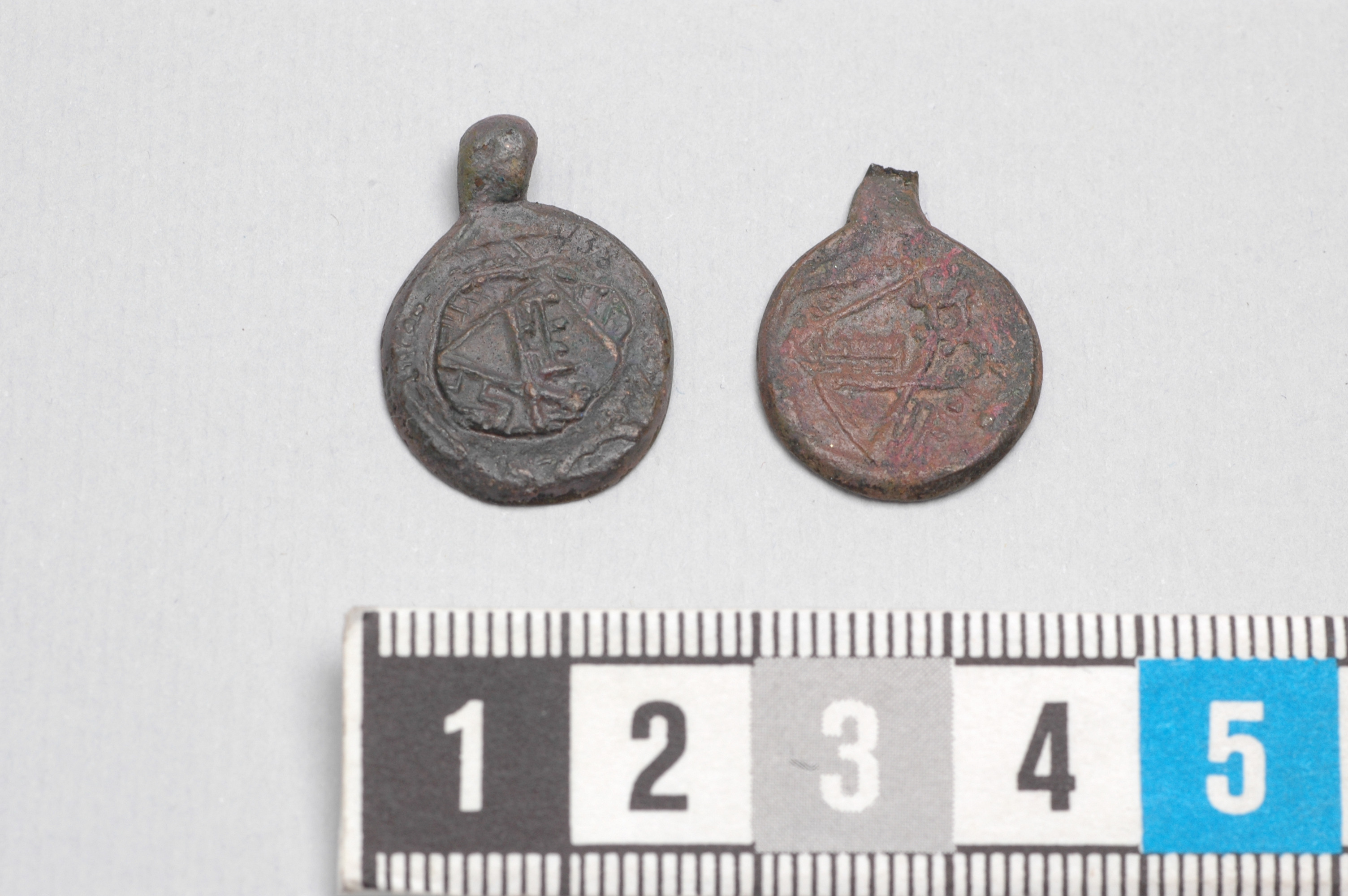 båda sidor försedda med relief föreställande sköld med två korslagda nycklar