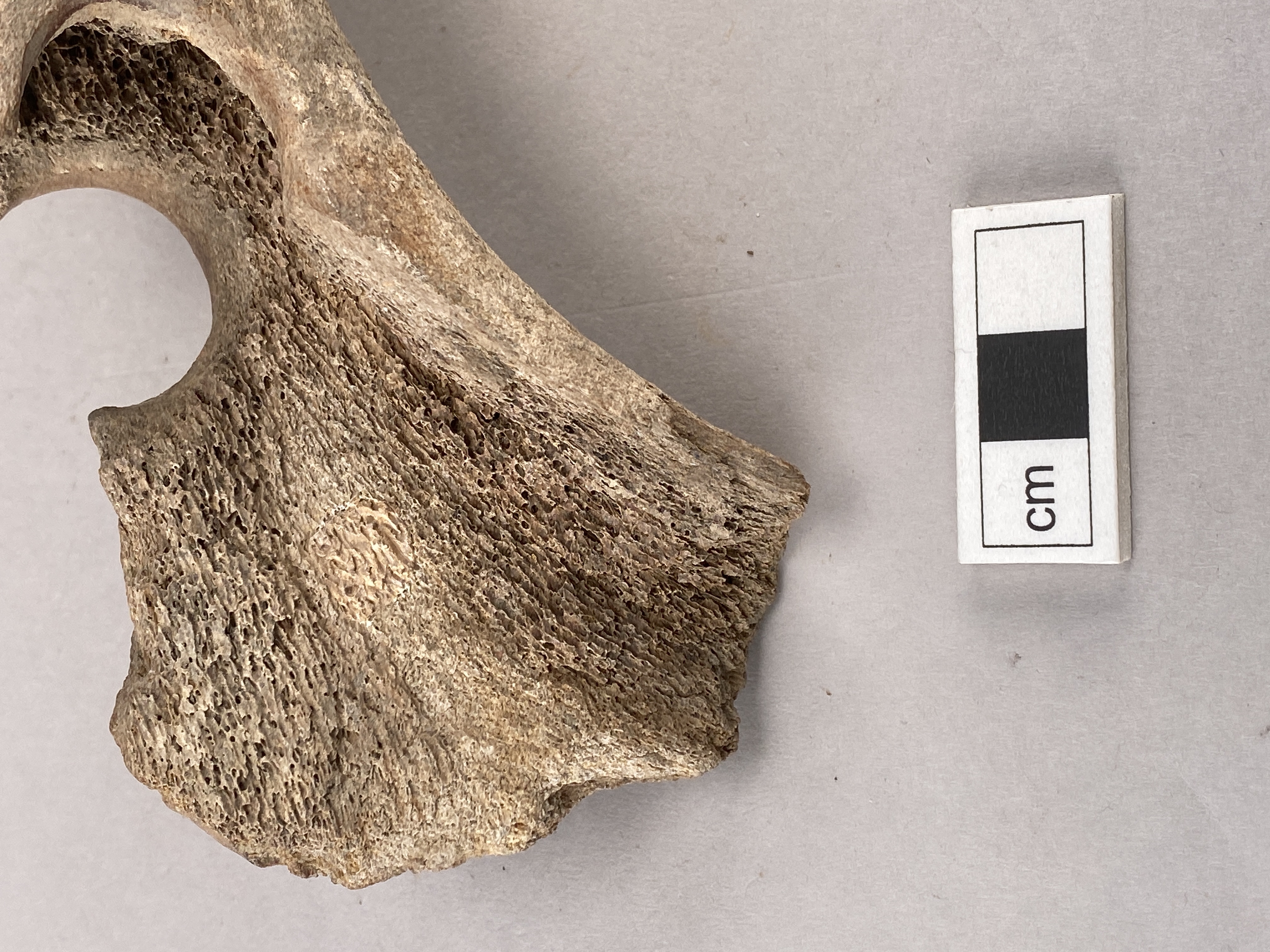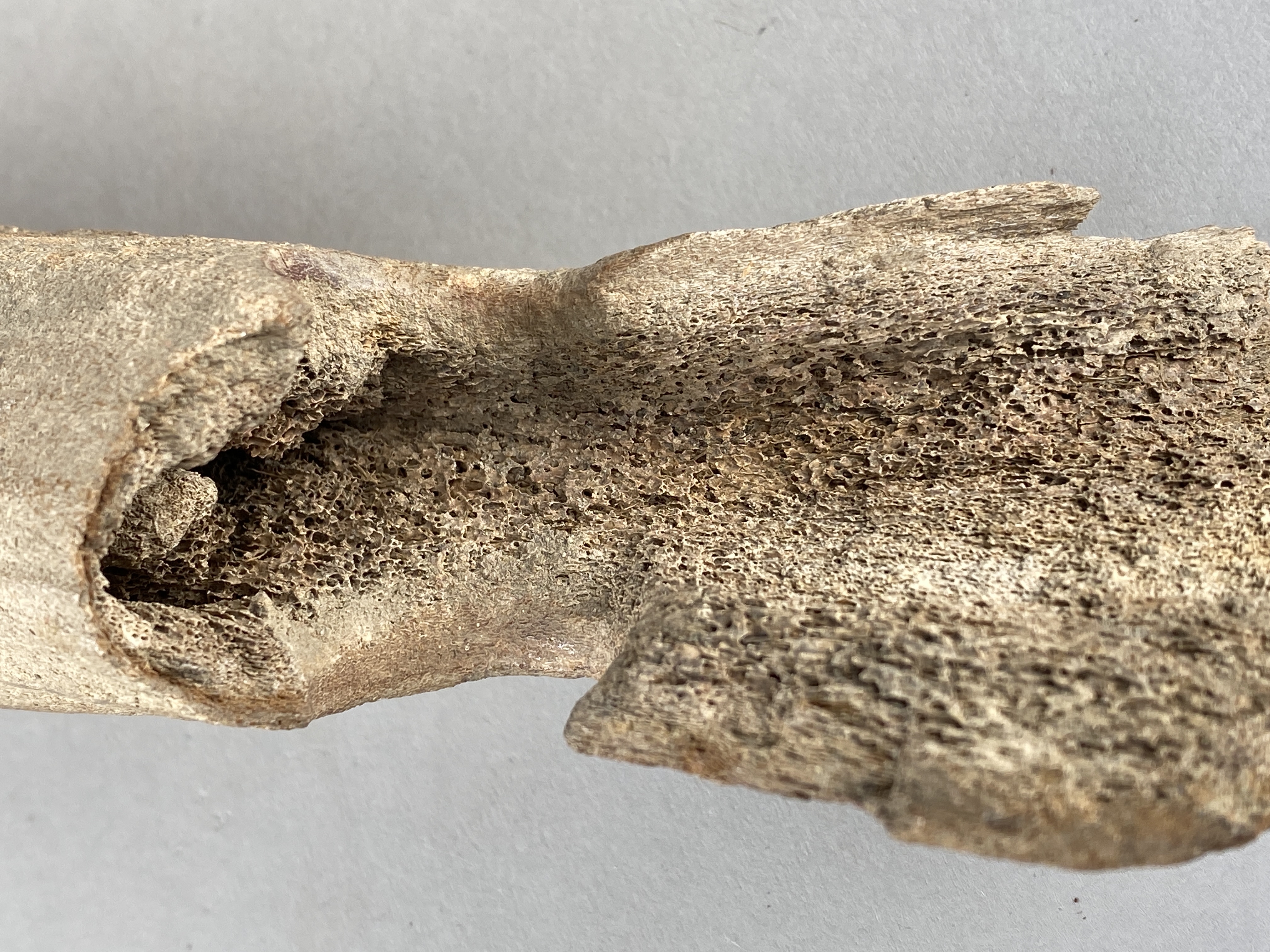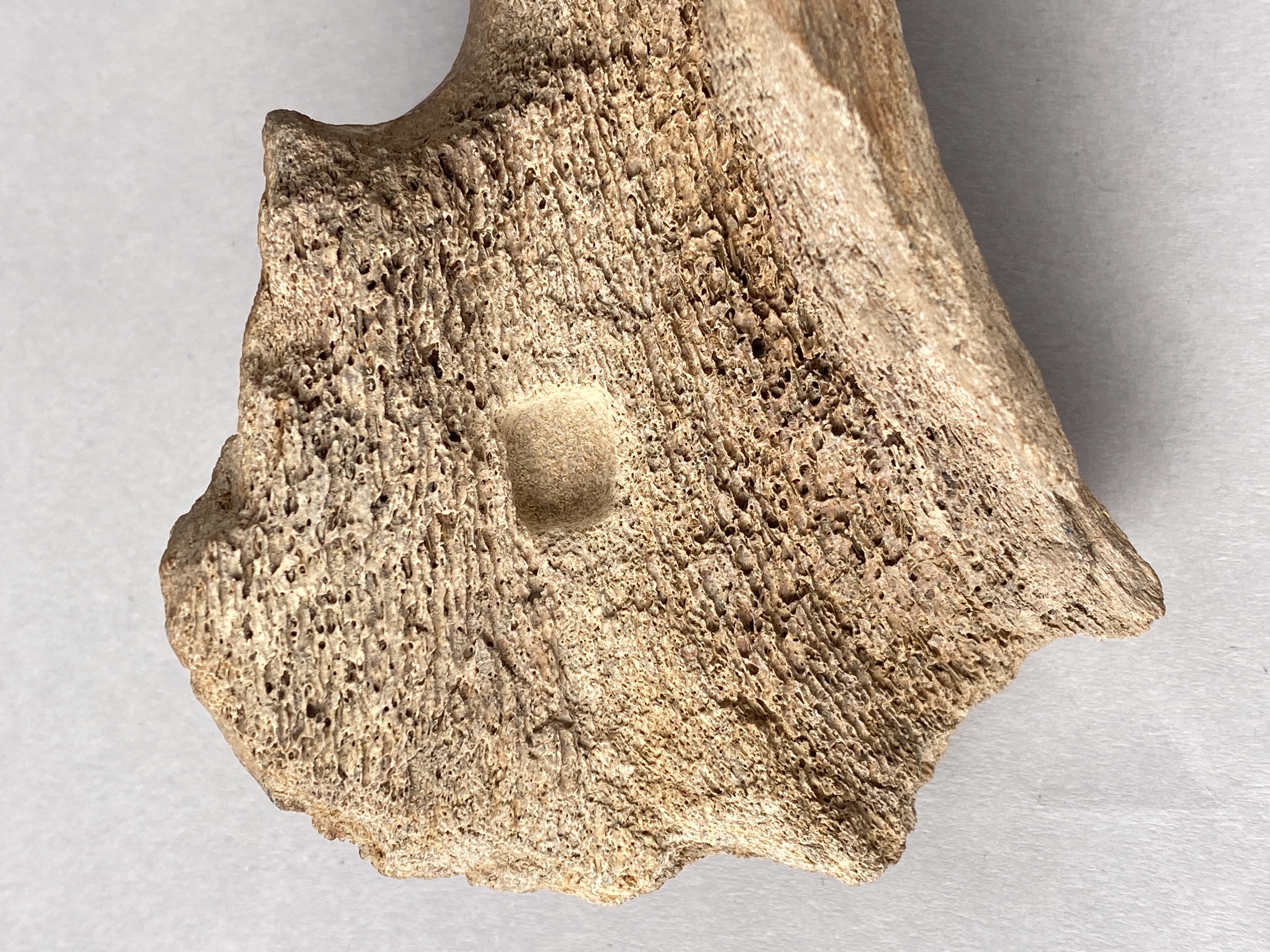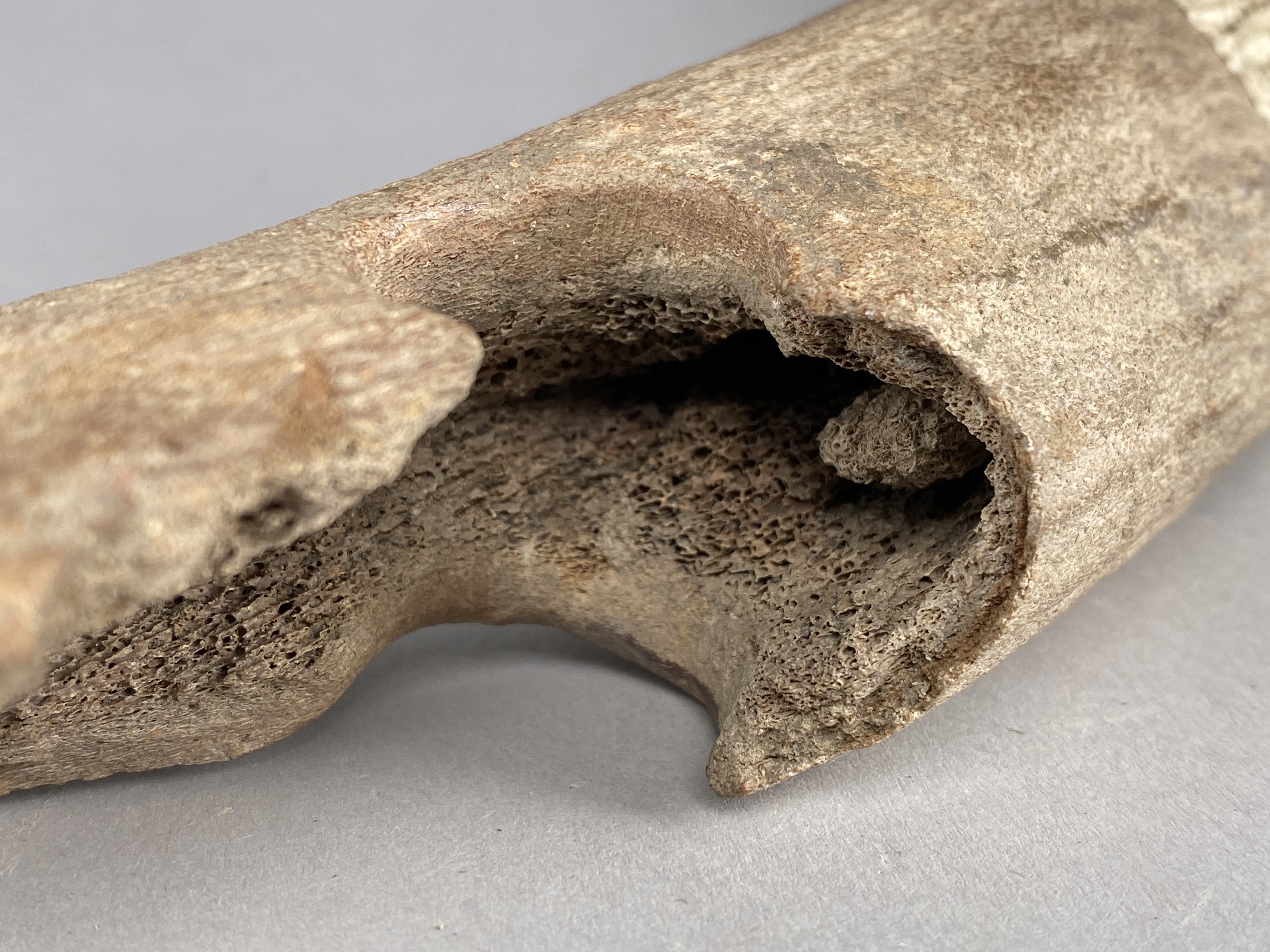 Yxa av horn med fint formad egg och skafthål. Skafthålet trasigt. Provtagen för C14-analys 2024. Efter provtagning har hålet satts igen av konservator.