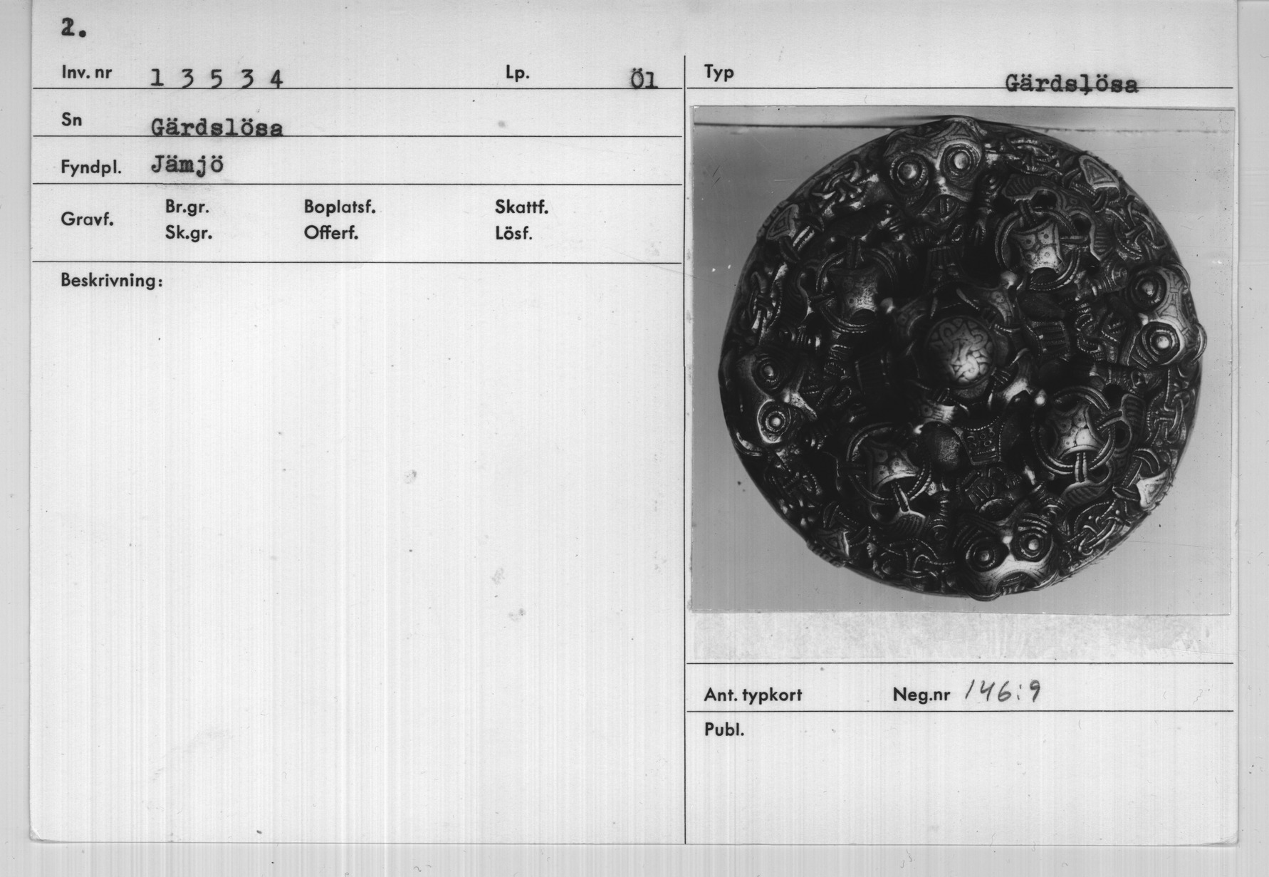 | Föremålsnummer |