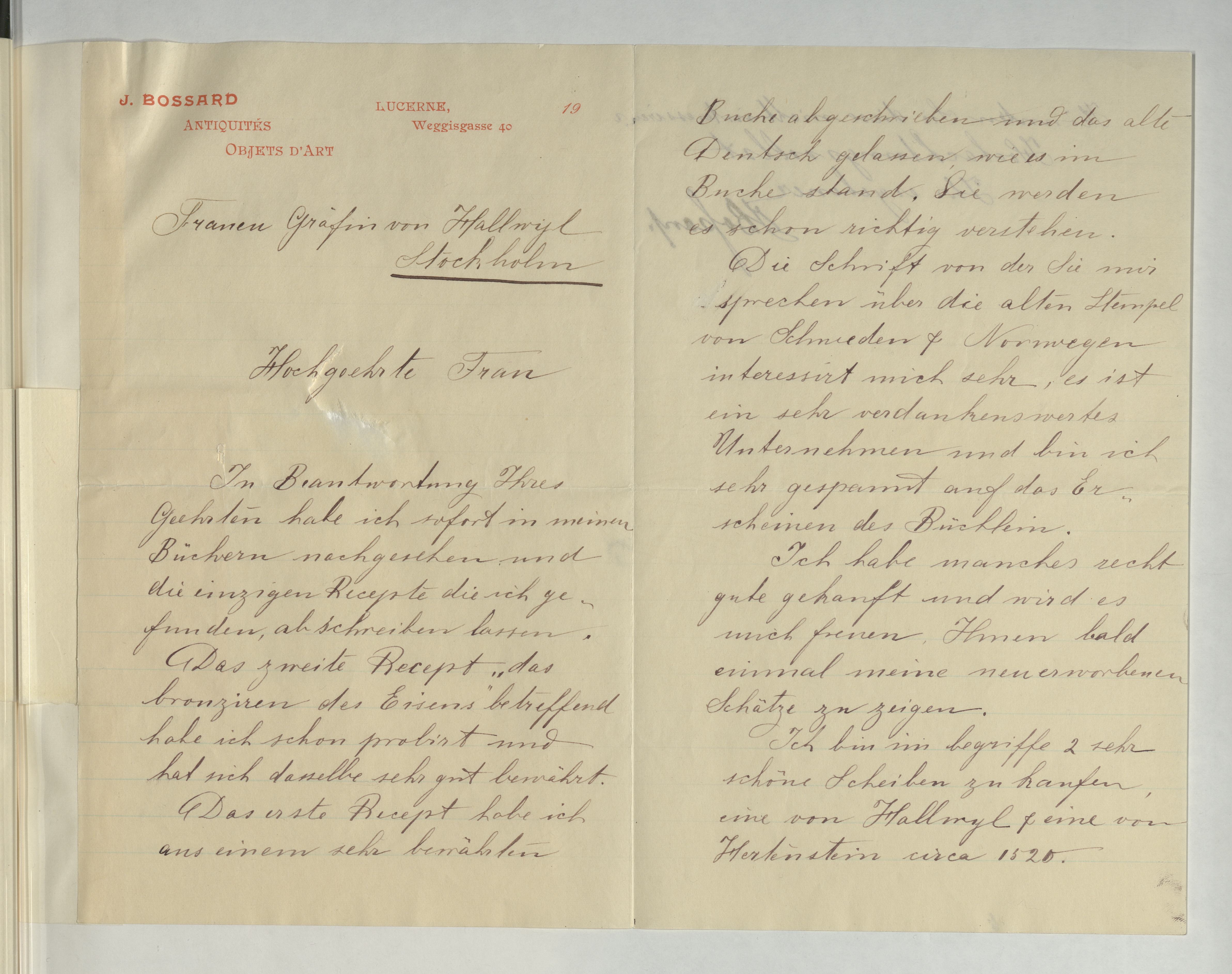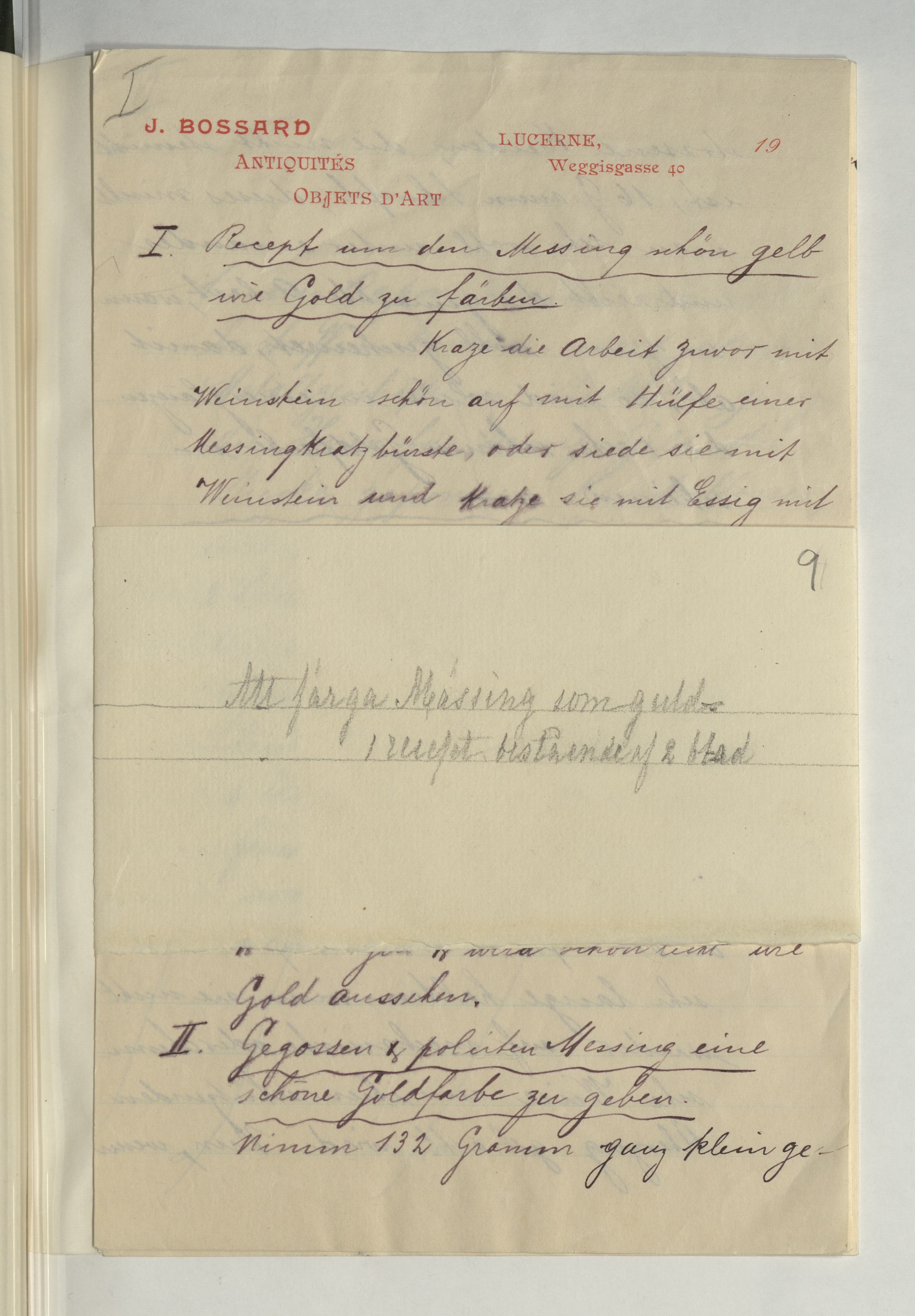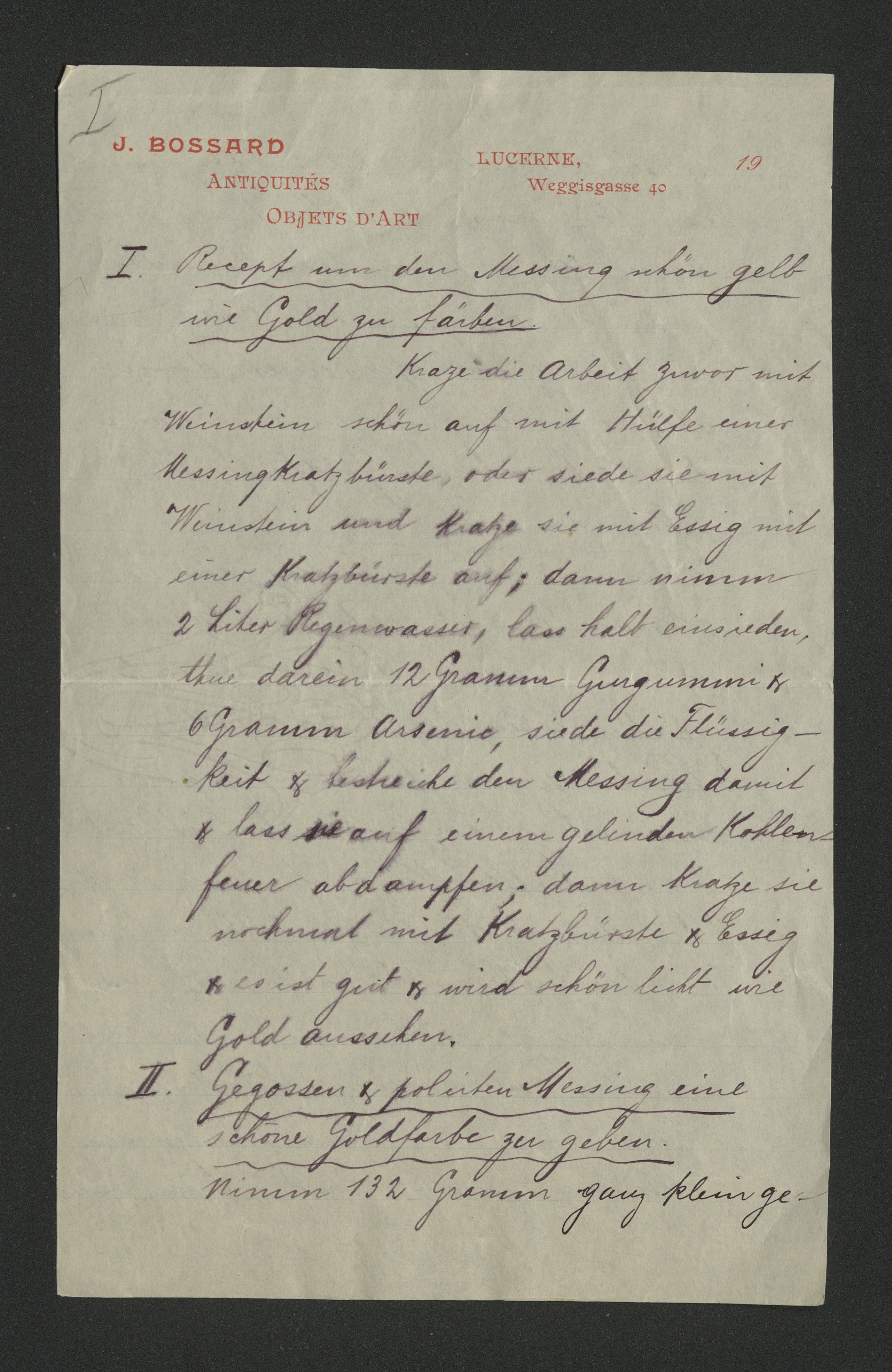 Ur katalogverket: "Att färga messing som guld». Bref från J. Bossard."