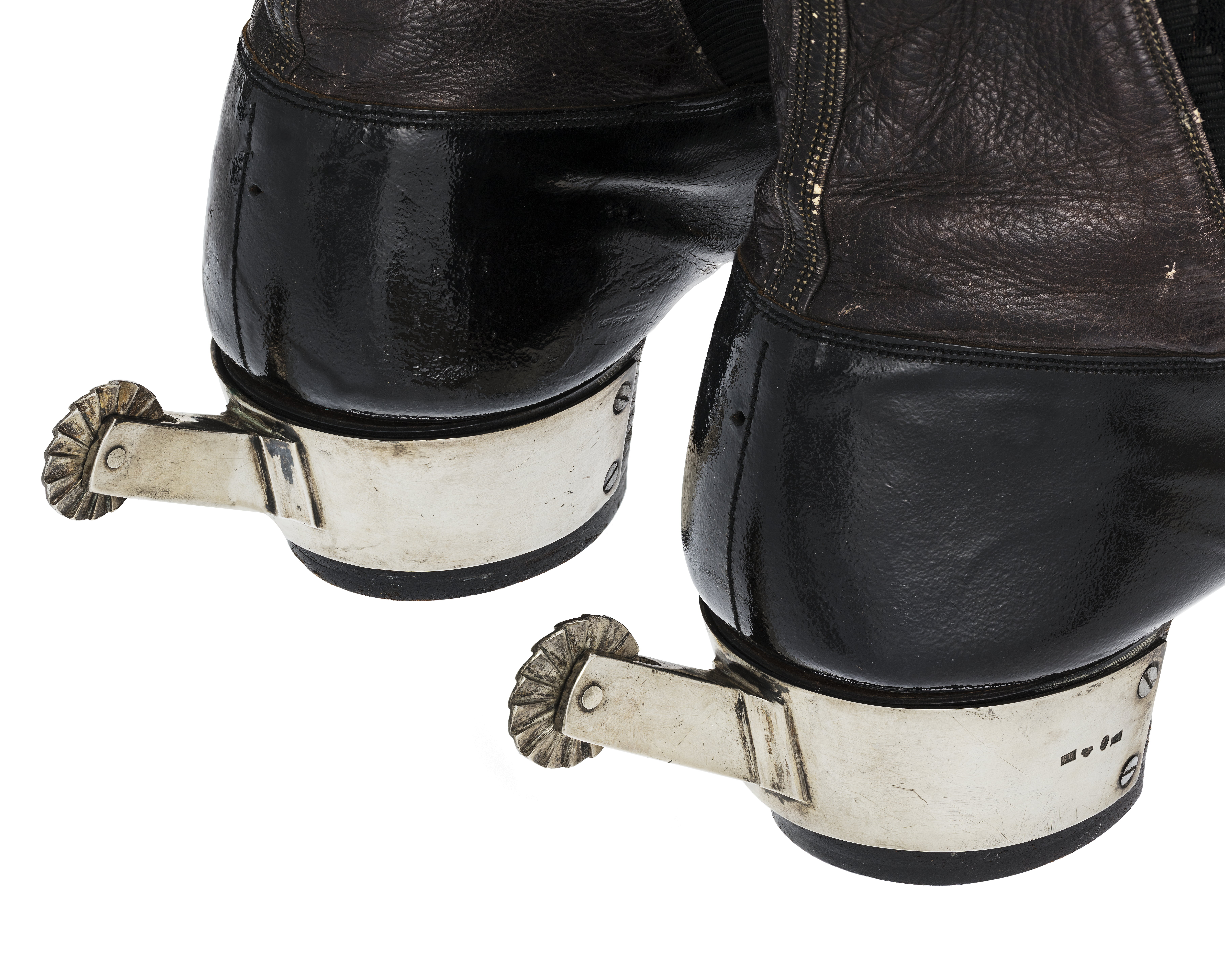 Sporre av silver med breda U-formade skänklar, i vars ändar två skruvar fäster sporren i stövelklacken. Hals 43 mm lång med rektangulärt tvärsnitt snett uppåtriktad. Finräfflad klinga. På ena skänkelns utsida stämplar: "CH, tre kronor, St Erik i profil,L 5". Har tillhört Karl XV, sammanförd med uniformen, som användes vid kröningen 1860-05-03.
