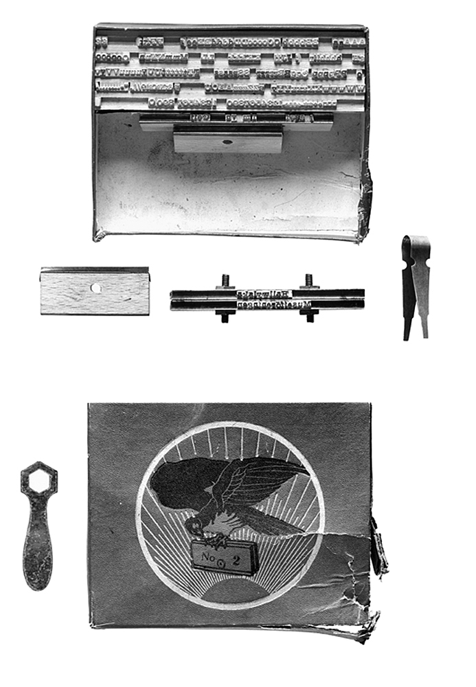 - TRYCKSTÄMPLAR med lösa typer, i ask.