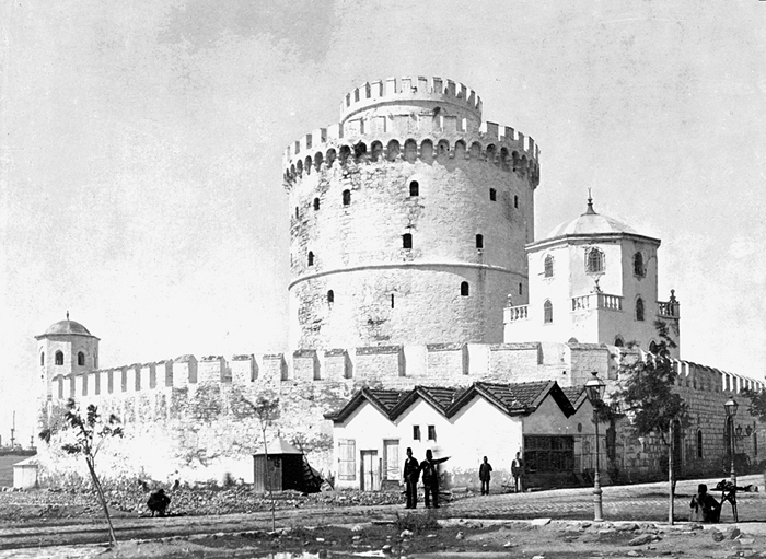 Citadellet i Thessaloniki, Grekland. Text på originalet: Salonique. La tour de la Citadelle. Foto från resa genom Grekland, Makedonien och Serbien, 15 mars-6 juni 1896. Fotografierna LXVI:K.18.-147. är köpta av Wilhelmina von Hallwyl, f. Kempe på Korfu samt i Patras, Nafplion, Aten, Thessaloniki och Belgrad. Med på resan var maken Walther von Hallwyl och fröken Ida Uhse. Uppgifterna kommer från Ida Uhses reseanteckningar.