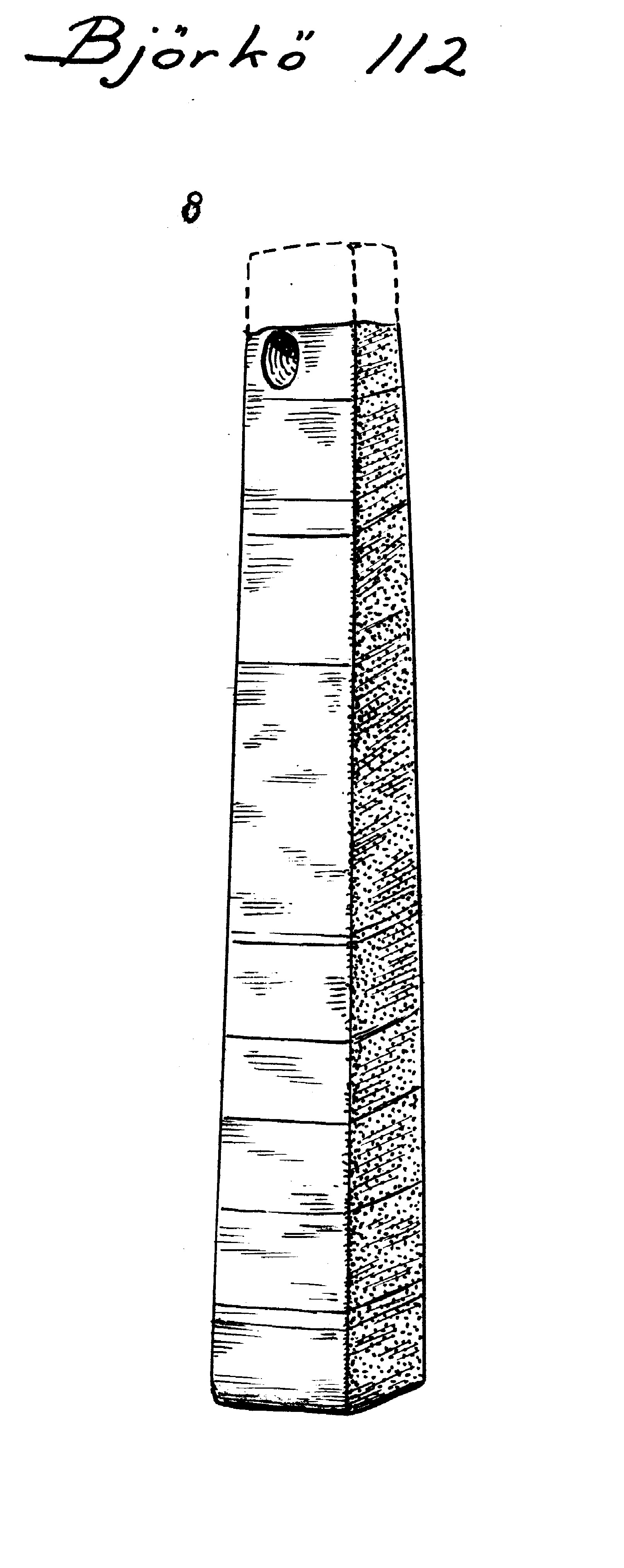 Bryne med hål i en ända, kvadratiskt i tvärsnitt.