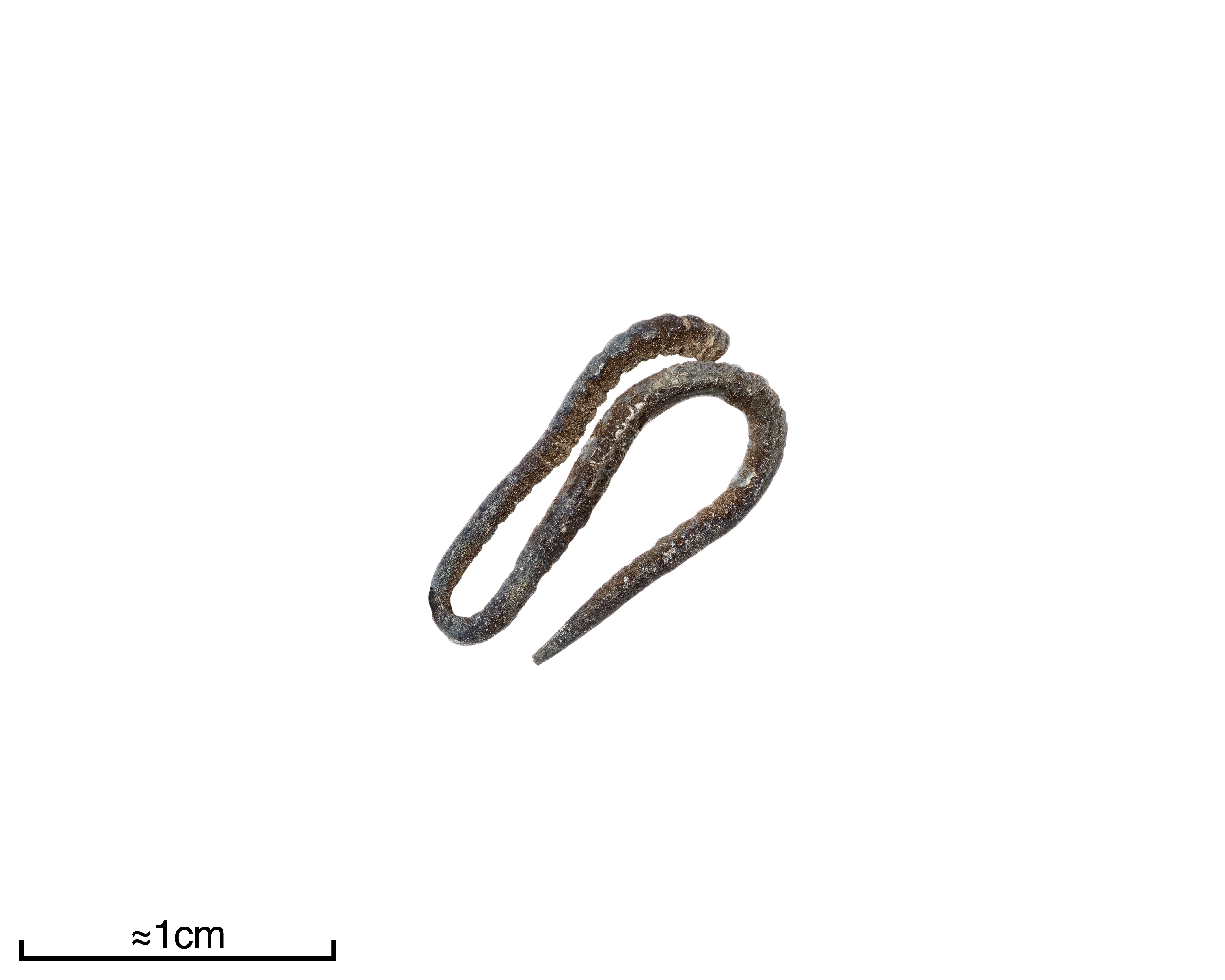 S-böjt, räfflat, spetsat i ena ändan fragment.