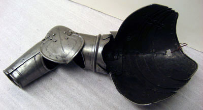 Axelstycke och armskena, höger, till kyrassiärrustning. Använd av Karl XI som barn.