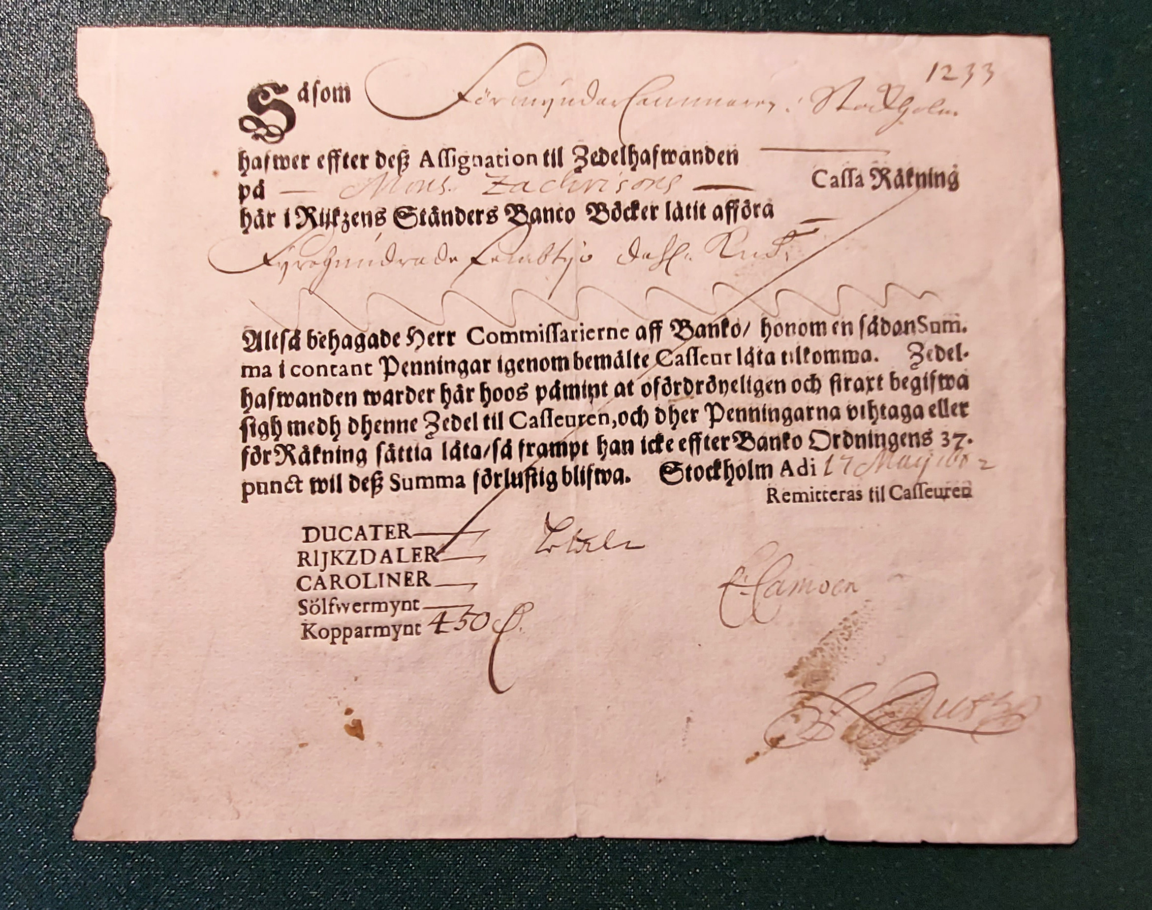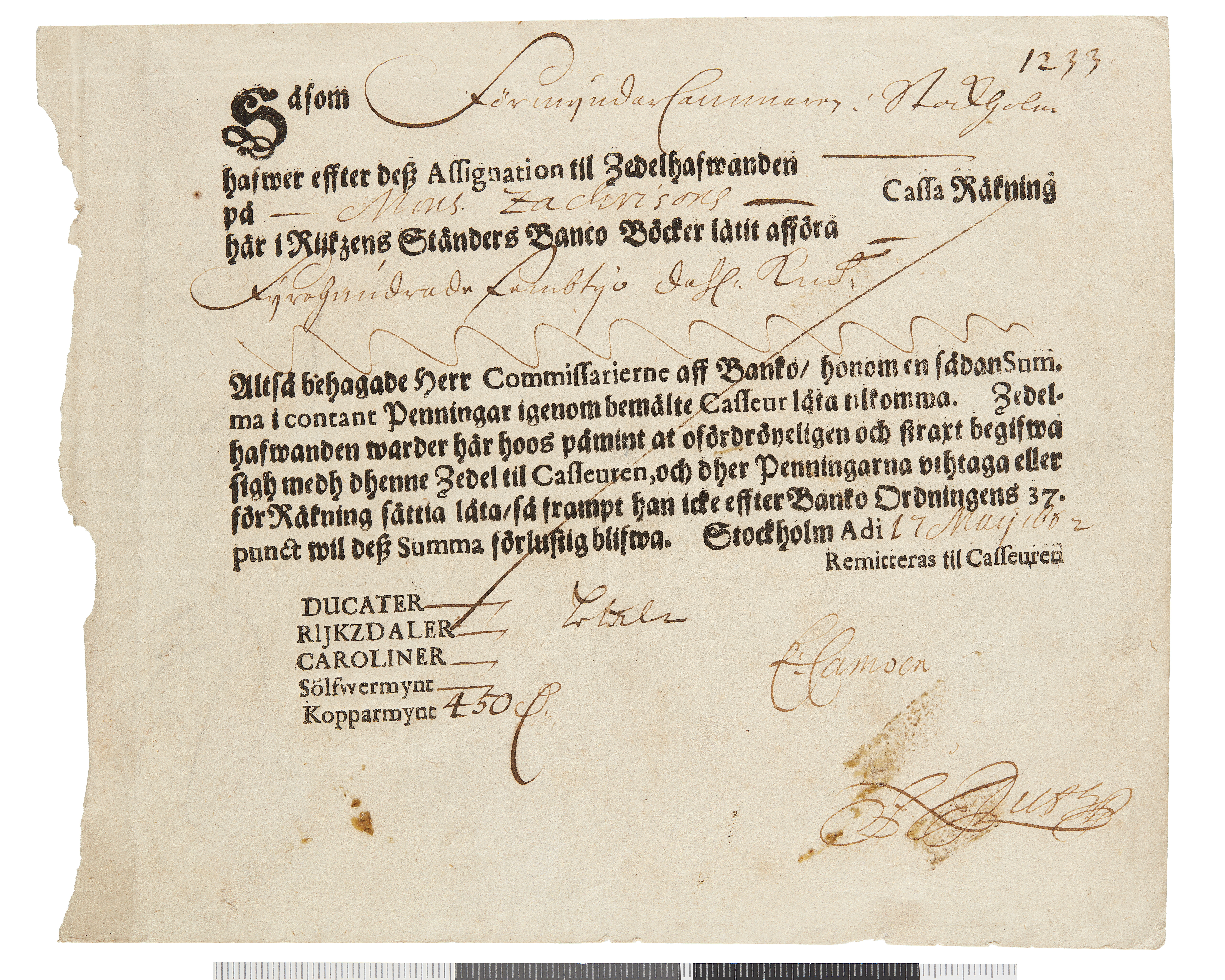 Upphov: Riksens Ständers Banco. Media: Bonnevier, Helena. Ekonomiska museet - Kungliga myntkabinettet/SHM, (PDM) Upphovsrätten till detta verk har gått ut och är därmed fritt att använda på alla sätt. Ange gärna upphovsperson om denne är känd.