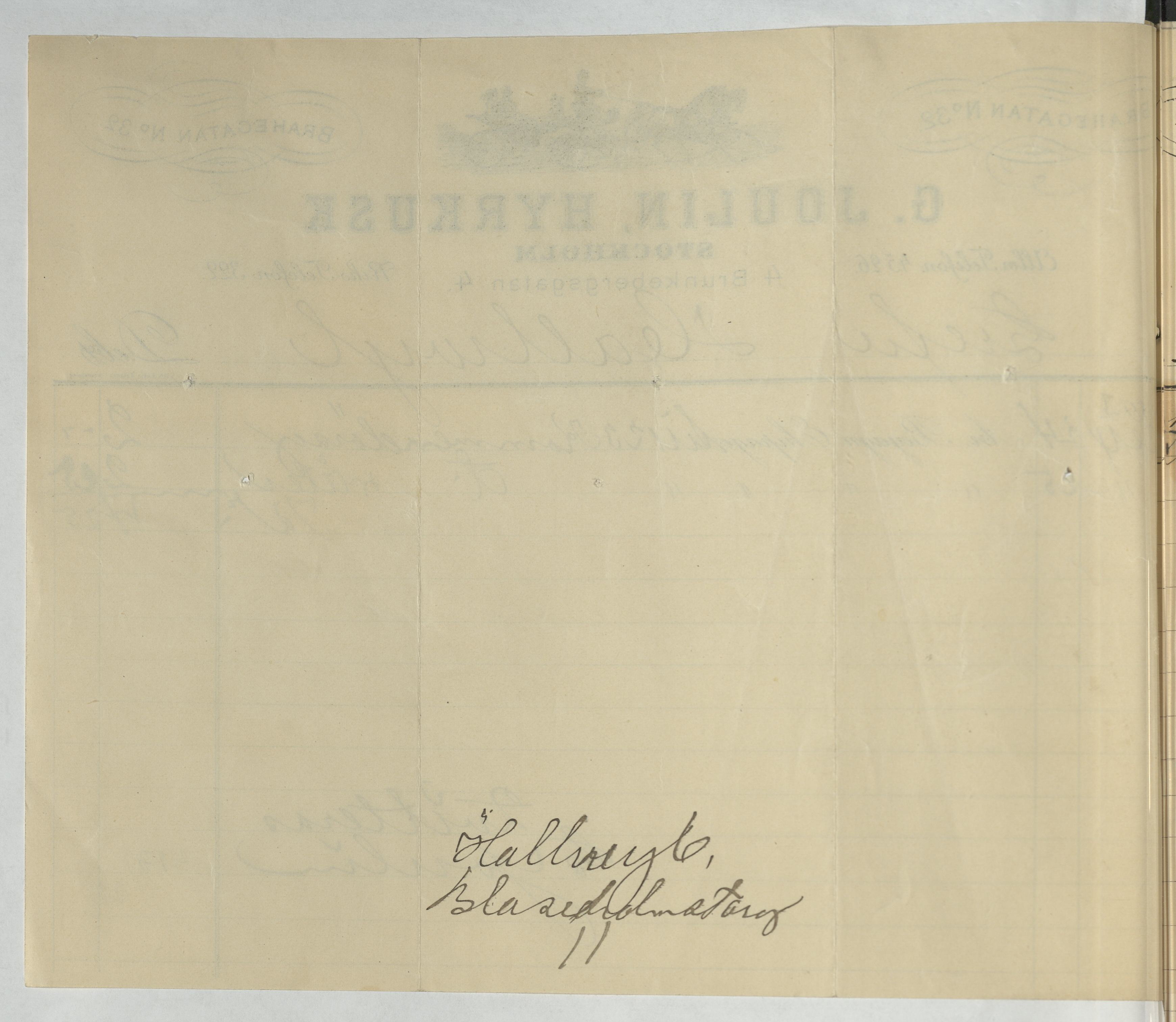 Kvitto från G. Joulin, Hyrkusk