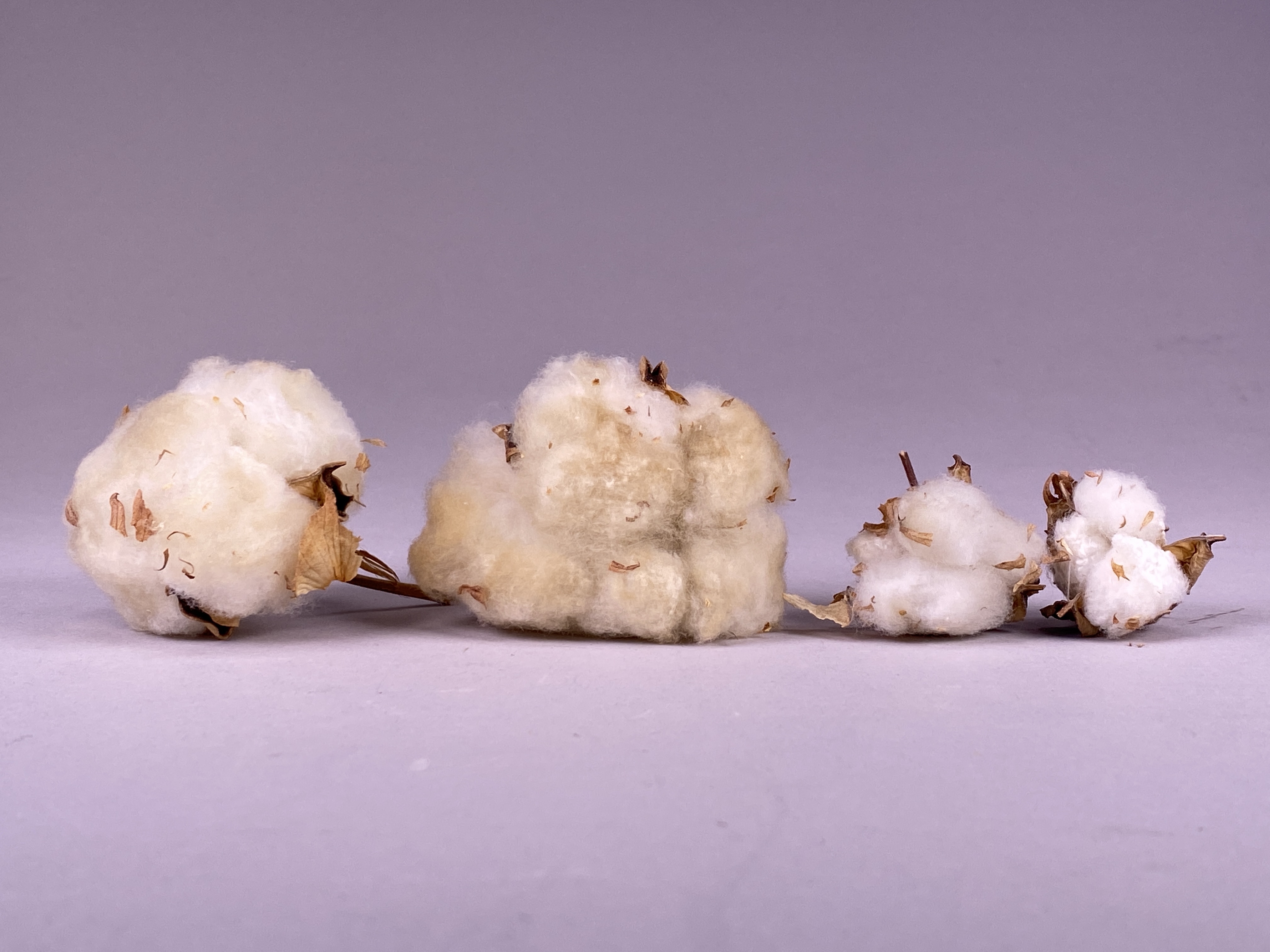 Bomull i olika storlekar.